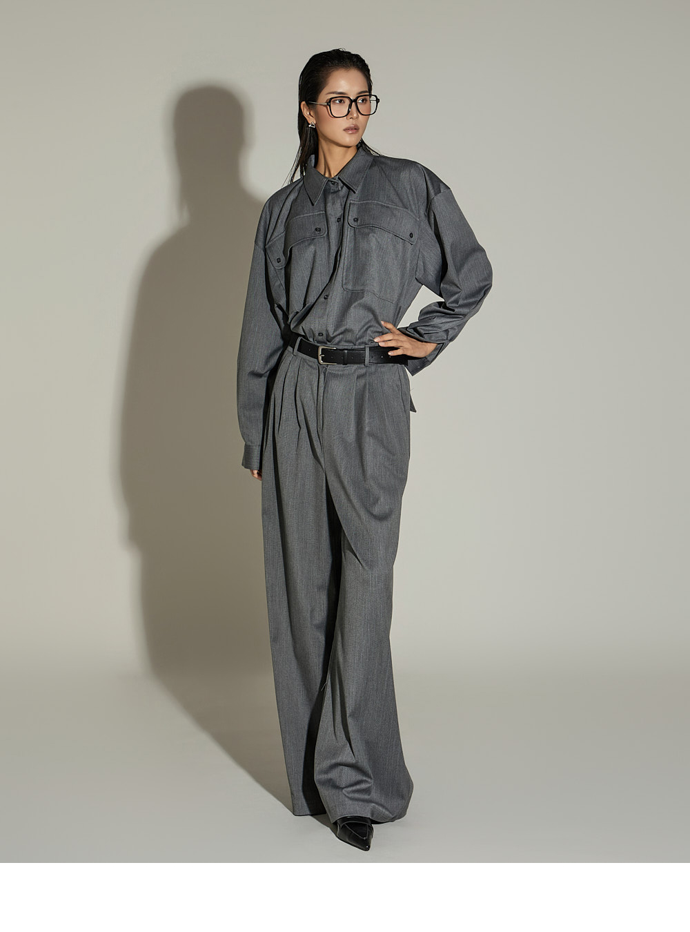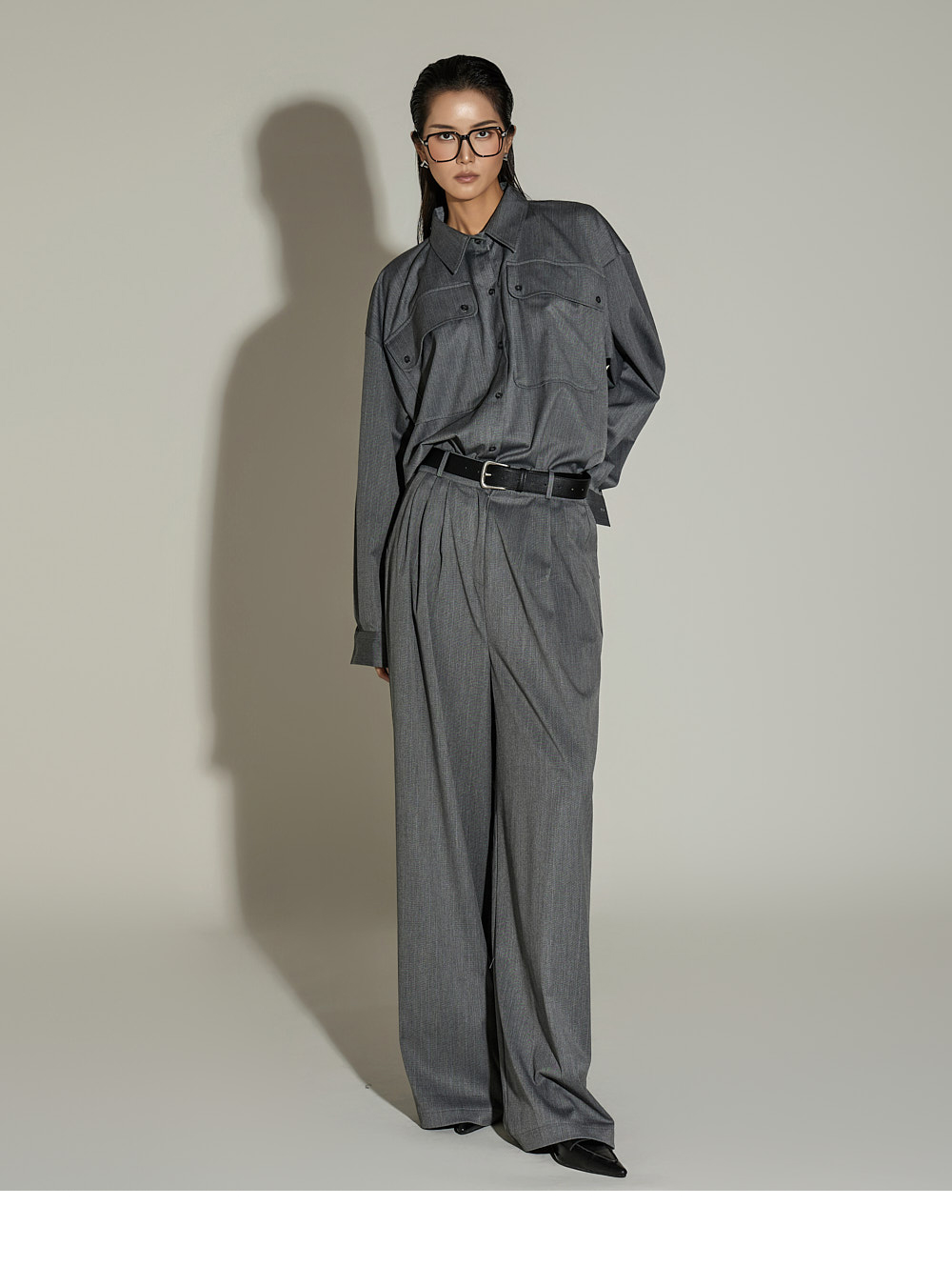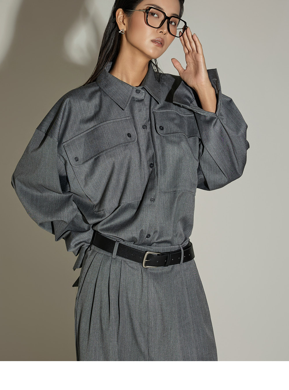 模特身高 173CM,穿着 ONE SIZE,GRAY 颜色。