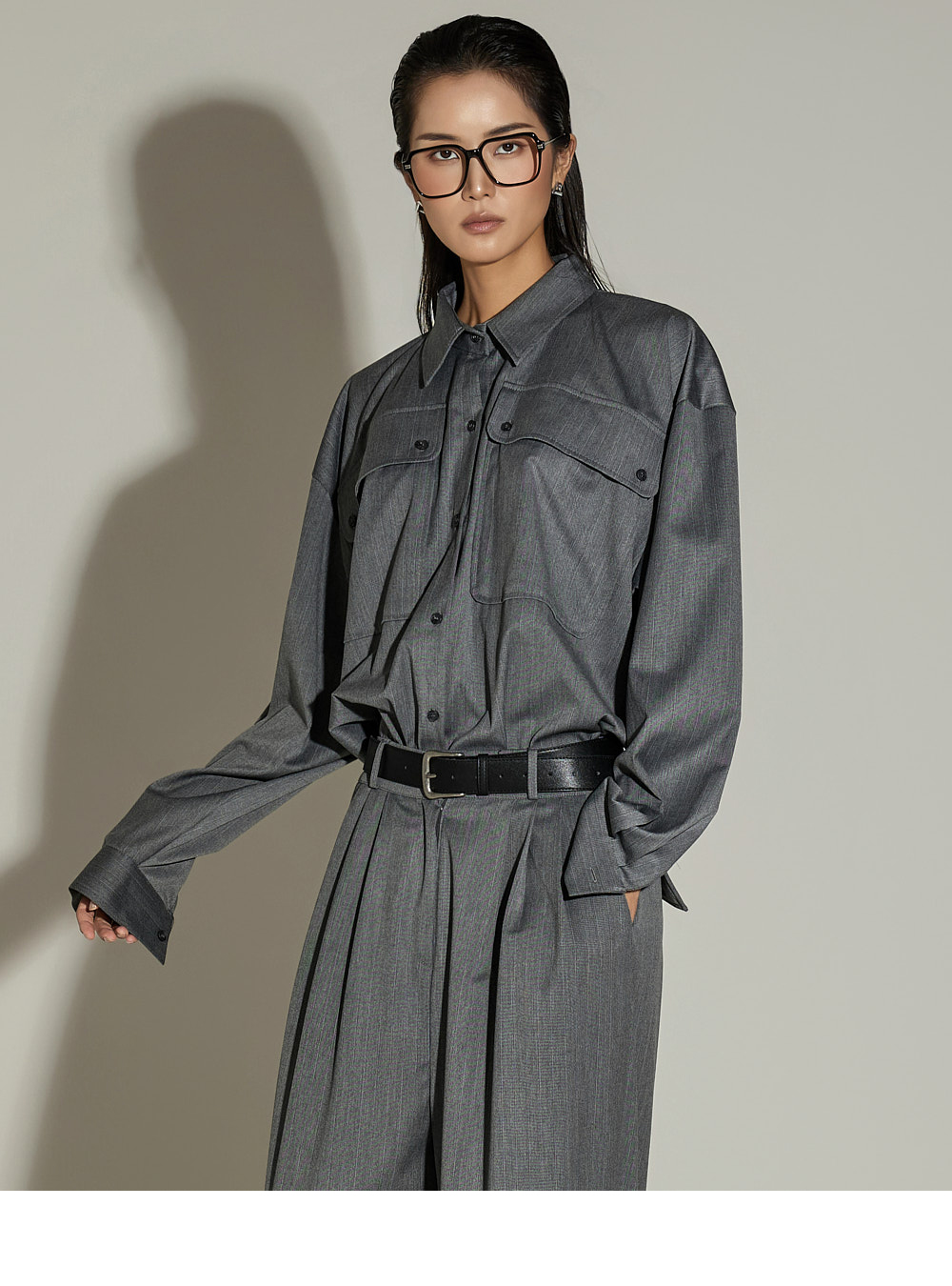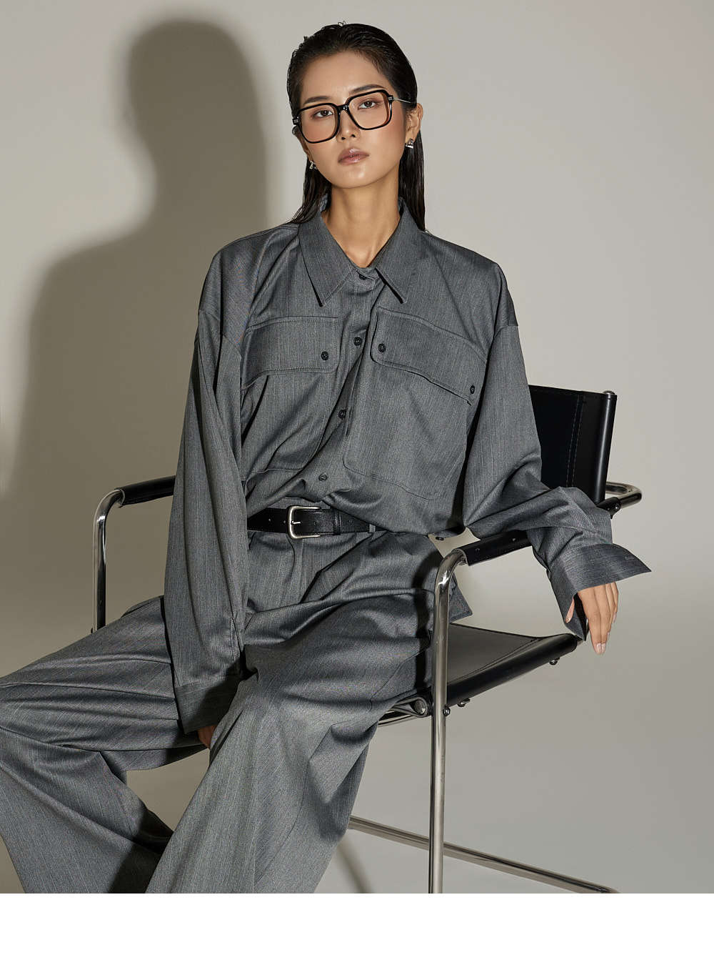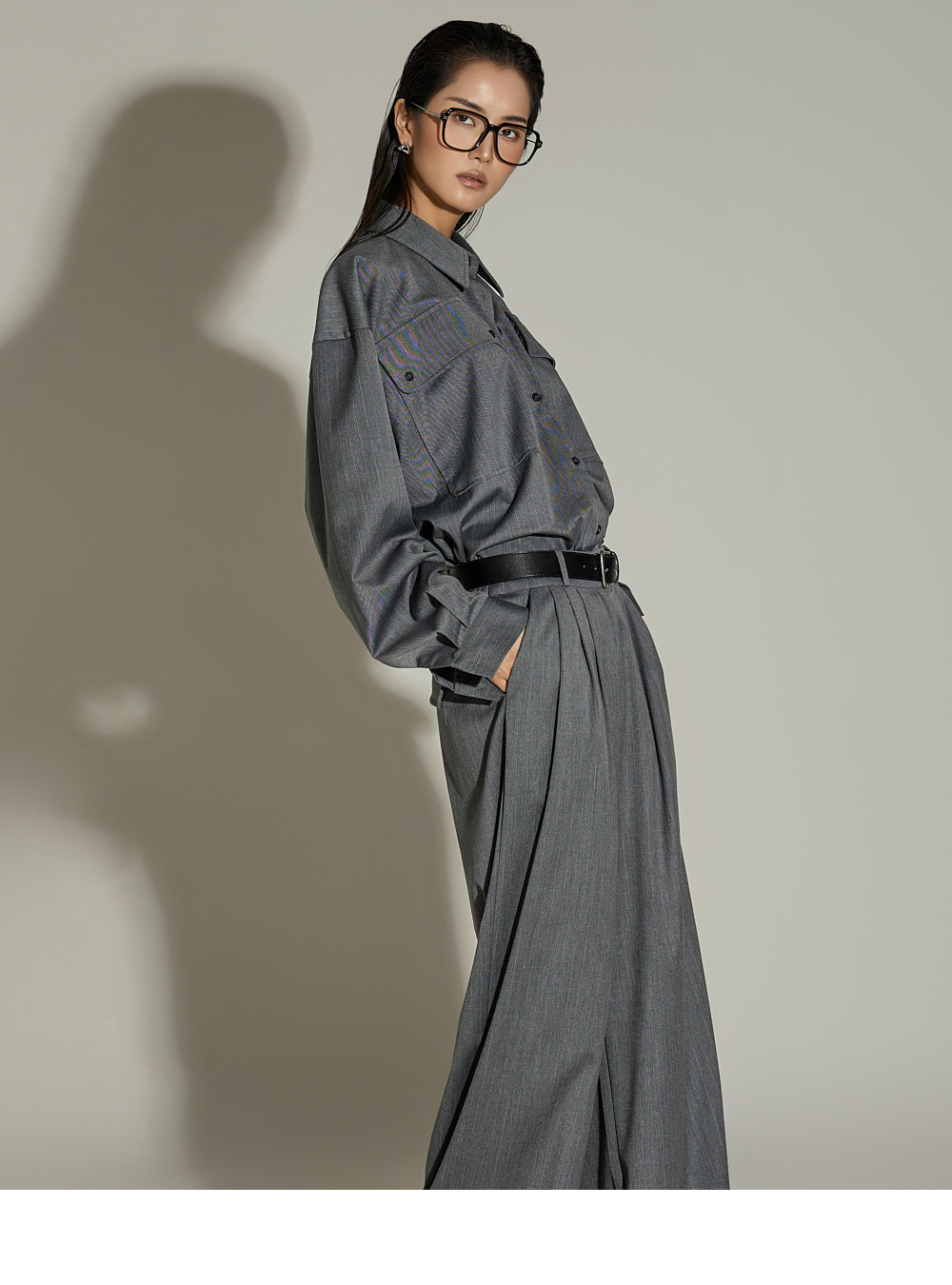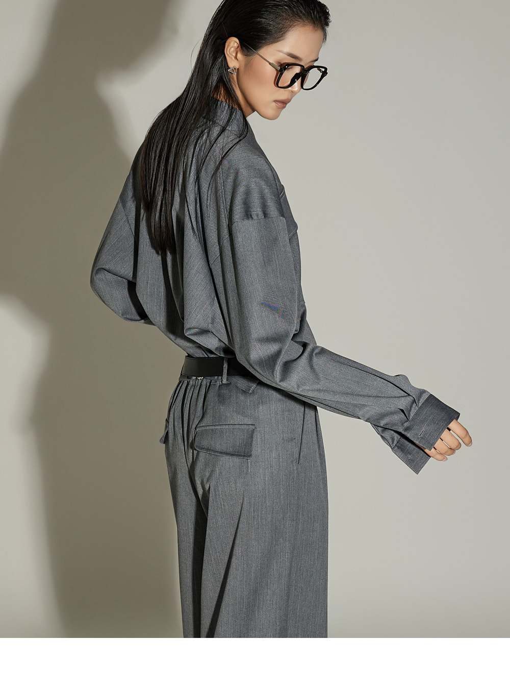 模特身高 173CM,穿着 ONE SIZE,GRAY 颜色。
