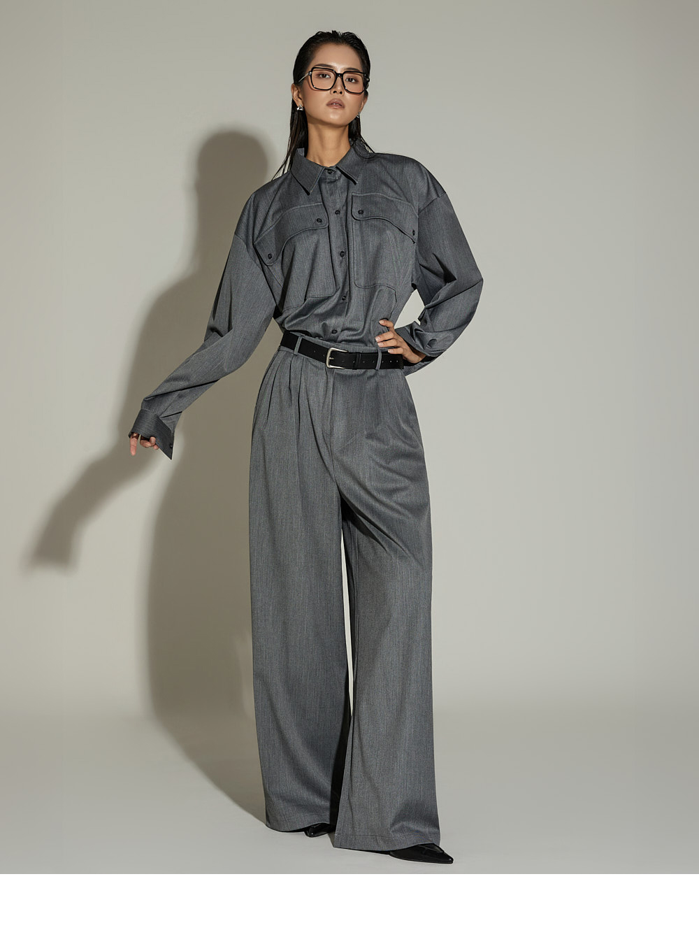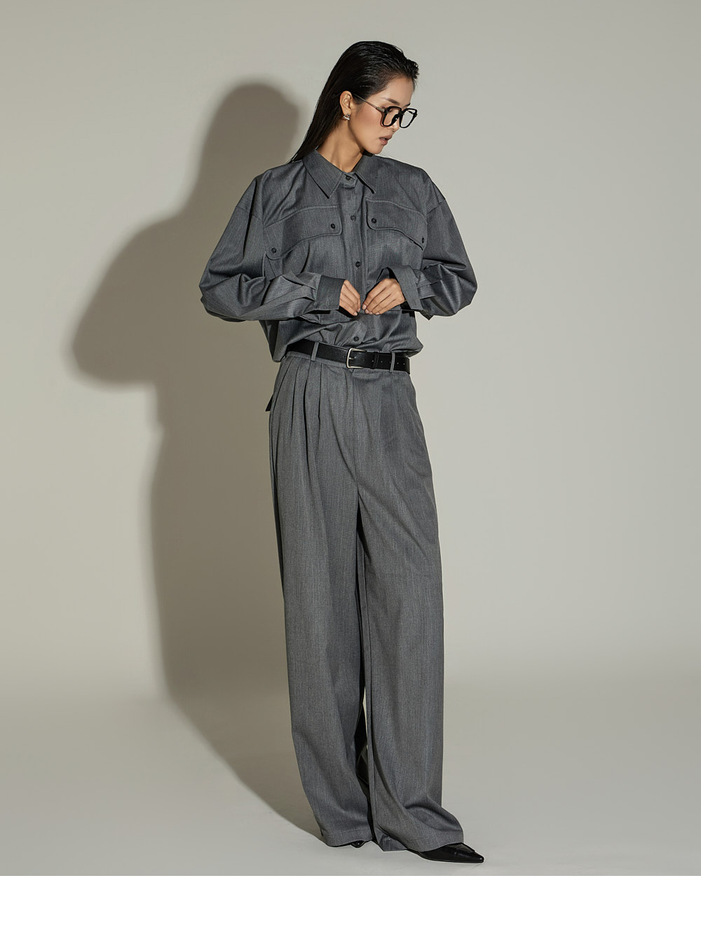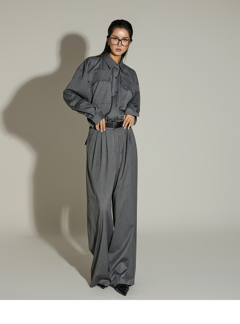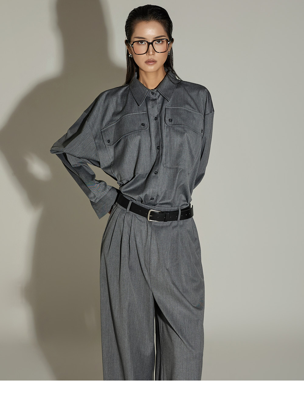 模特身高 173CM,穿着 ONE SIZE,GRAY 颜色。