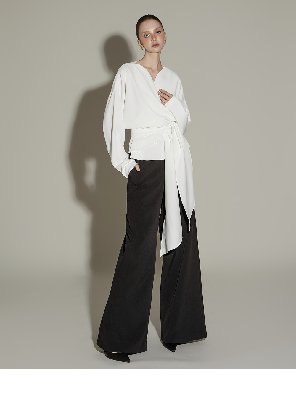 休闲风格的裹身衬衫。 采用100%聚酯纤维制作,轻盈顺滑,穿着舒适。 宽松廓形搭配腰部裹身设计,自然流畅地展现衣型,前襟绑带可根据体型调节贴合度。 既可单穿,也可作为内搭轻松叠穿,根据搭配风格,可展现女性化或自然休闲氛围。 模特身高174CM,穿ONE码,白色款。
