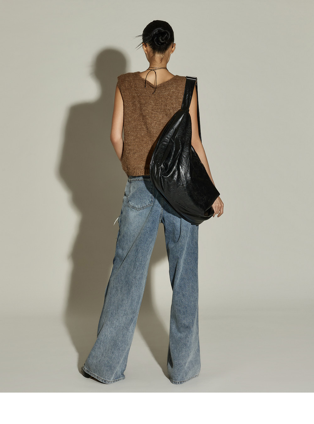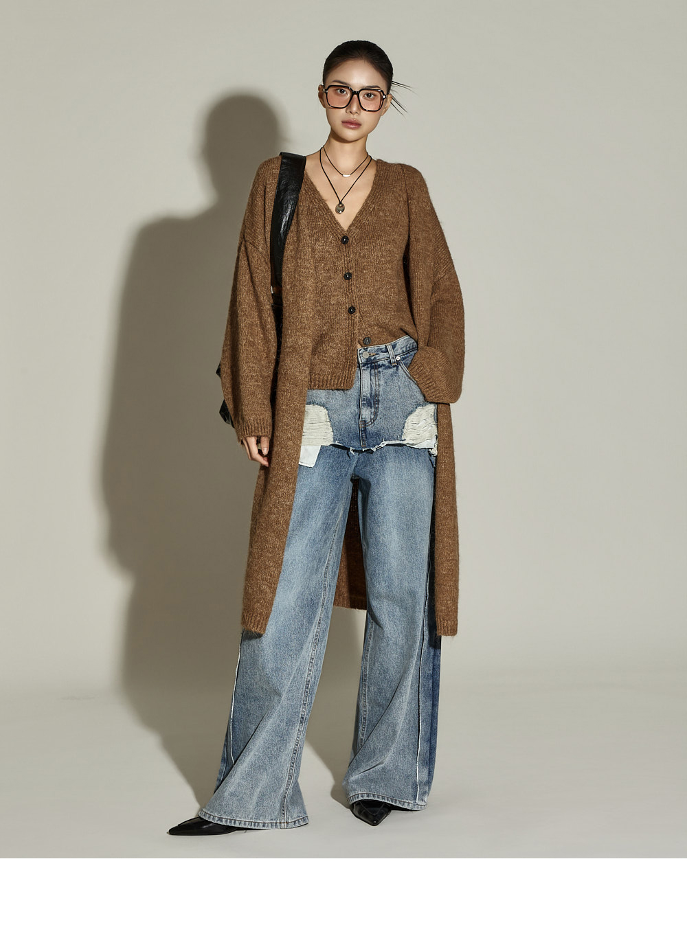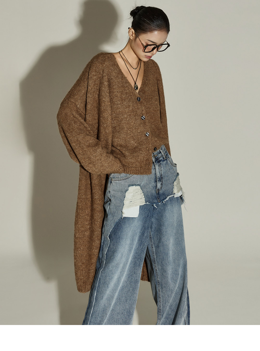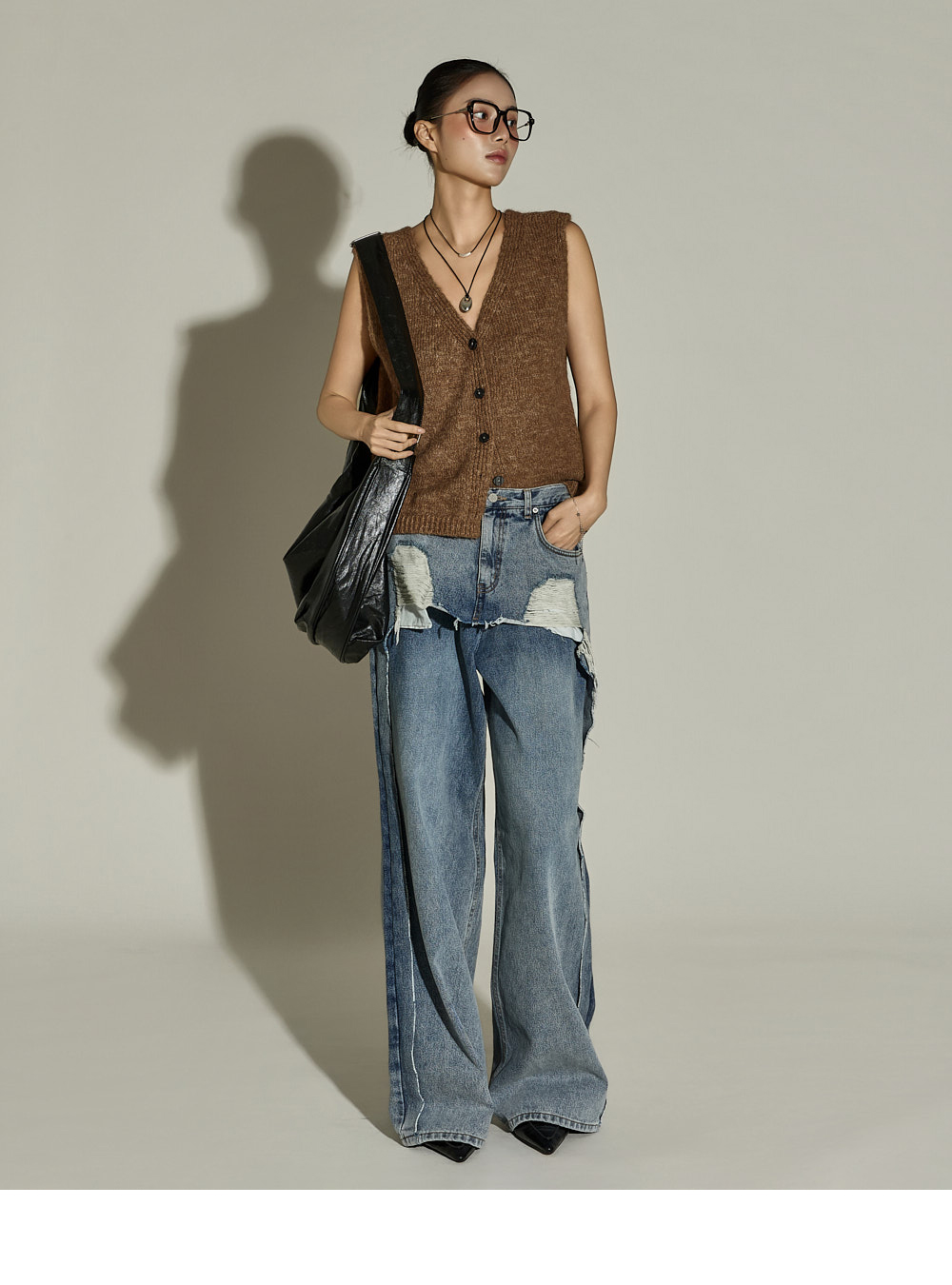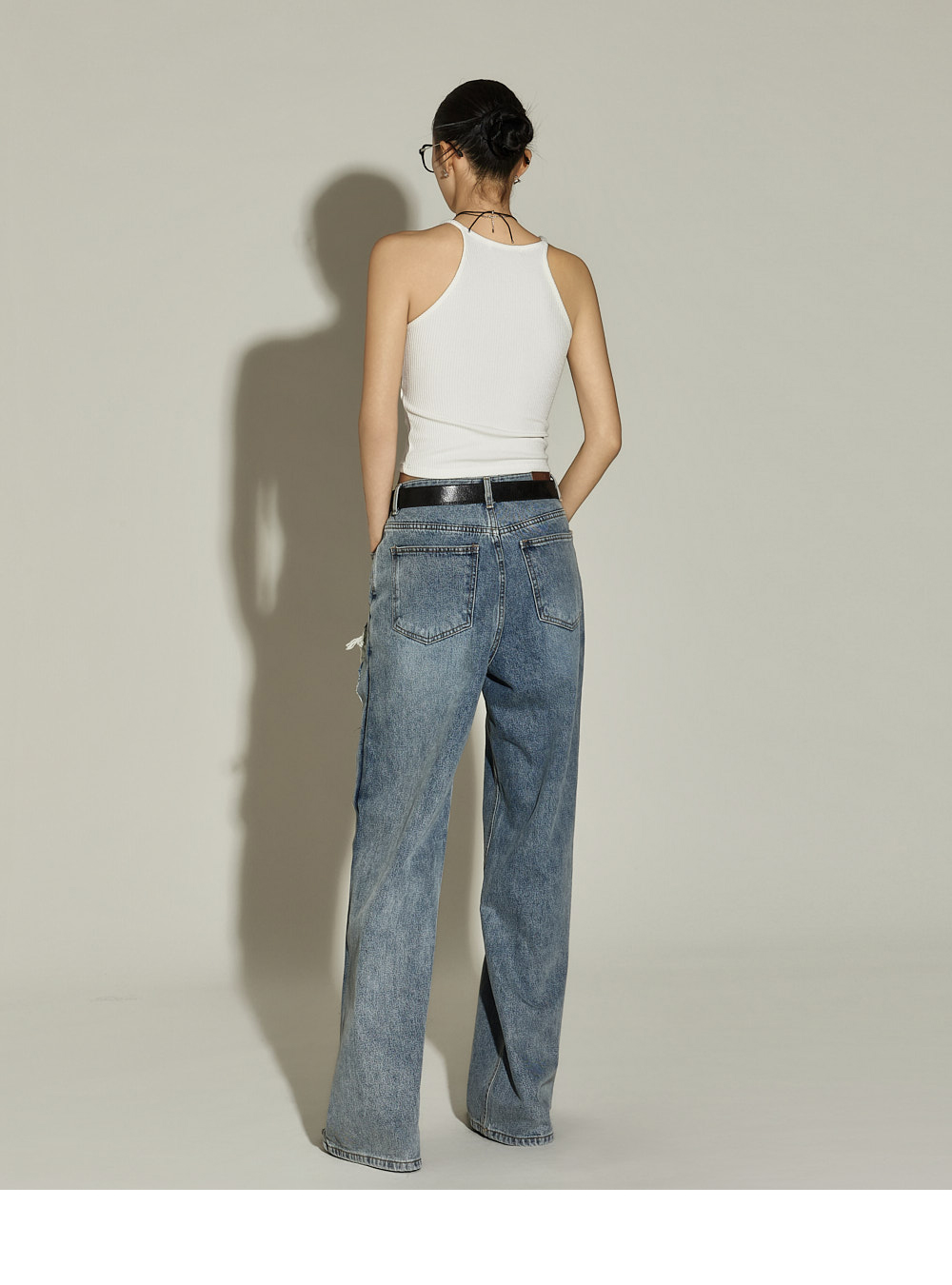 独特风格的牛仔裤。 采用坚挺的棉质面料制成,提供稳固的穿着感,宽松版型与长裤设计营造时尚轮廓。 低腰设计增添个性氛围,不对称细节与自然裁剪点缀出独特感,加上破洞牛仔特有的复古魅力,更能展现独特风格。 是打造时尚个性造型的理想单品,即使搭配简约上衣,也能成为亮眼的造型重点。 171CM 模特穿 S 码,BLUE 颜色。