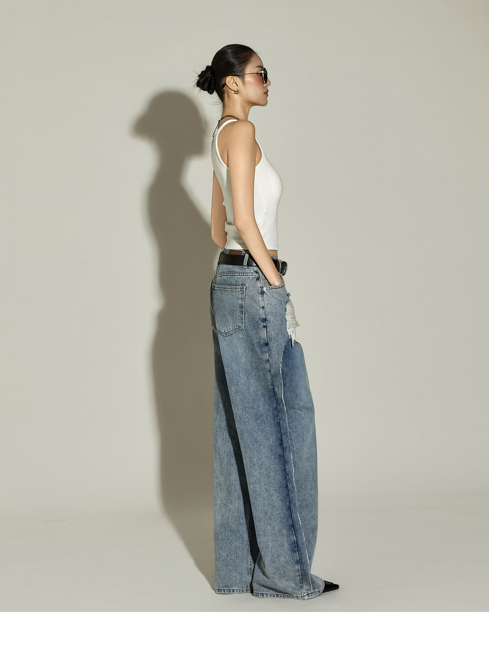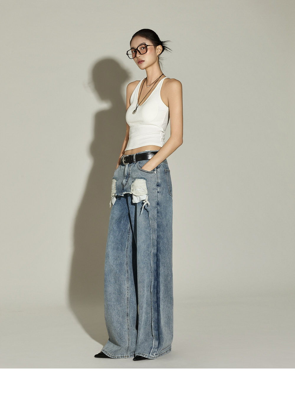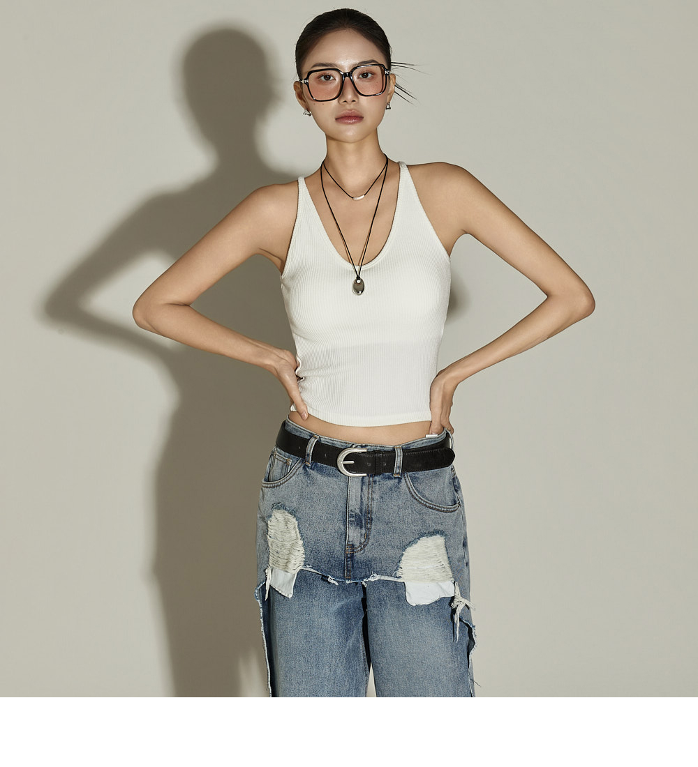 日常风格的无袖上衣。