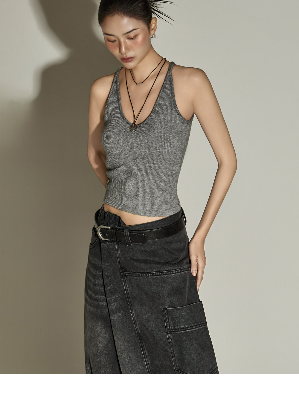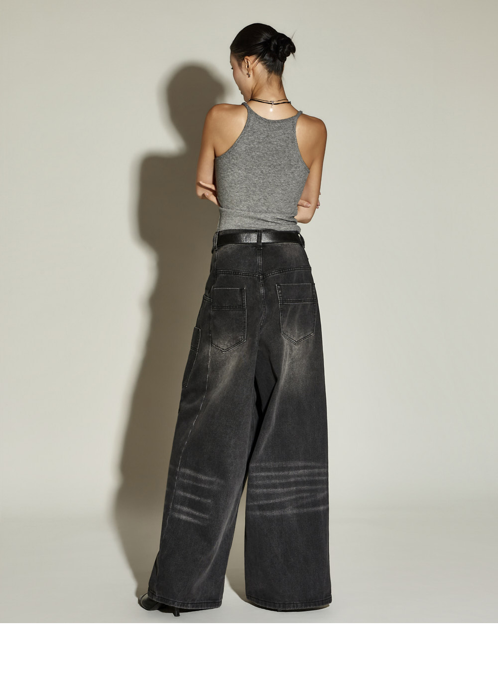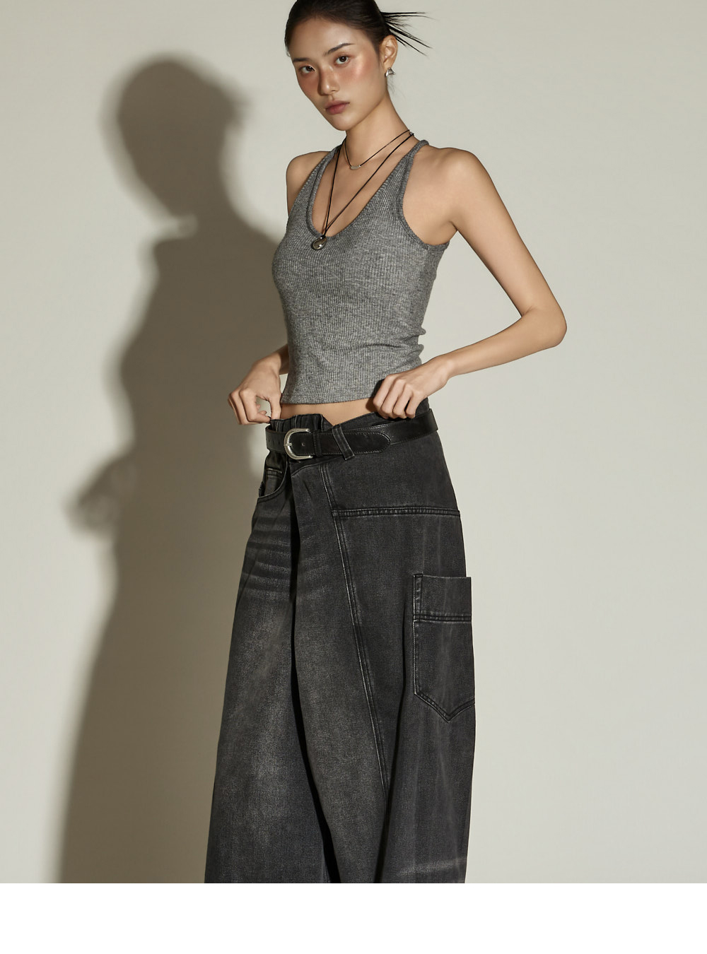 休闲风格的裹身宽腿牛仔裤。采用棉、聚酯纤维与黏纤混纺材质制作,兼具坚挺与柔软的穿着感。宽松裤型有效修饰腿部线条;半侧松紧腰带与腰部纽扣可调节设计,打造符合体型的稳妥贴合感。前排纽扣开合方便穿脱;配备前口袋、工装口袋及后口袋,提升实用性。独特裹身设计为基础造型增添亮点,是一条高实用性的日常牛仔裤。171CM 模特穿着 ONE 尺码,黑色。