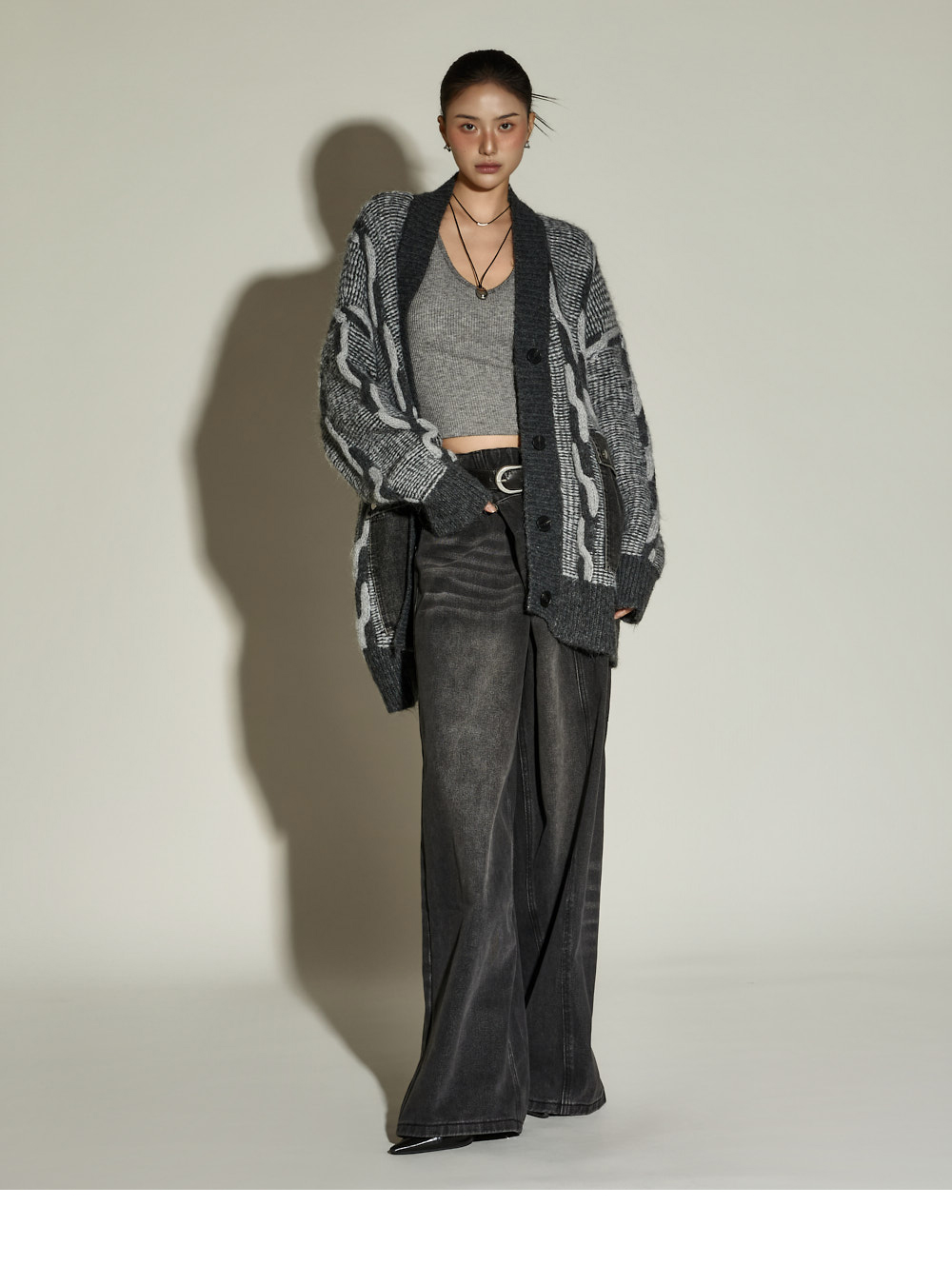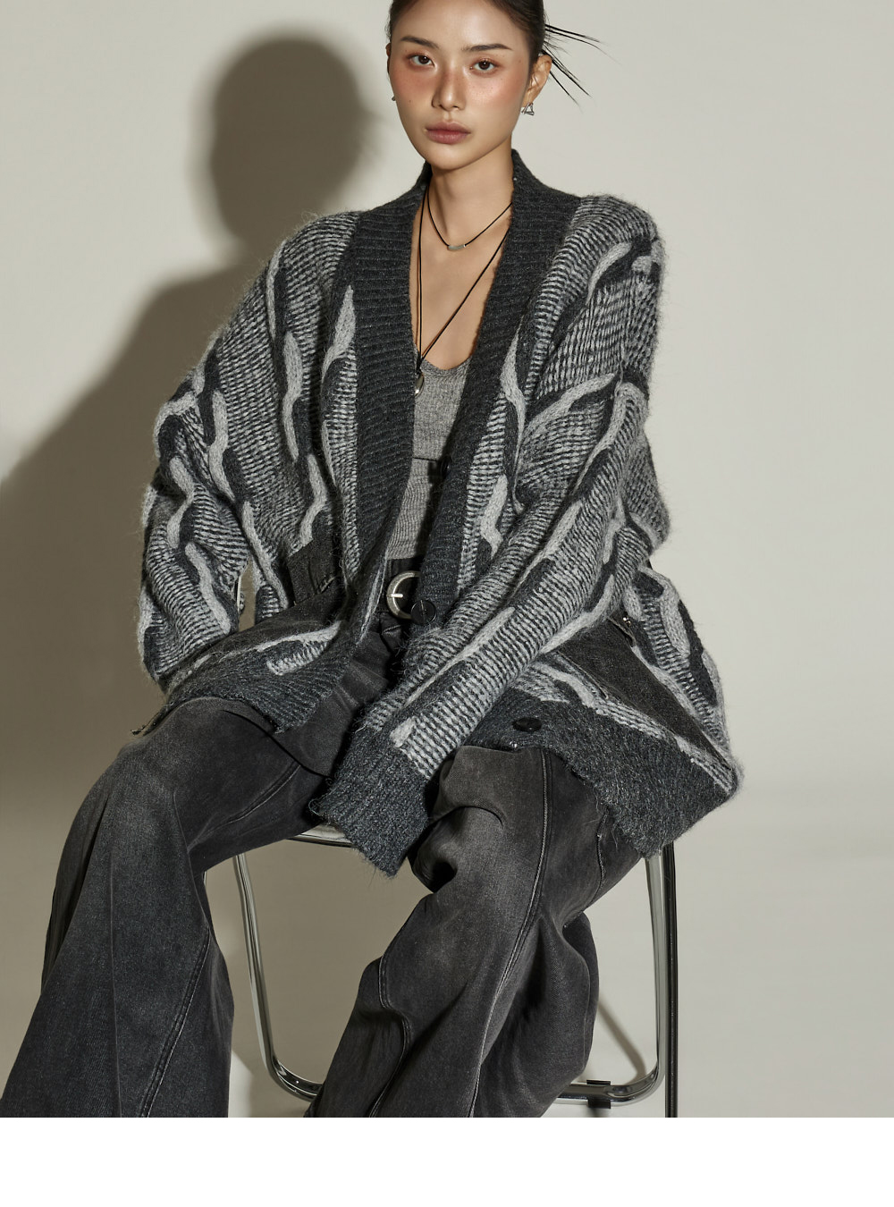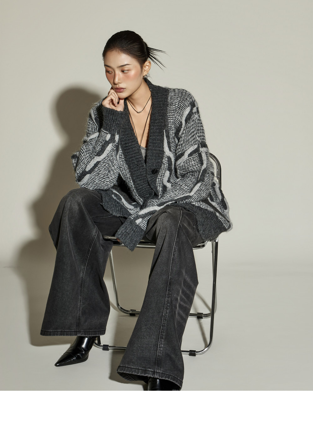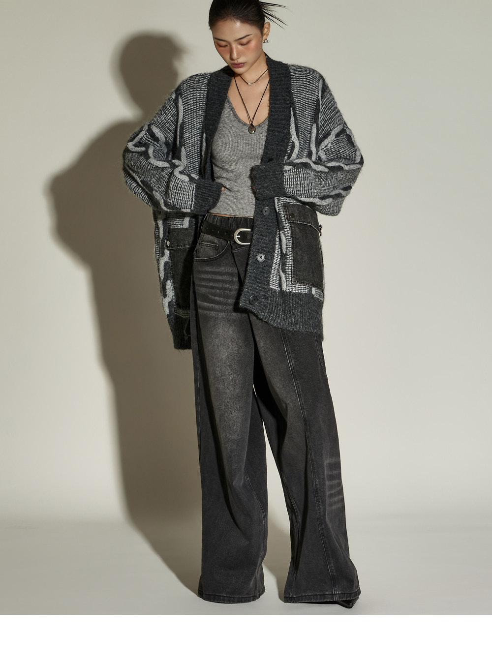 独特风格针织开衫。 采用腈纶、尼龙与安哥拉混纺材质制作, 柔软温暖,穿着舒适, ONE尺码设计,宽松随性。 宽松版型搭配麻花针织拼接,增添设计感, 前侧两大牛仔口袋兼具独特与实用魅力。 前襟纽扣设计,穿脱方便, 弹性良好,活动自如。 秋季可单穿,也可作为内搭层叠穿着, 推荐作为打造秋季独特造型的开衫。 171CM 模特,ONE 尺码,GRAY MIX 色。
