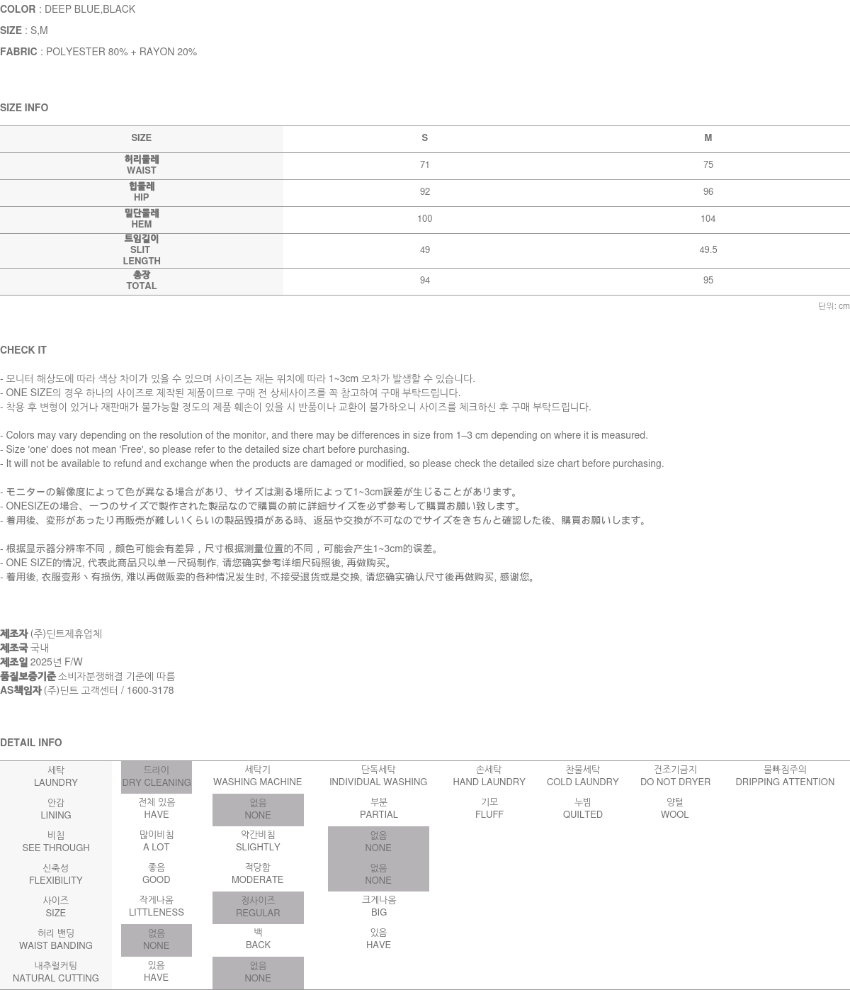 換貨 與 退貨 收到商品後, 7日內能在我的頁面申請交換或退貨, 申請後請將商品寄回DINT. 申請後, 請填寫包裹裡一同寄去的撤回申請書, 再將包裹包裝成一開始您收到時的狀態(包裝袋、衣架、贈品皆要一起寄送回來)發送至DINT即可. 因爲顧客變心所申請的換貨與退貨, 運費將由顧客負擔;誤送或是商品瑕疵的部分, 將由DINT負擔運費. 退貨住所爲:首爾市 衿川區 加山洞 459-8號 大韓通運 7樓 DINT股份有限公司 品質保證標準說明:符合電子商務等有關消費者保護法律規定的消費者可申請交換或是退貨.