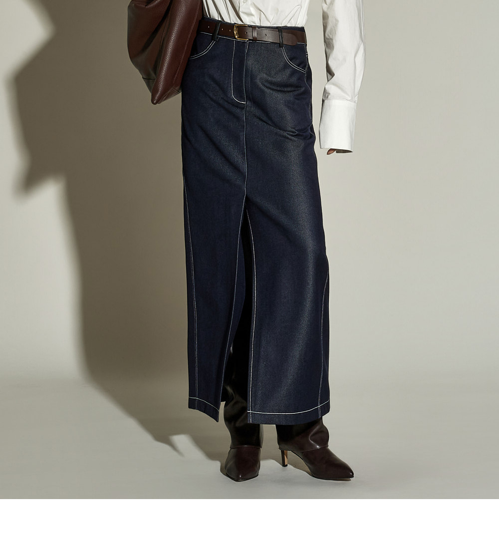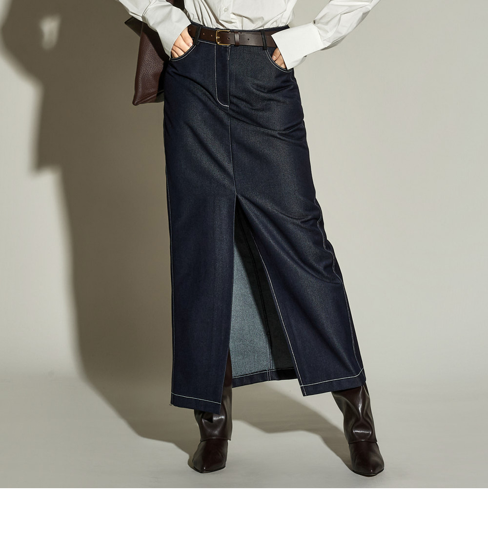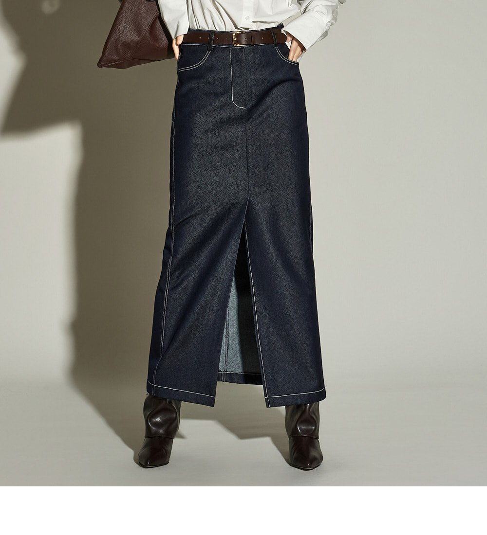 一款现代感的缝线 H 线裙。 采用聚酯纤维与人造丝混纺材质,穿着顺滑,干净利落的轮廓与适中的厚度,非常适合春秋季节穿搭。 缝线细节与前侧开衩设计成为亮点,展现现代且精致的气质。 搭配扣带拉链闭合,穿着稳固,两侧口袋与后口袋兼具实用性。 不仅可单独穿着,也可与同材质背心套装搭配,推荐入手。 模特身高 171CM,穿着 ONE 尺码,颜色为 DEEP BLUE。