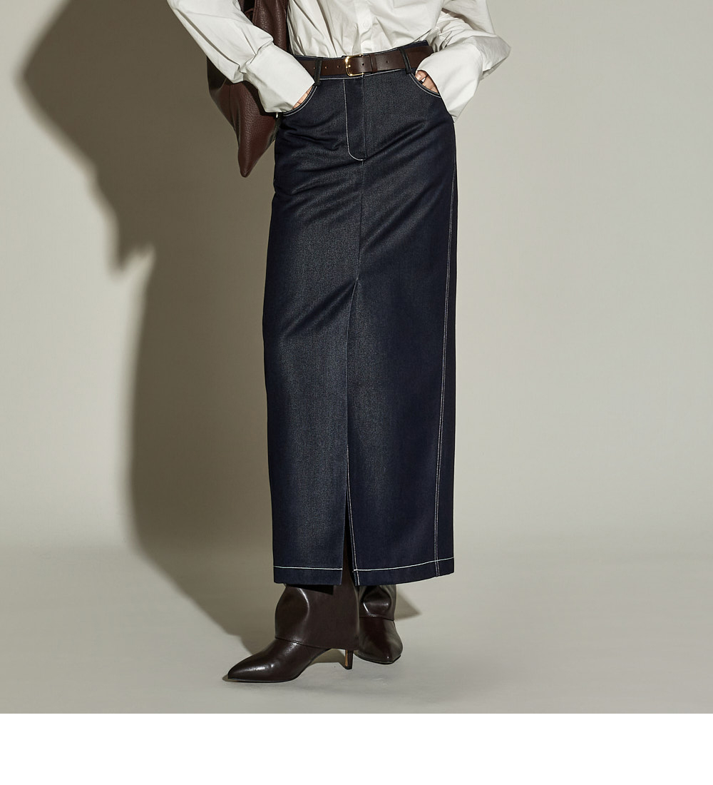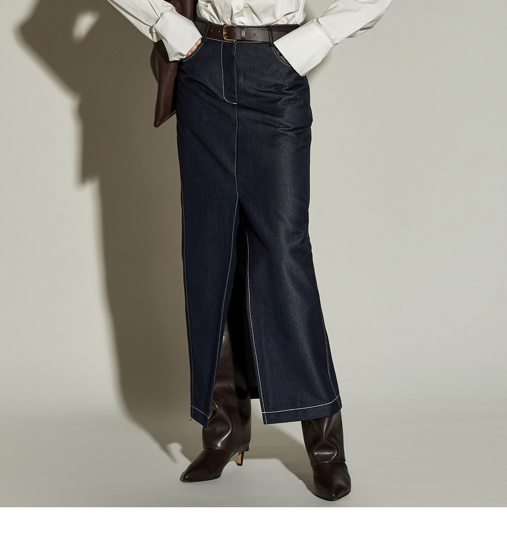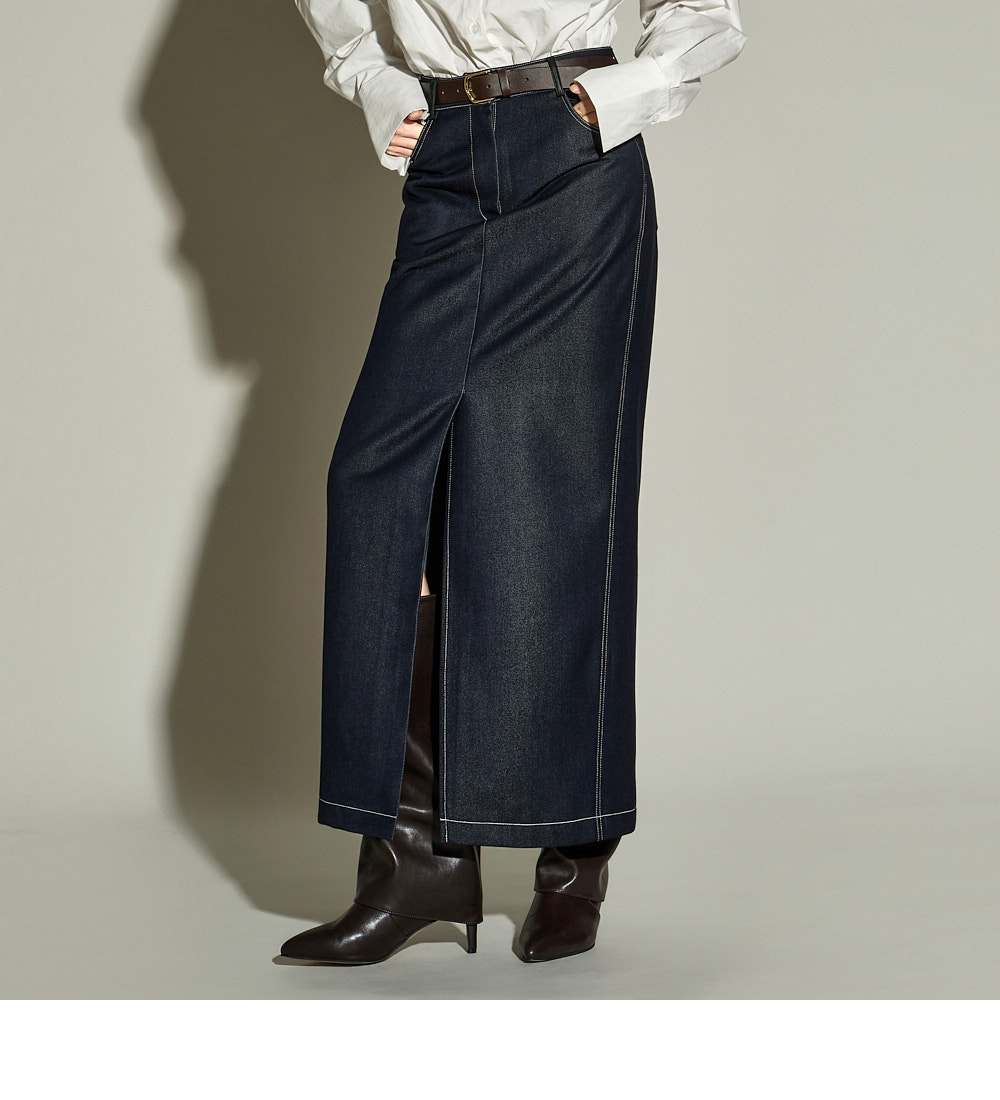 一款现代感的缝线 H 线裙。 采用聚酯纤维与人造丝混纺材质,穿着顺滑,干净利落的轮廓与适中的厚度,非常适合春秋季节穿搭。 缝线细节与前侧开衩设计成为亮点,展现现代且精致的气质。 搭配扣带拉链闭合,穿着稳固,两侧口袋与后口袋兼具实用性。 不仅可单独穿着,也可与同材质背心套装搭配,推荐入手。 模特身高 171CM,穿着 ONE 尺码,颜色为 DEEP BLUE。