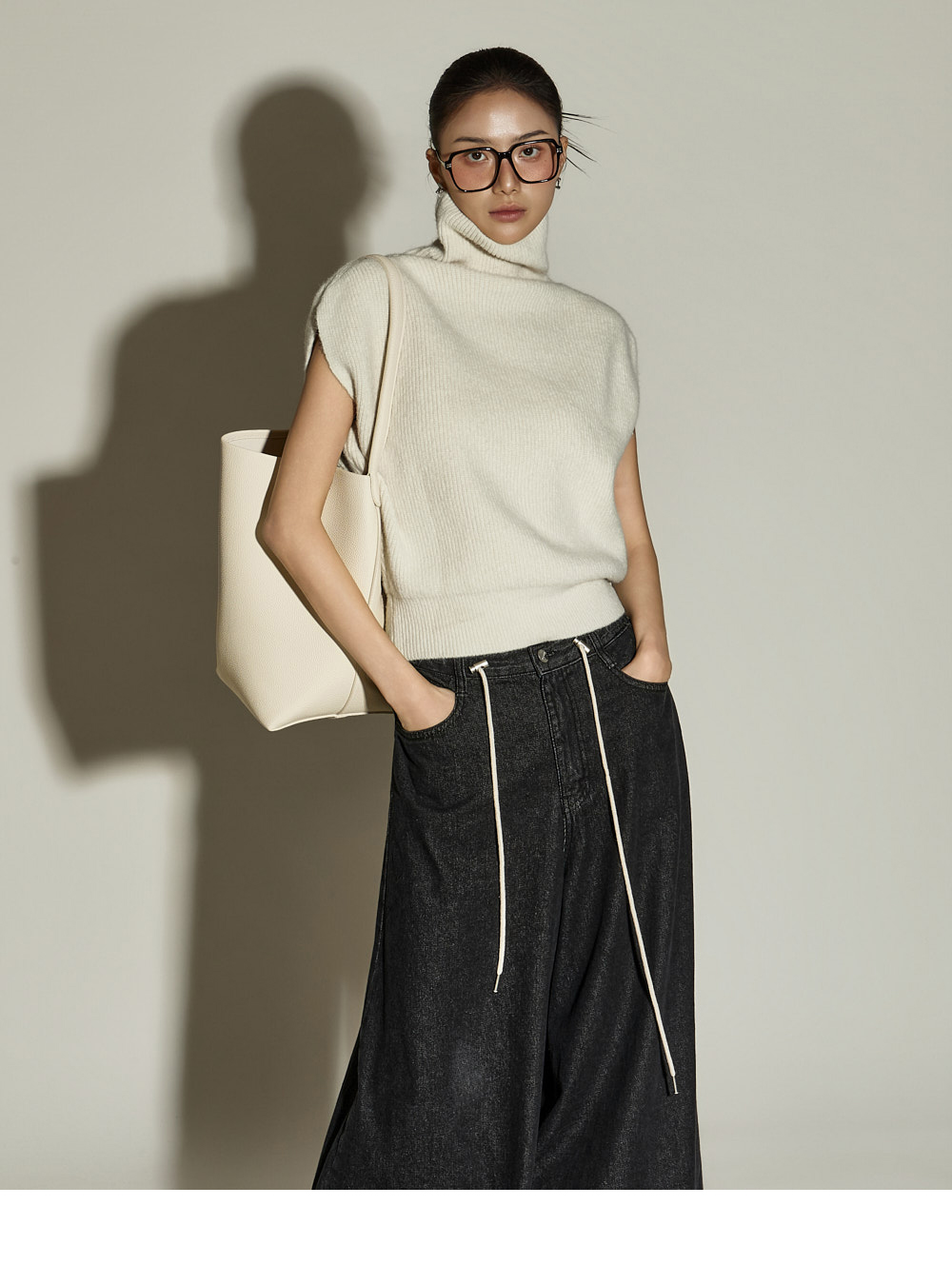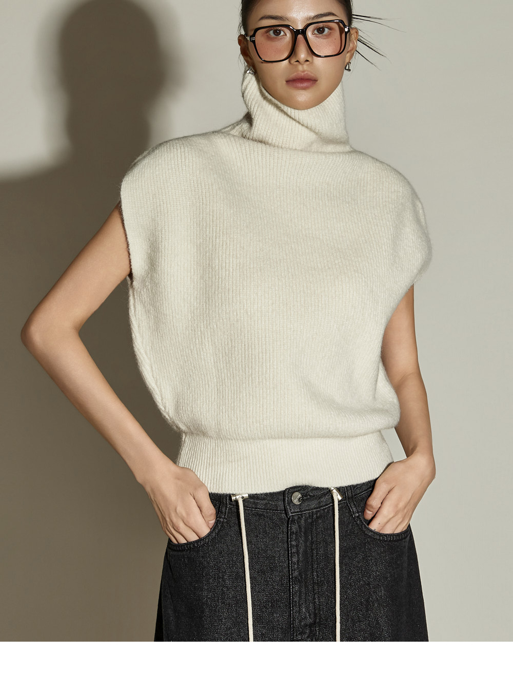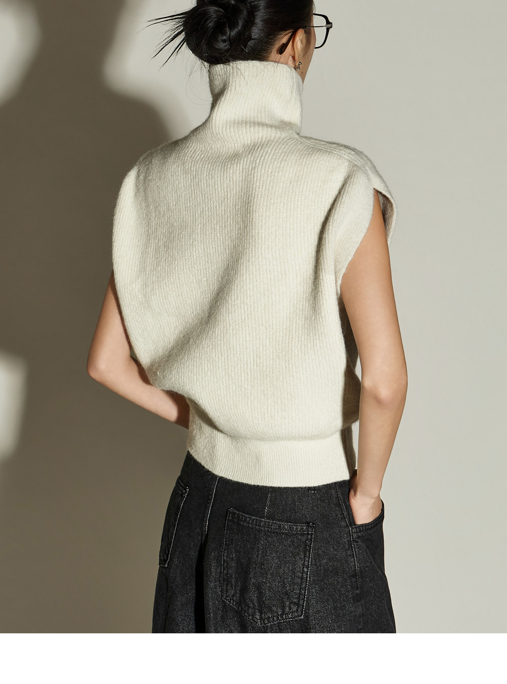 一款日常风格的针织背心。 采用丙烯纤维、聚酯纤维与尼龙混纺材质,轻盈舒适,穿着自在,富有弹性,活动灵活性佳。 ONE 尺码设计,任何人都可轻松穿着。高领设计增添独特亮点,背心版型易于搭配各种内搭单品。 无扣设计,穿脱简便,呈现日常又不失精致的氛围。 可与多种下装自然搭配,拓宽穿搭风格选择。 模特身高 171CM,穿着 ONE 尺码,颜色为 IVORY。