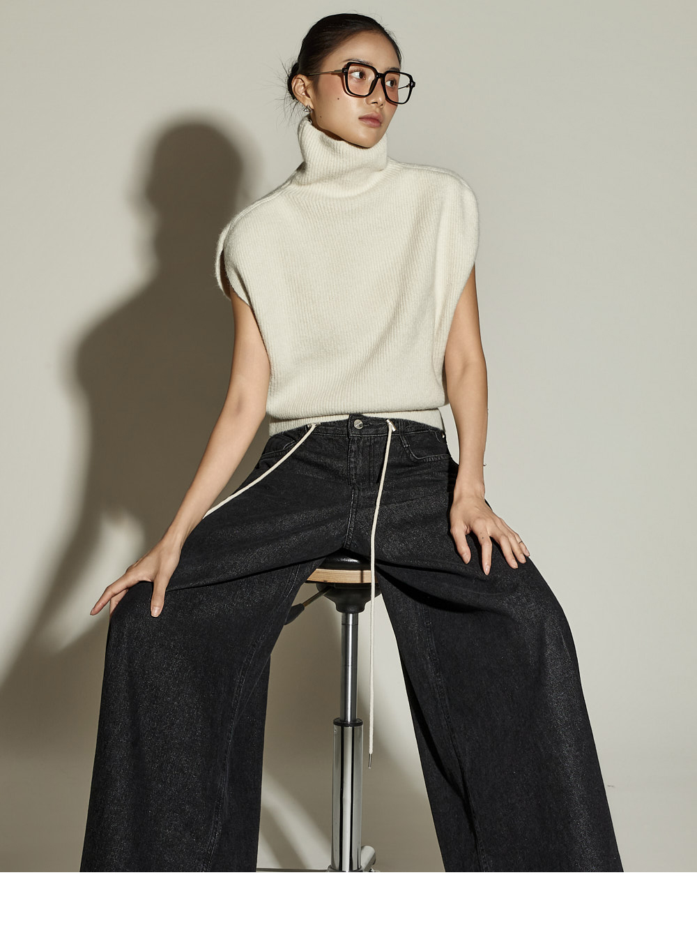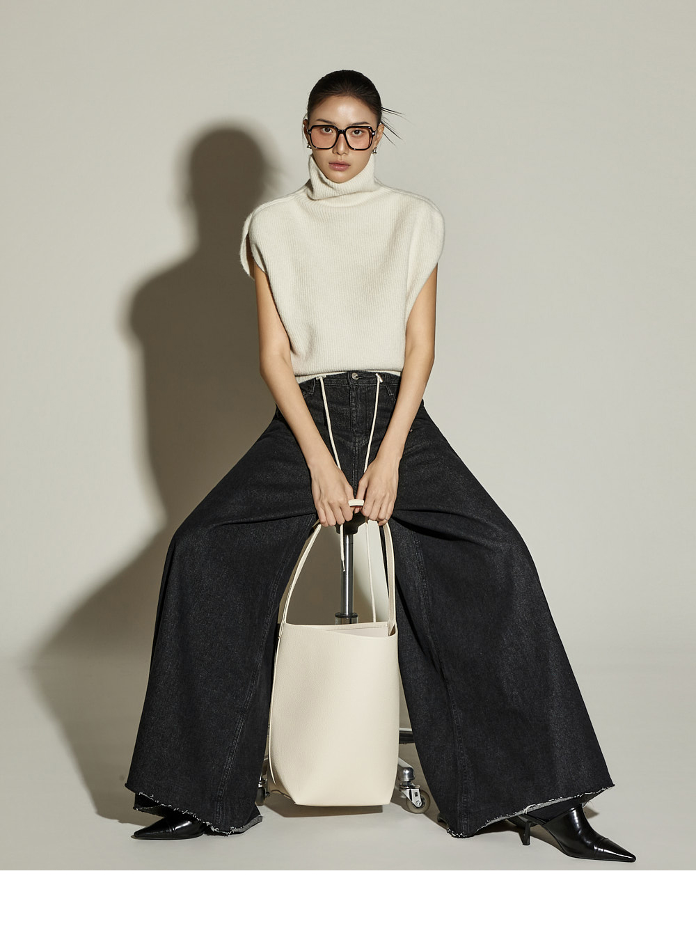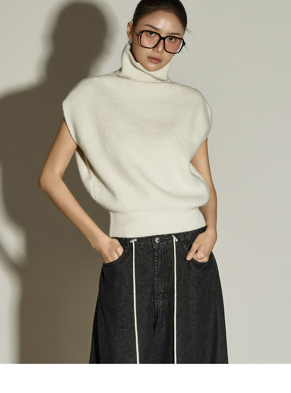 一款日常风格的针织背心。 采用丙烯纤维、聚酯纤维与尼龙混纺材质,轻盈舒适,穿着自在,富有弹性,活动灵活性佳。 ONE 尺码设计,任何人都可轻松穿着。高领设计增添独特亮点,背心版型易于搭配各种内搭单品。 无扣设计,穿脱简便,呈现日常又不失精致的氛围。 可与多种下装自然搭配,拓宽穿搭风格选择。 模特身高 171CM,穿着 ONE 尺码,颜色为 IVORY。
