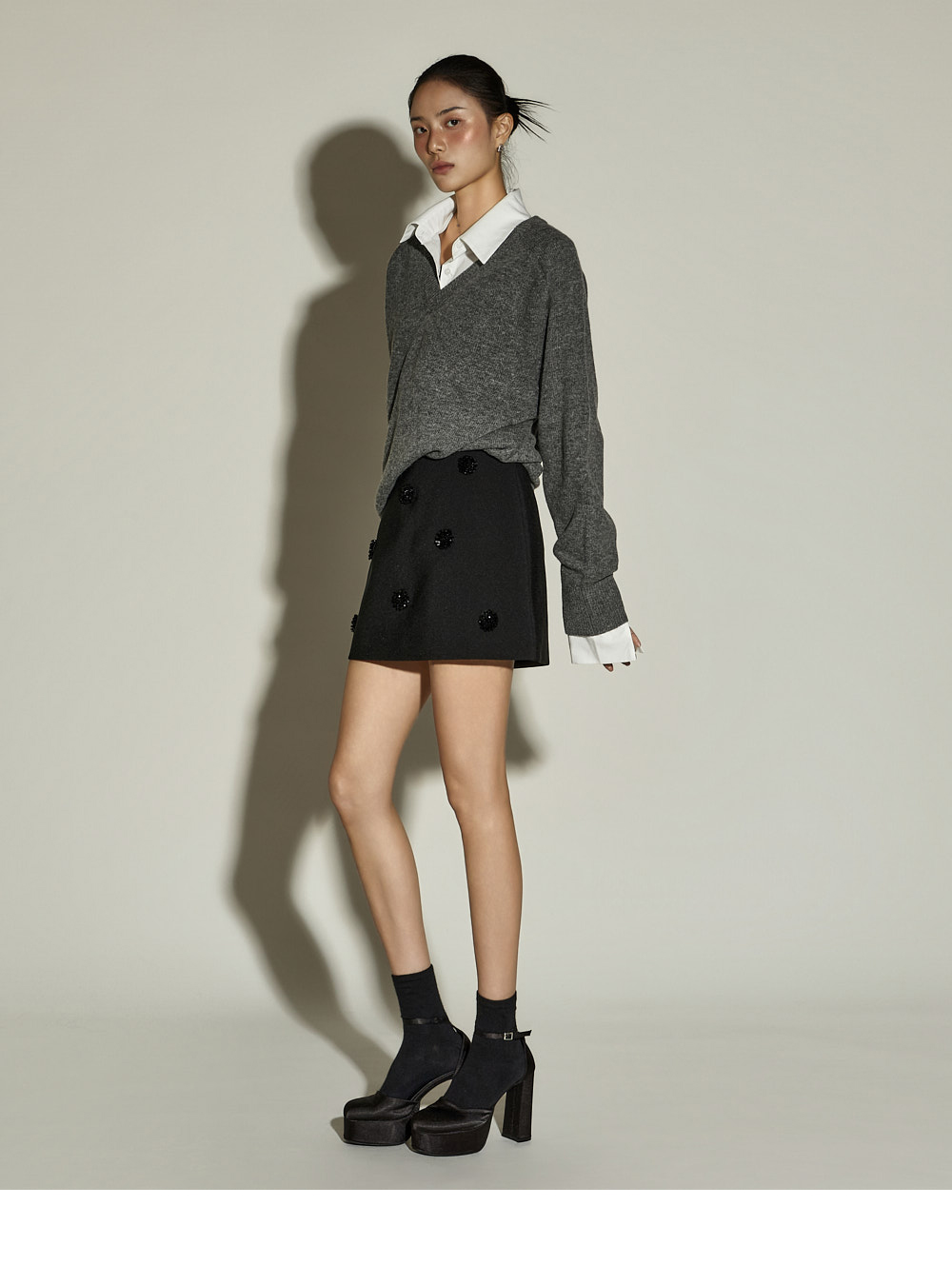 模特身高 171CM,穿着 ONE 尺码,颜色为 GRAY。