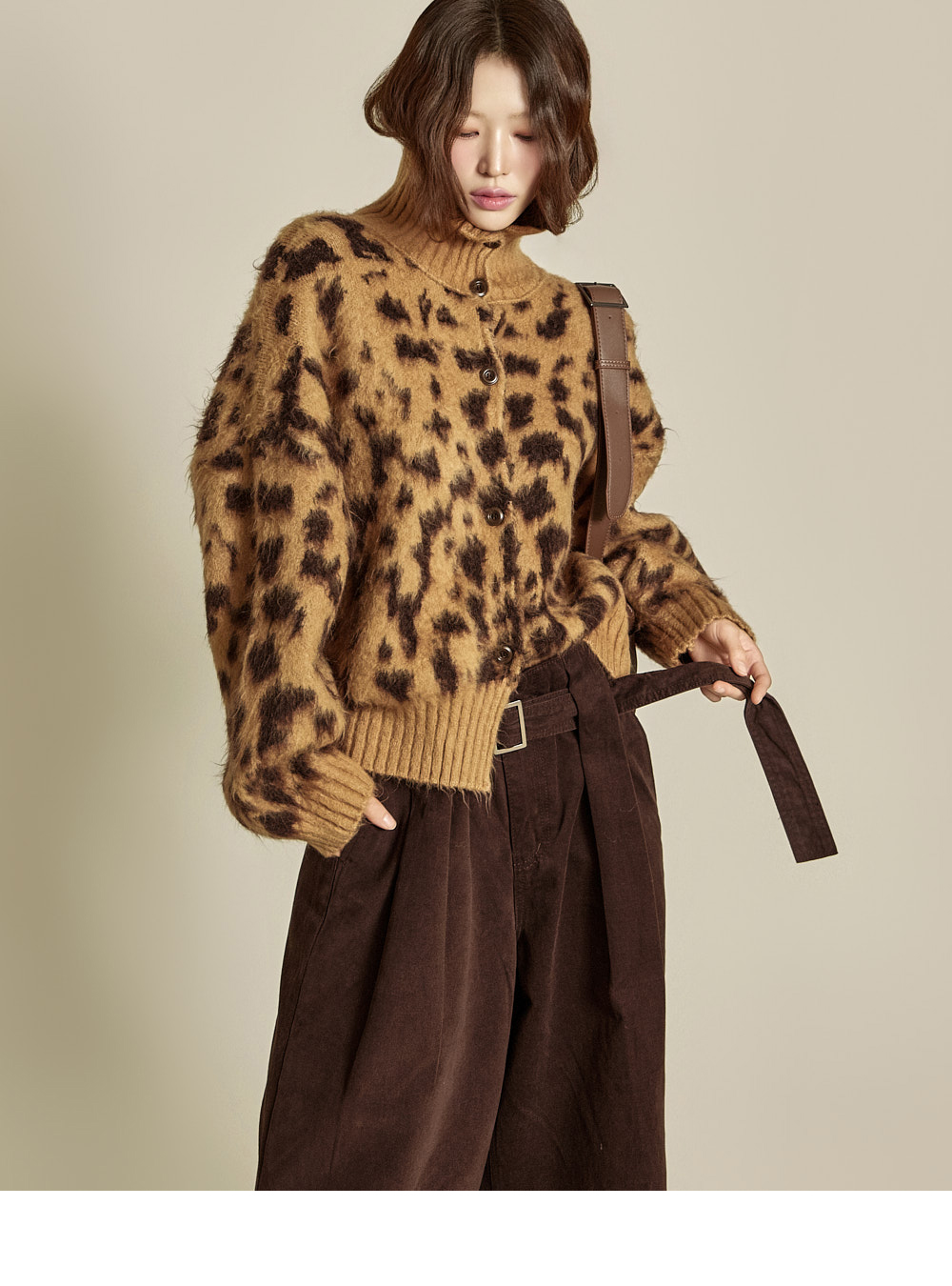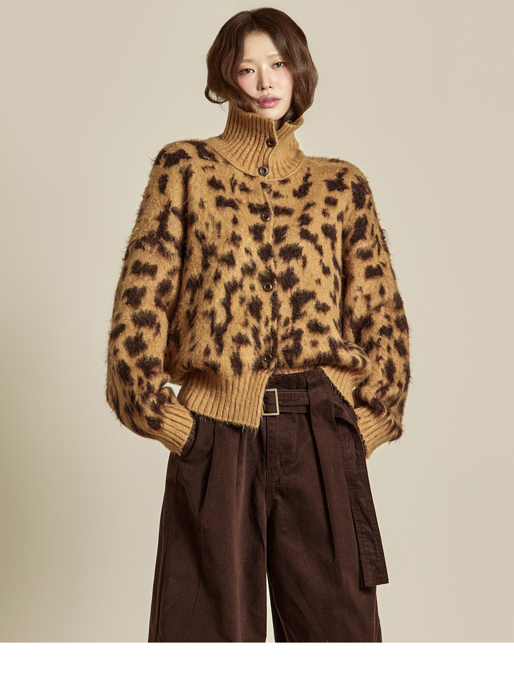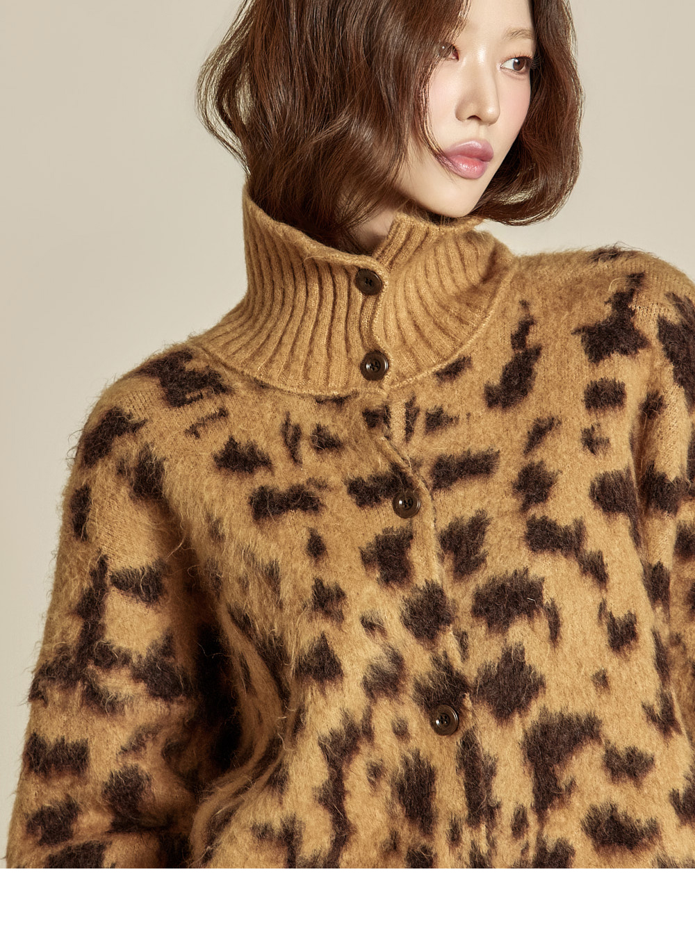 一款休闲风格的豹纹开衫。 采用弹性针织面料,穿着舒适,仿安哥拉的柔软质感增添温暖氛围。 整体豹纹图案吸引目光,即使单穿也能成为造型亮点,高领设计提升保暖性。 前襟纽扣设计,轻松开合,可轻松搭配牛仔裤、休闲裤或裙装,为造型增添趣味。 非常适合作为日常或轻松造型的亮点单品。 171CM 模特穿着 ONE 尺码,颜色为 BEIGE。