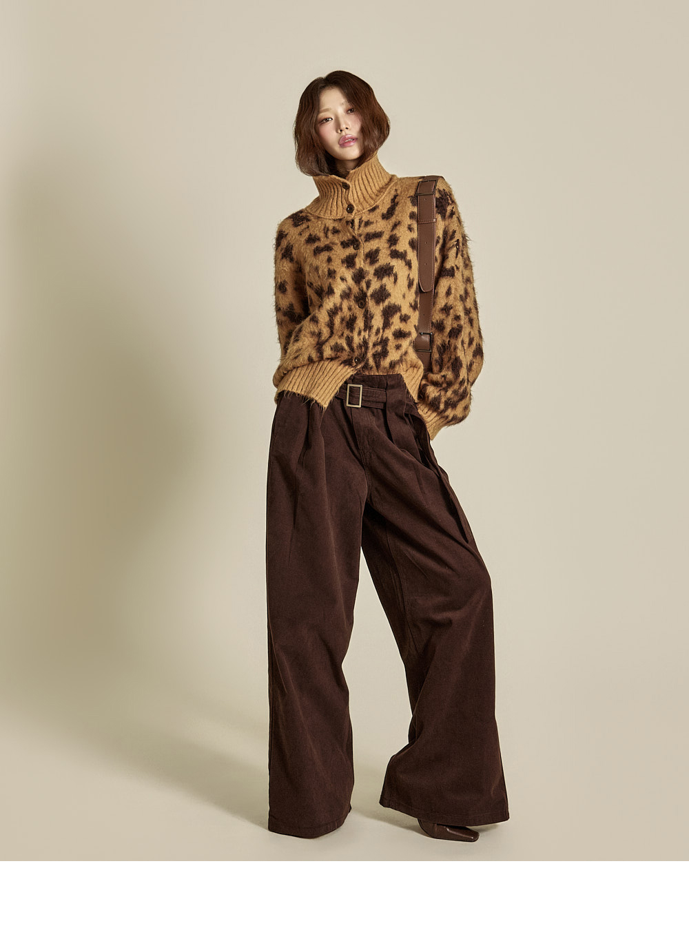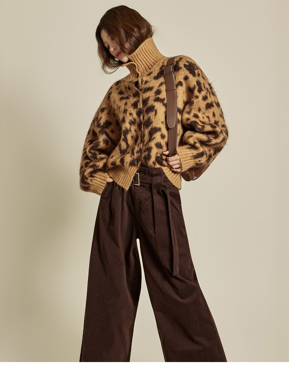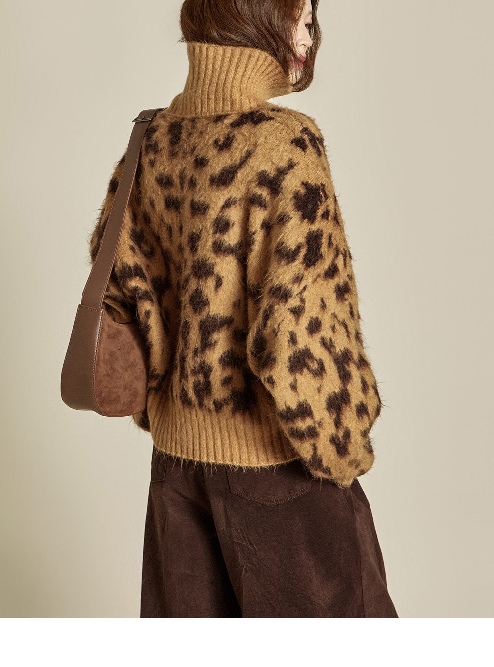一款休闲风格的豹纹开衫。 采用弹性针织面料,穿着舒适,仿安哥拉的柔软质感增添温暖氛围。 整体豹纹图案吸引目光,即使单穿也能成为造型亮点,高领设计提升保暖性。 前襟纽扣设计,轻松开合,可轻松搭配牛仔裤、休闲裤或裙装,为造型增添趣味。 非常适合作为日常或轻松造型的亮点单品。 171CM 模特穿着 ONE 尺码,颜色为 BEIGE。