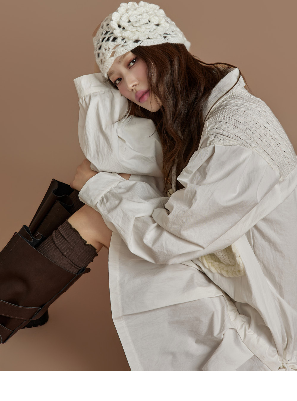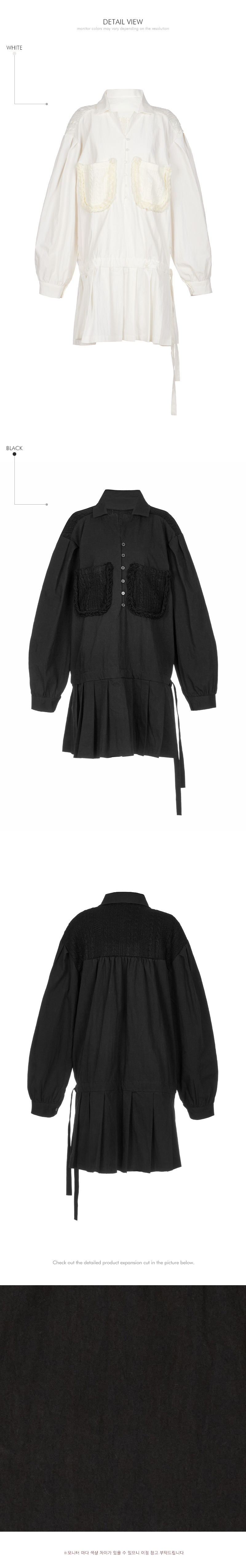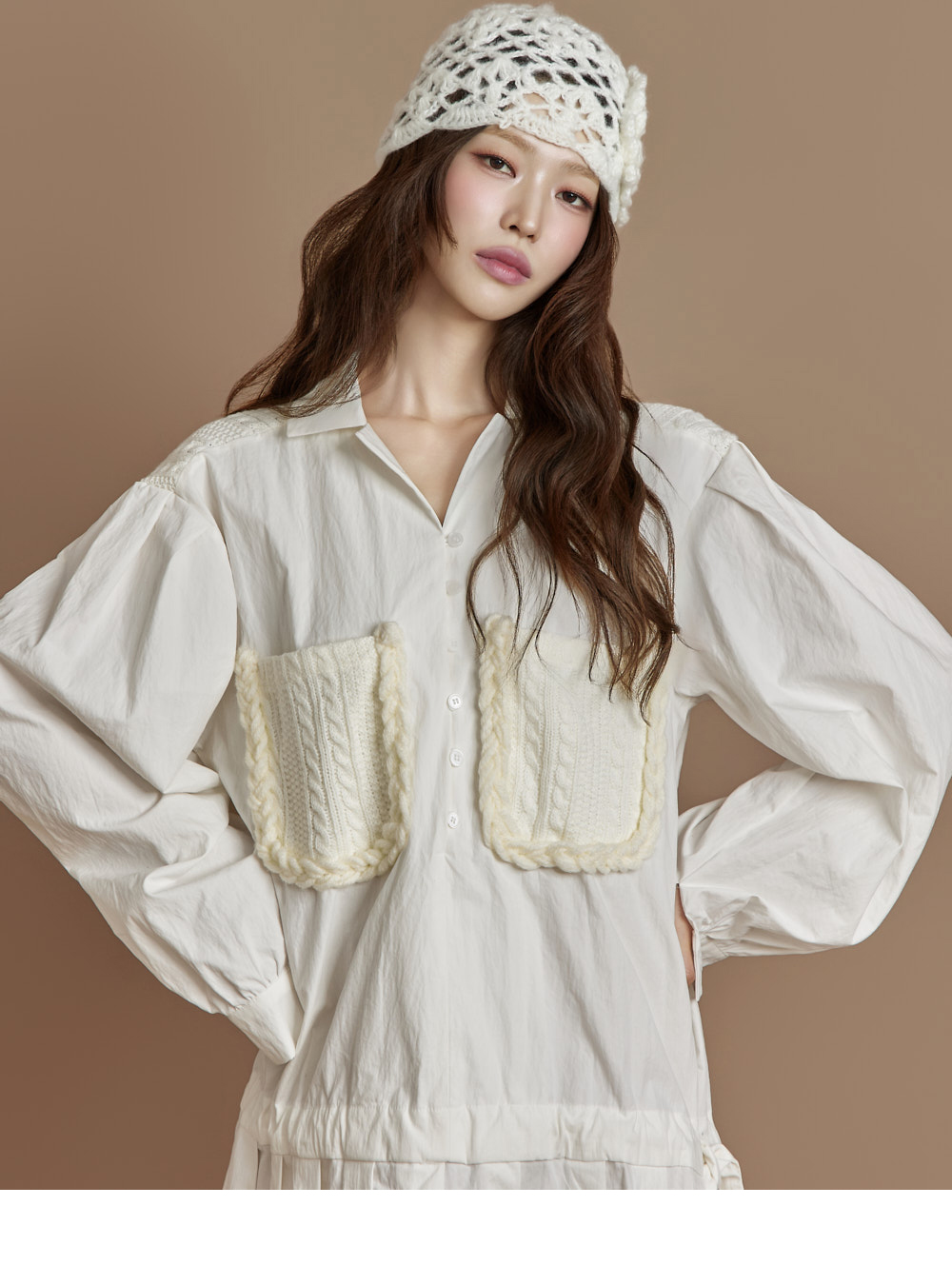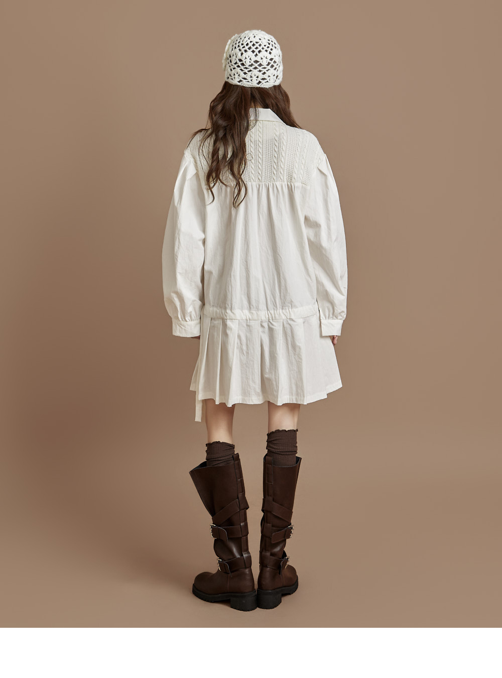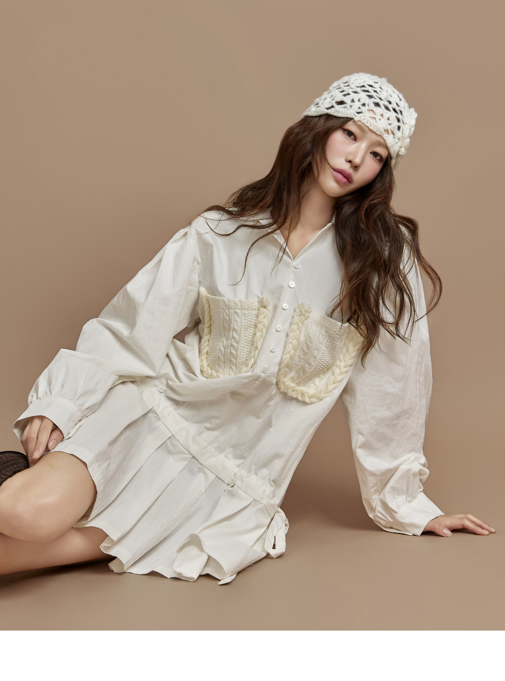 一款可爱氛围的迷你连衣裙。 采用棉与尼龙混纺面料制作,兼具挺括感与舒适穿着感,ONE 尺码设计,任何人都能轻松驾驭。 下摆加入百褶细节,打造可爱的轮廓,迷你长度增添活泼气息。 胸部口袋处采用针织拼接作为亮点,展现独特细节,前襟纽扣设计与腰部束带可根据身形调节,打造更修身的版型。 单穿即可呈现可爱且完整的造型,也可搭配多种外套,轻松打造符合季节的穿搭,是高实用性的单品。 171CM 模特穿着 ONE 尺码,颜色为 WHITE。