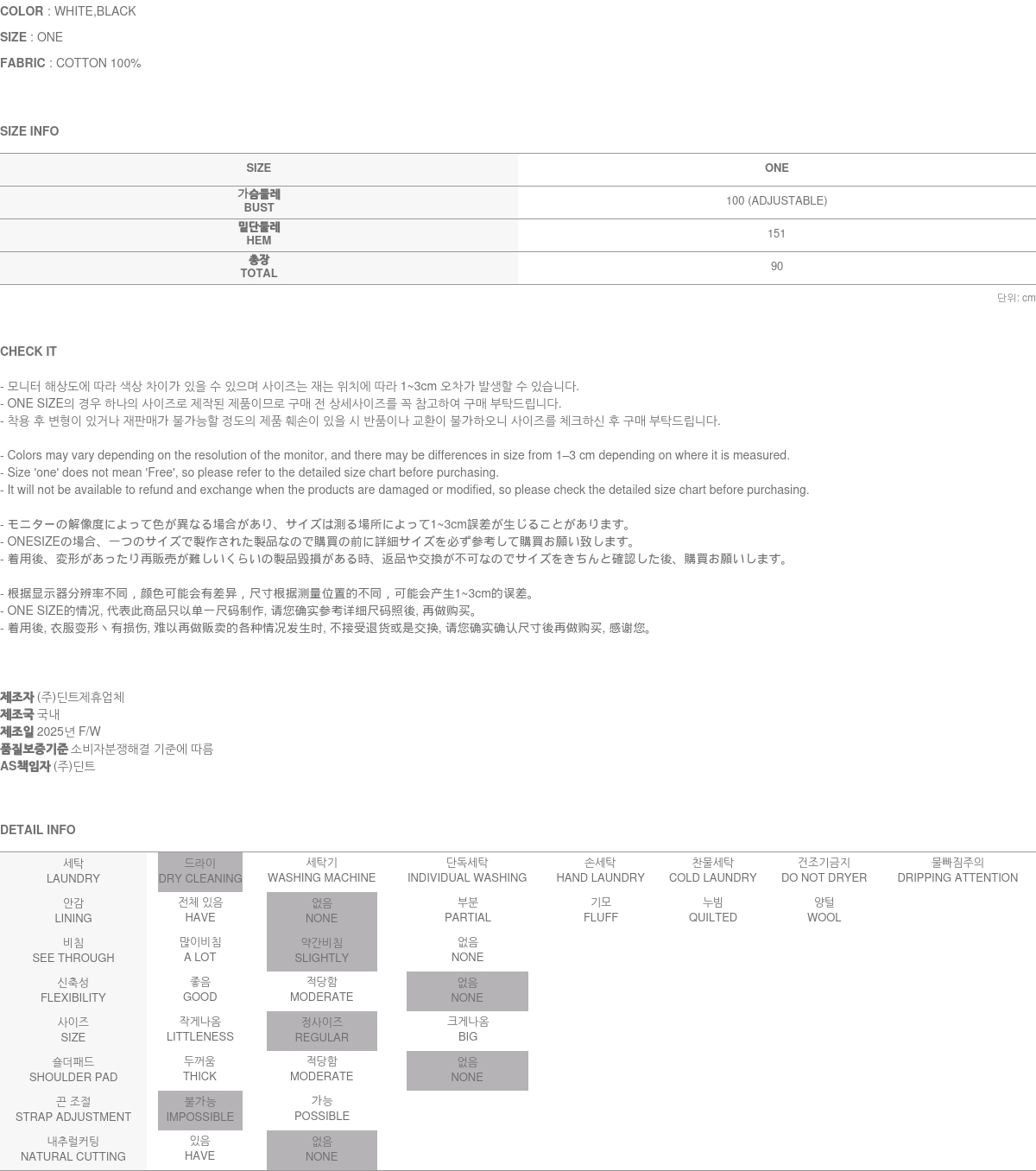 關於售後服務 瑕疵商品, 或是布料瑕疵、不正確標註的尺碼或質料, 引起的問題, 將會爲您進行修復/車縫 → 交換 → 退貨處理 (換貨與退貨的實際舉例, 請參考 ”換貨與退貨“ 與 “無法進行換貨與退貨的情況”之說明.) A/S負責人與連絡電話:DINT.Inc (gbcs_dint@naver.com)