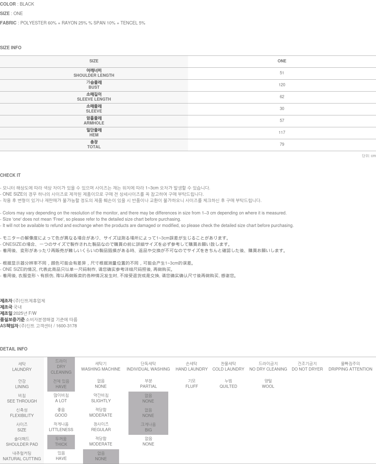 171CM 模特穿着 ONE 尺码,颜色为 BLACK。