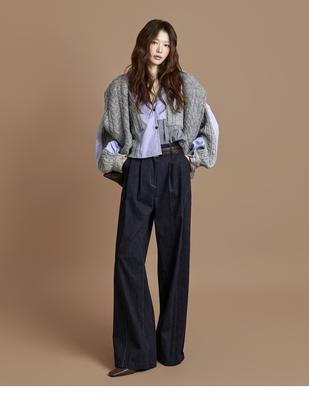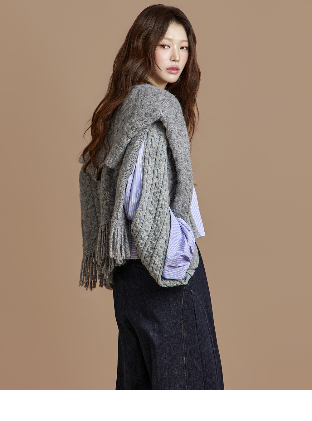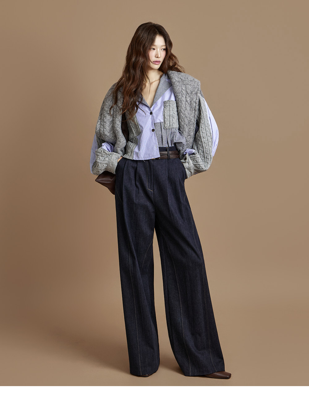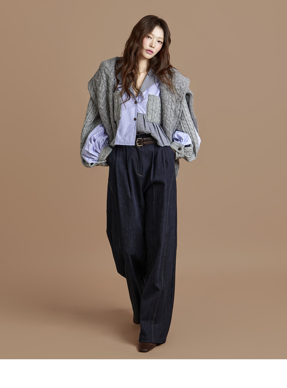 这是一款以针织拼接设计为亮点的短款衬衫。 采用聚酯纤维与天丝混纺面料制成,质地轻盈柔软,穿着舒适亲肤。 衬衫布料与针织材质相结合的设计,营造出独特的时尚氛围,条纹与褶皱细节更添层次感与个性魅力。 可单独穿着,也能与内搭或外套叠穿,从日常造型到约会穿搭都能轻松驾驭,是一款实用性与设计感兼具的单品。 模特身高171CM,穿着ONE尺码,示范颜色为天蓝色(SKY BLUE)。
