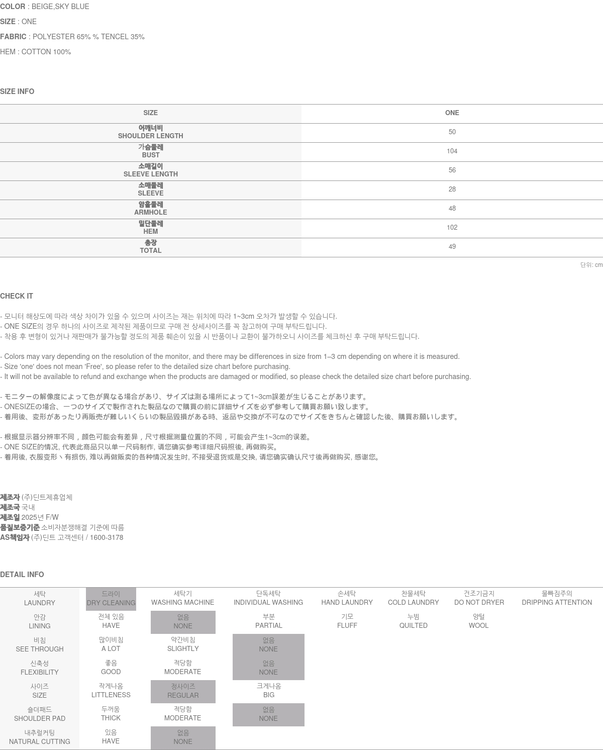 關於售後服務 瑕疵商品, 或是布料瑕疵、不正確標註的尺碼或質料, 引起的問題, 將會爲您進行修復/車縫 → 交換 → 退貨處理 (換貨與退貨的實際舉例, 請參考 ”換貨與退貨“ 與 “無法進行換貨與退貨的情況”之說明.) A/S負責人與連絡電話:DINT.Inc (gbcs_dint@naver.com)