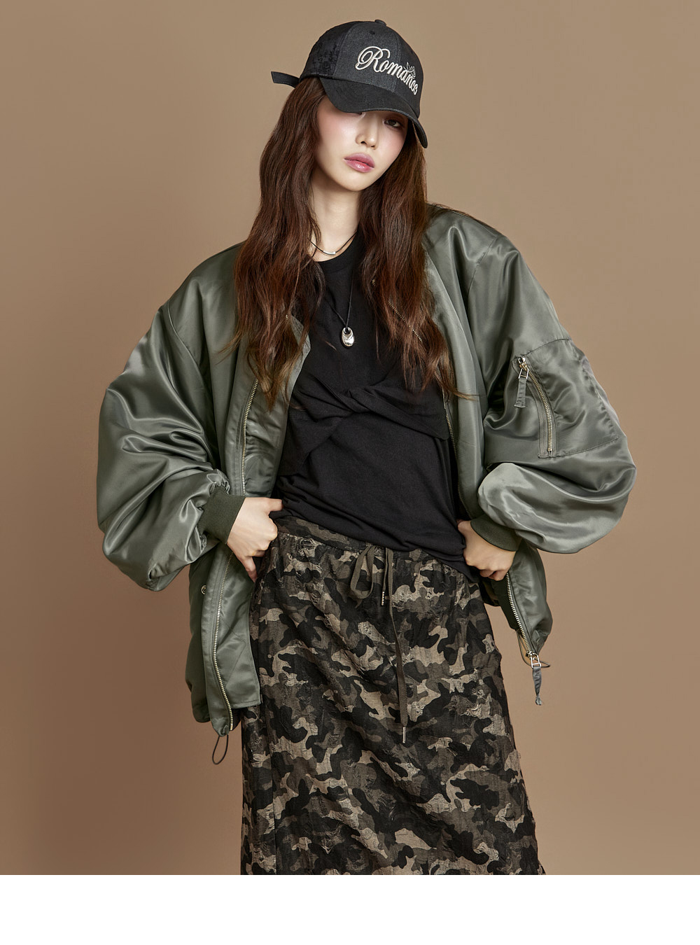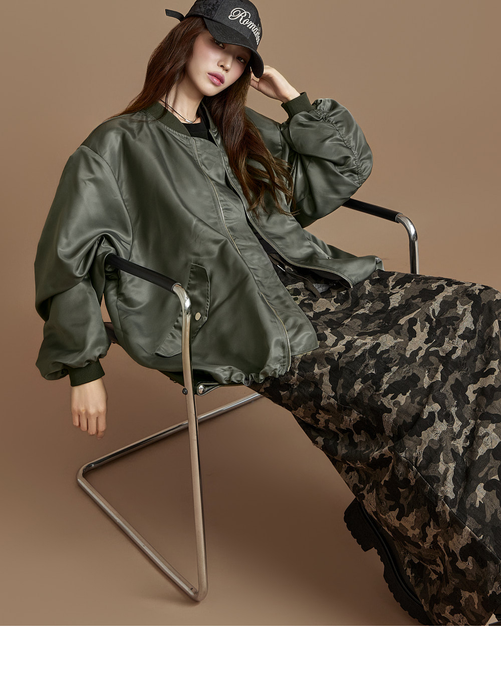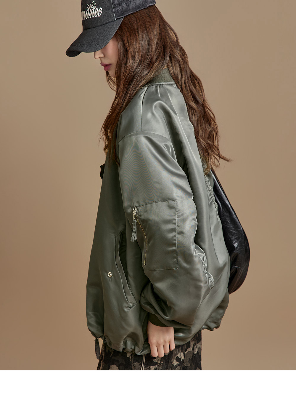 袖部的抽皱设计成为独特亮点,领口与袖口罗纹收边,
