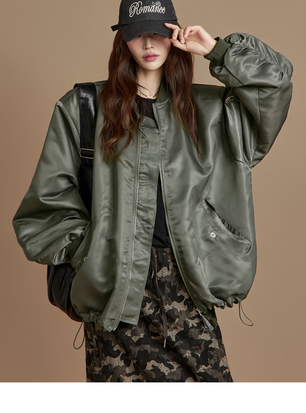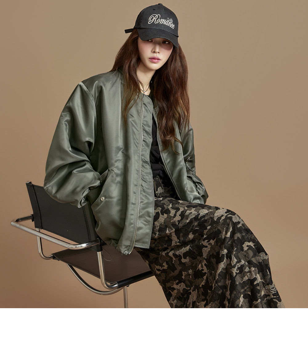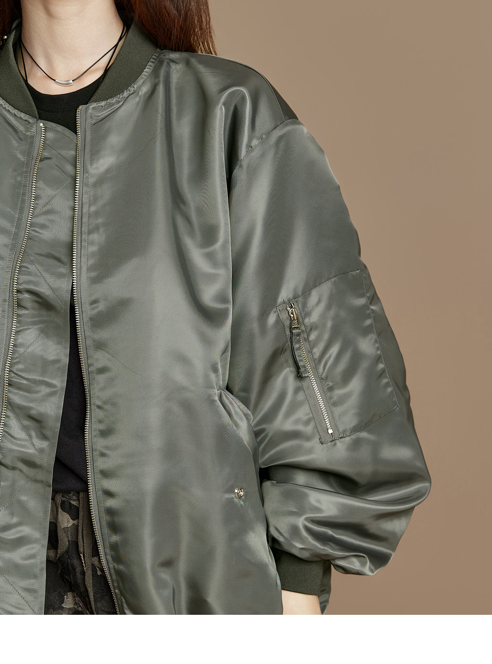 适量的肩垫设计让夹克版型更稳固,前置拉链便于轻松穿脱。