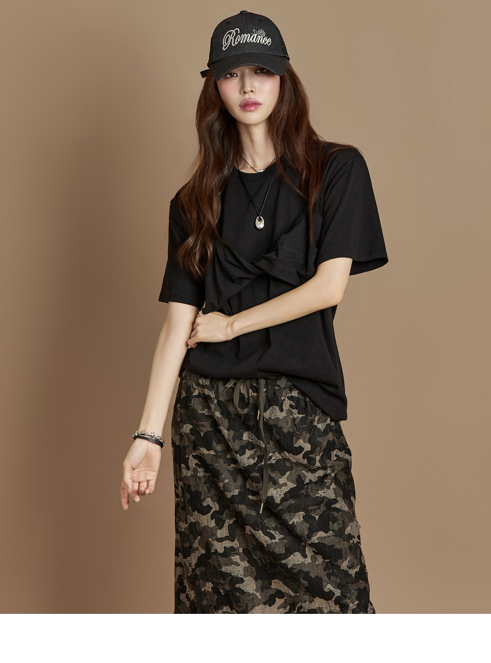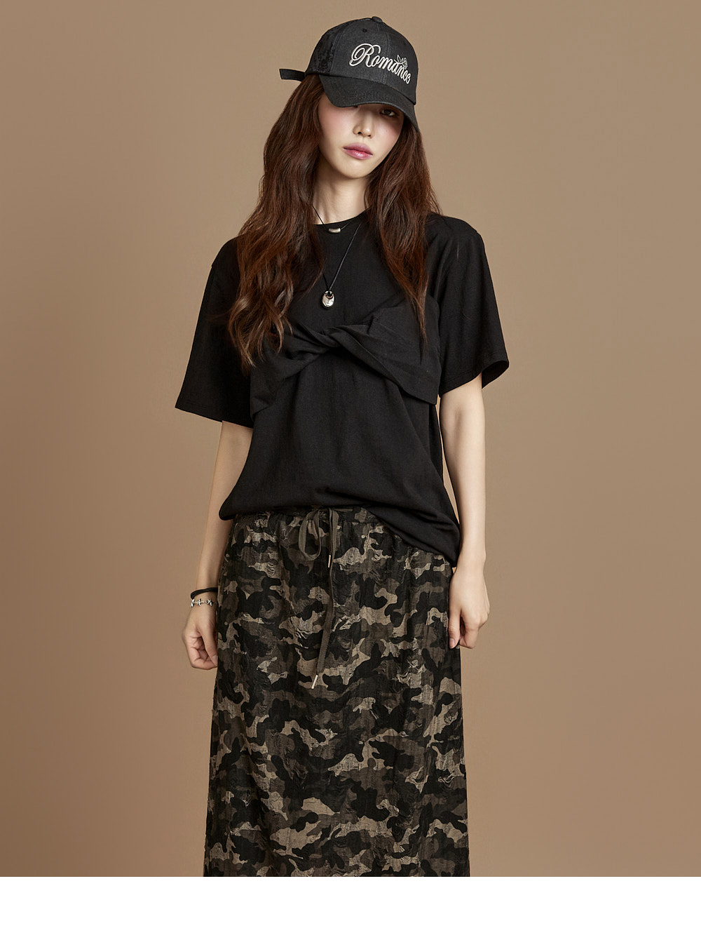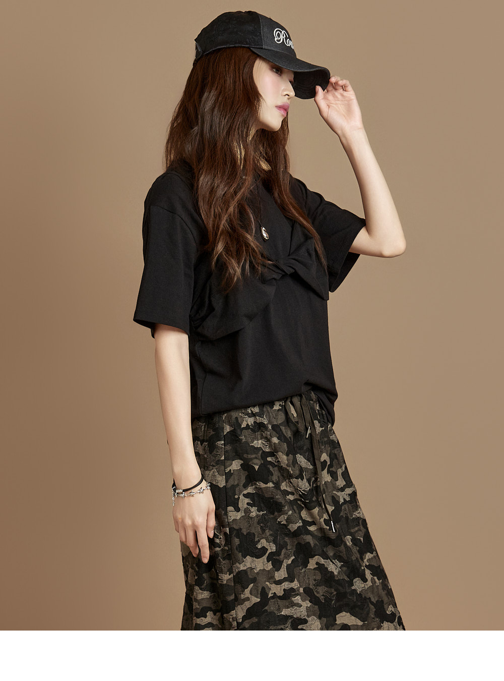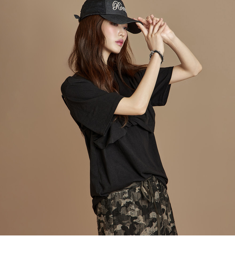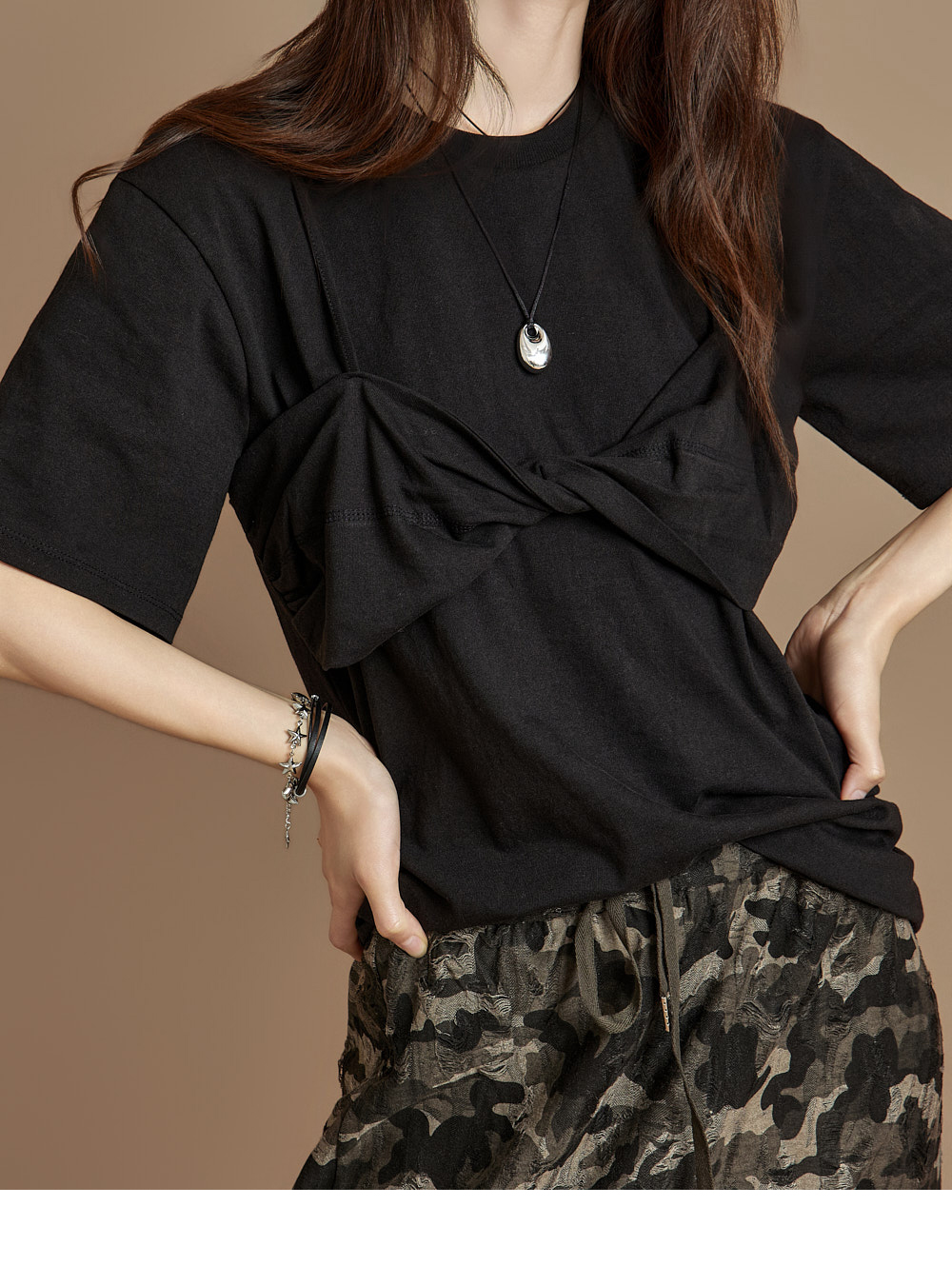 这是一款充满休闲氛围的上衣。 采用柔软的纯棉面料制成,穿着舒适亲肤,ONE尺码设计可自然贴合多种身型。 宽松版型搭配圆领设计,日常穿着轻松自在,叠穿式胸衣层次点缀增添时尚感,展现出独特又利落的造型。 面料具适度弹性,活动舒适;胸衣部分为固定设计,不可拆卸,提升整体完整度与造型感。 无论是日常穿搭,还是作为外套内搭单品,都能轻松展现休闲又有型的风格。 模特身高171CM,穿着ONE尺码,示范颜色为黑色(BLACK)。