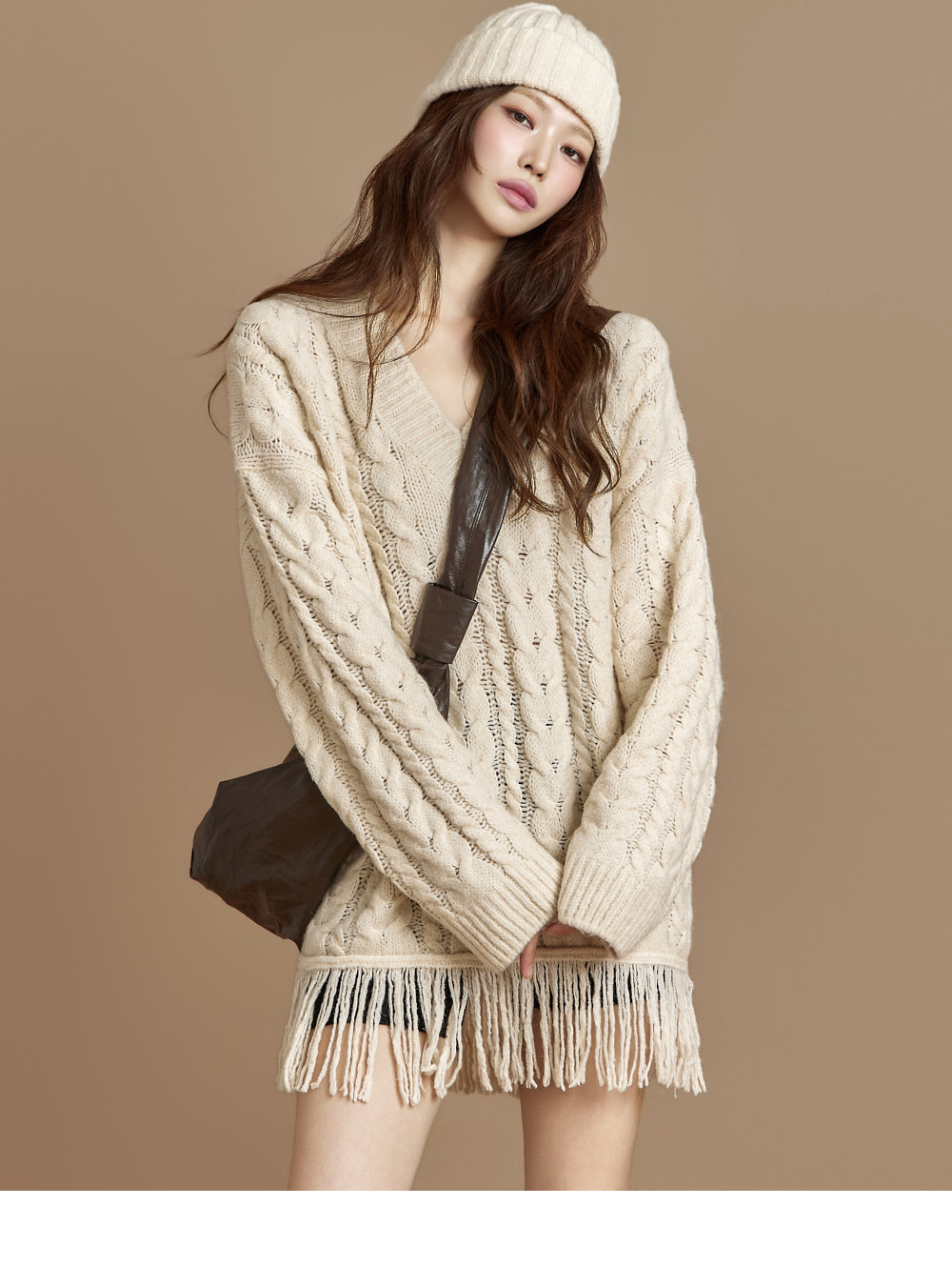 模特身高171CM,穿着ONE尺码,示范颜色为象牙白(IVORY)。