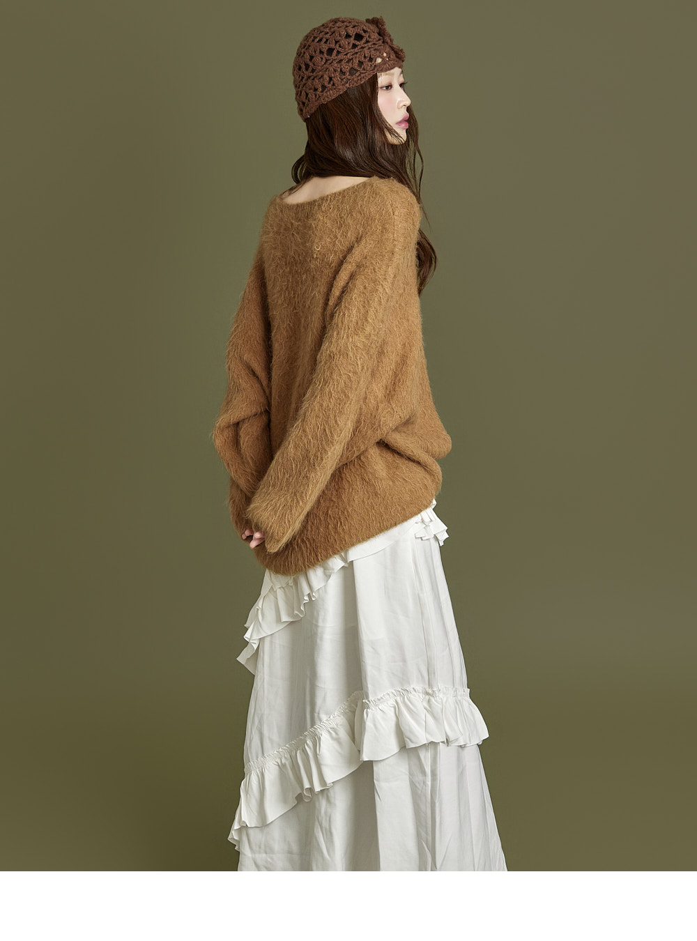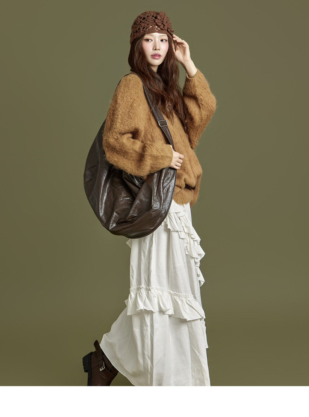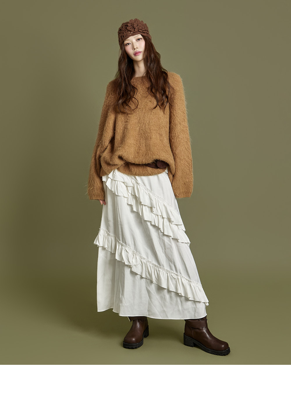 롱한 기장에 자연스럽게 흐르는 프릴 디테일이