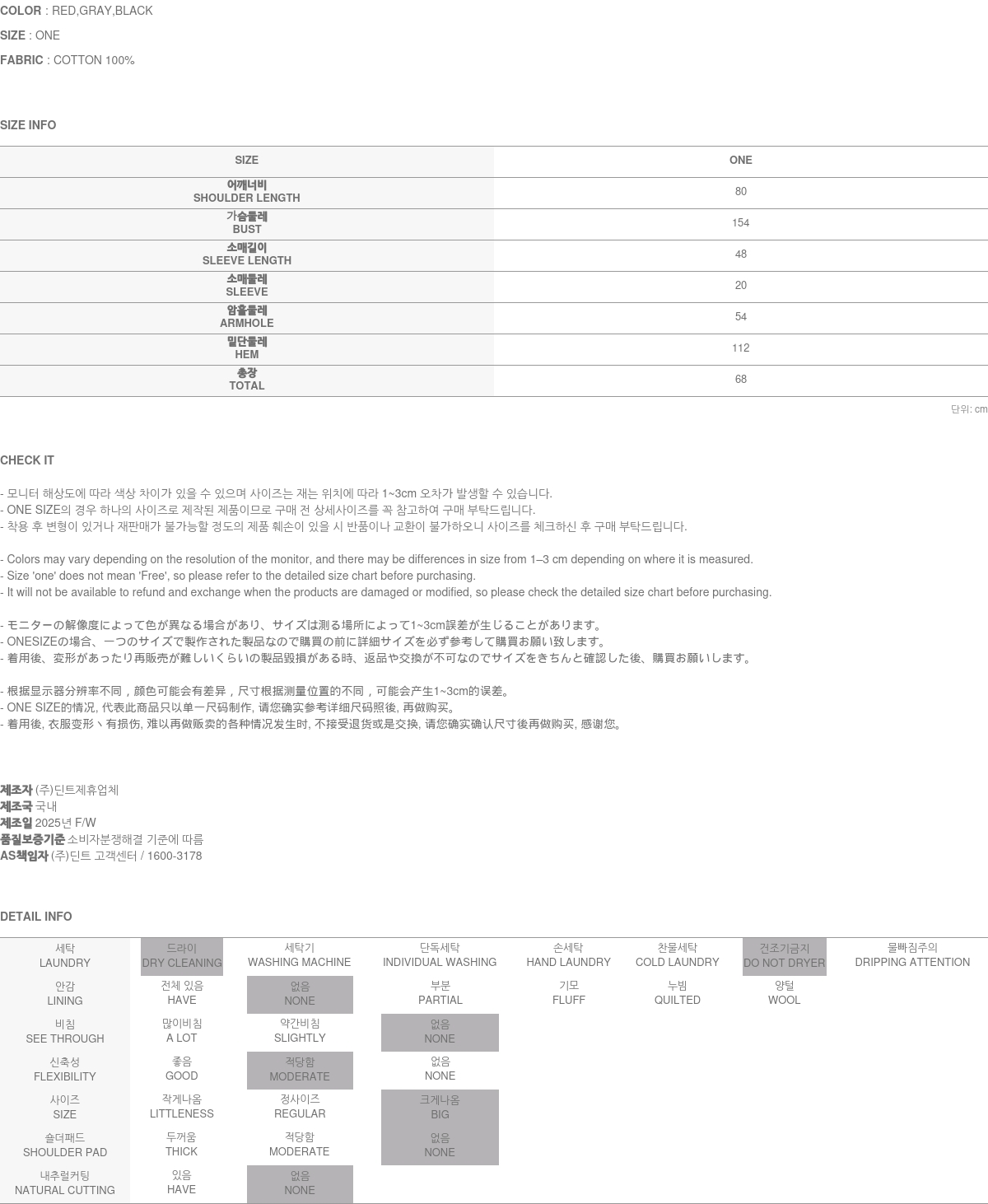 • 退貨住所爲:首爾市 衿川區 加山洞 459-8號 大韓通運 7樓 DINT股份有限公司