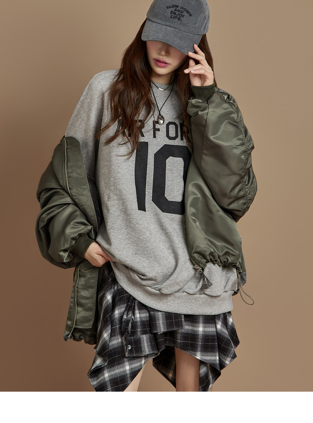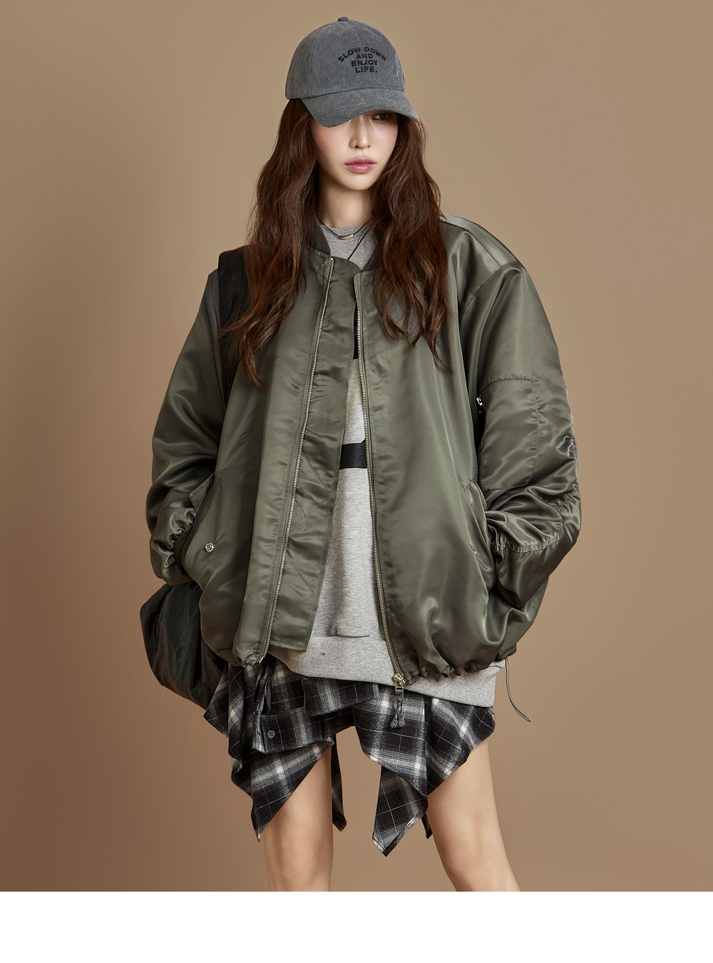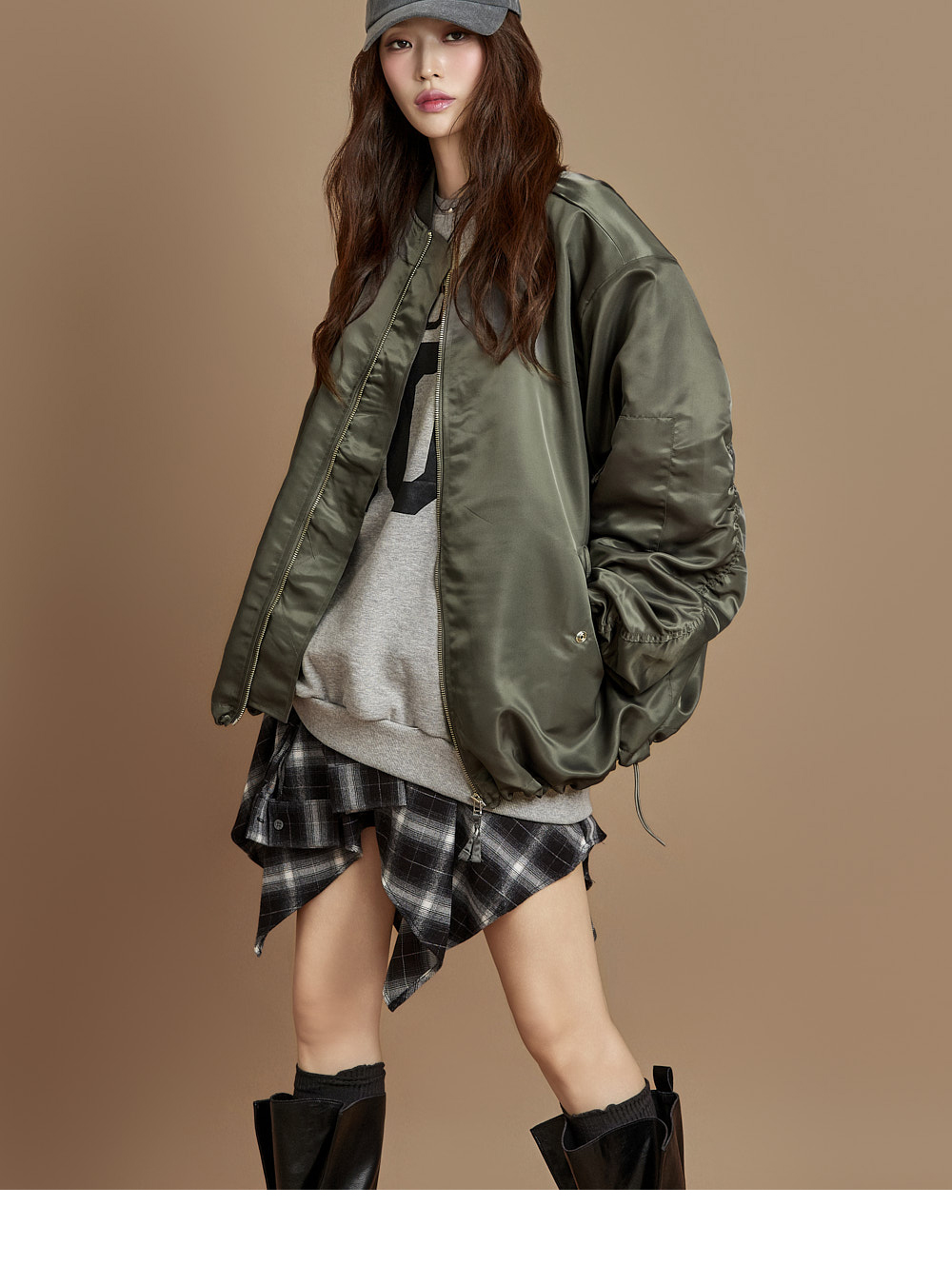 171CM 模特穿着 ONE 尺码,GRAY 颜色。
