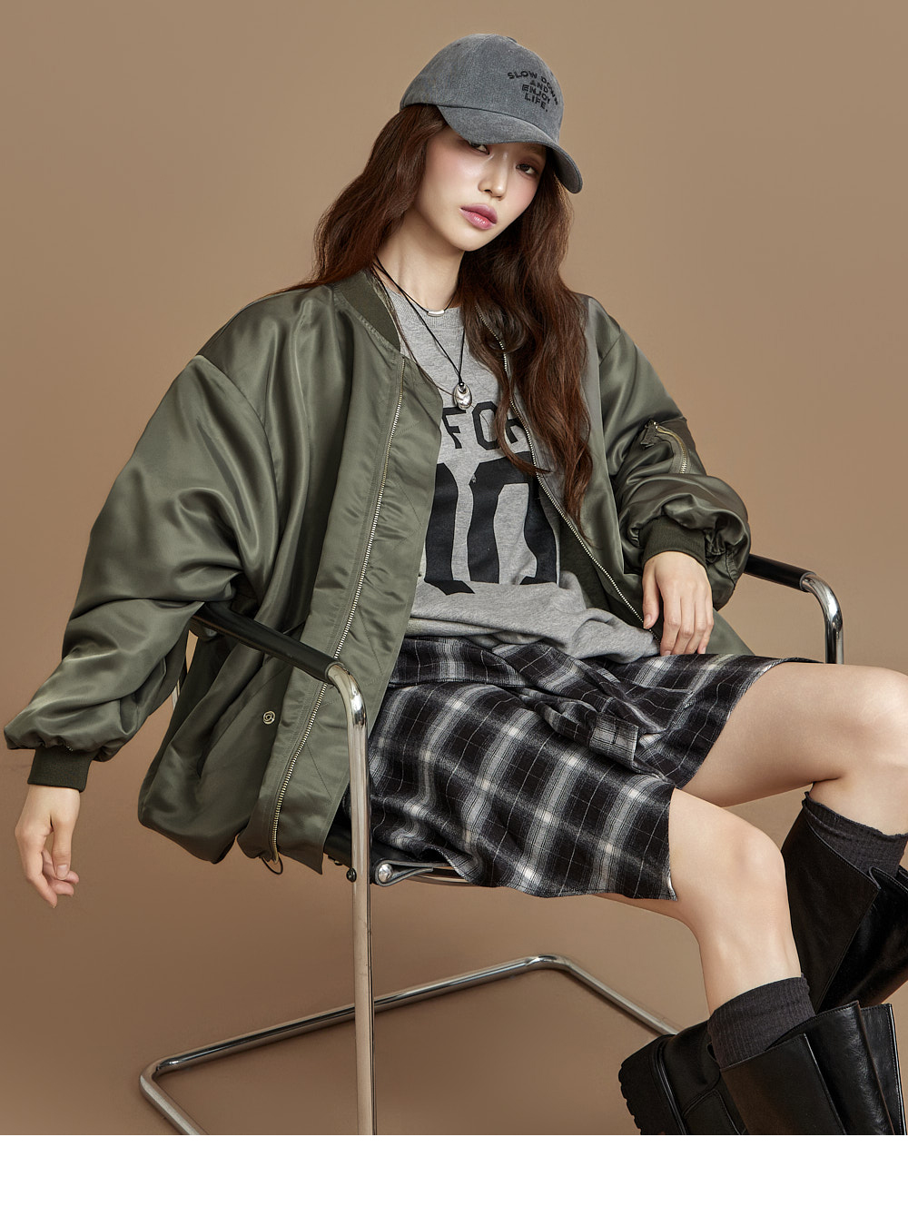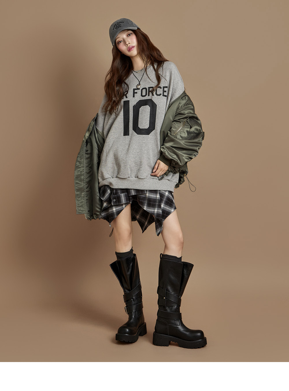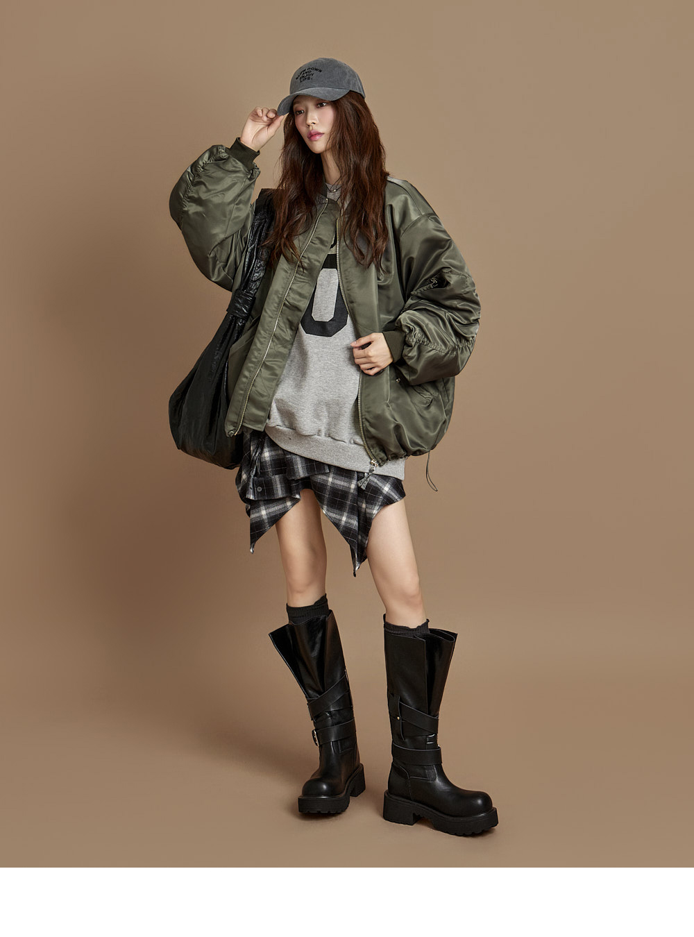 171CM 模特穿着 ONE 尺码,GRAY 颜色。