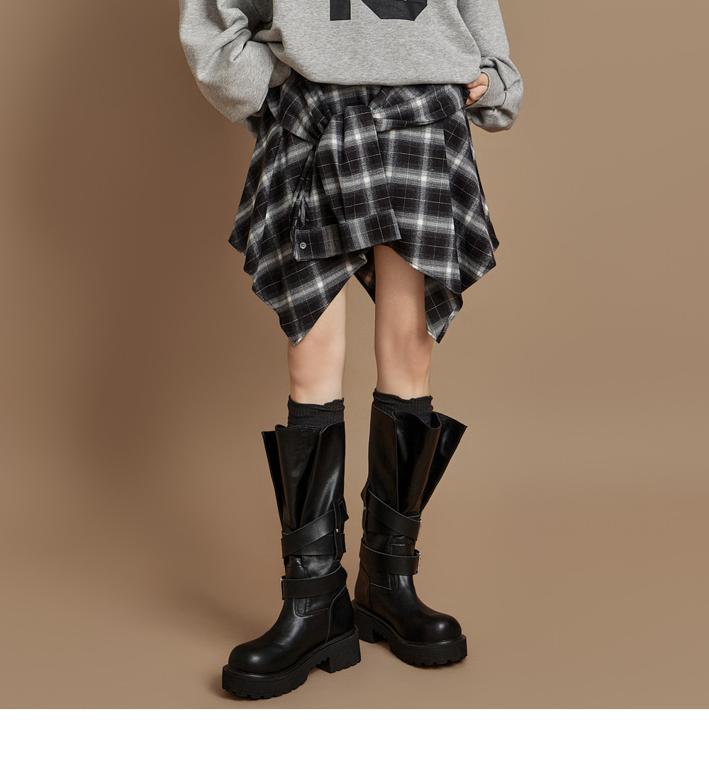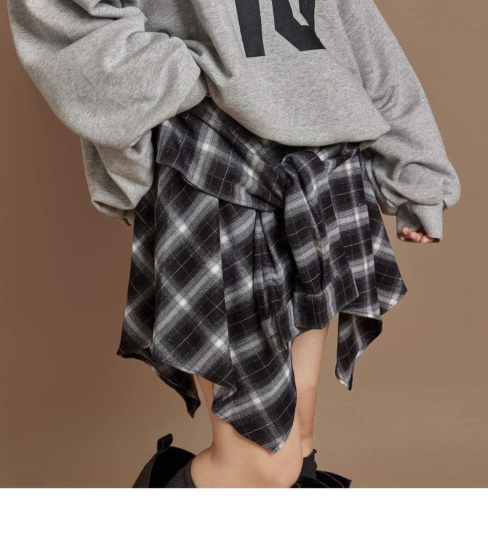 这是一款独特风格的衬衫叠层裙。 采用聚酯纤维与棉混纺面料制作,呈现自然版型并提供轻盈舒适的穿着感。 不规则下摆设计搭配衬衫叠层细节,格纹图案增添休闲气息。 侧边拉链设计,方便穿脱;腰带设计可调节版型,同时保持稳定的轮廓。 既可单穿,也可搭配上衣塞入,轻松打造约会或休闲风格,百搭实用。 171CM 模特穿着 ONE 尺码,GRAY 颜色。