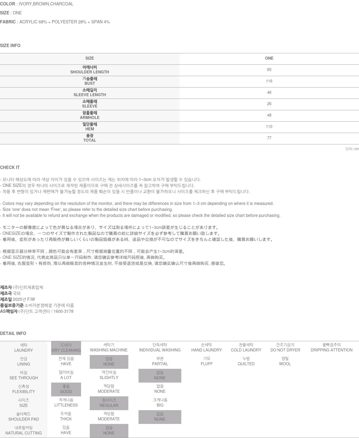171CM 模特穿着 ONE 尺码,CHARCOAL 颜色。