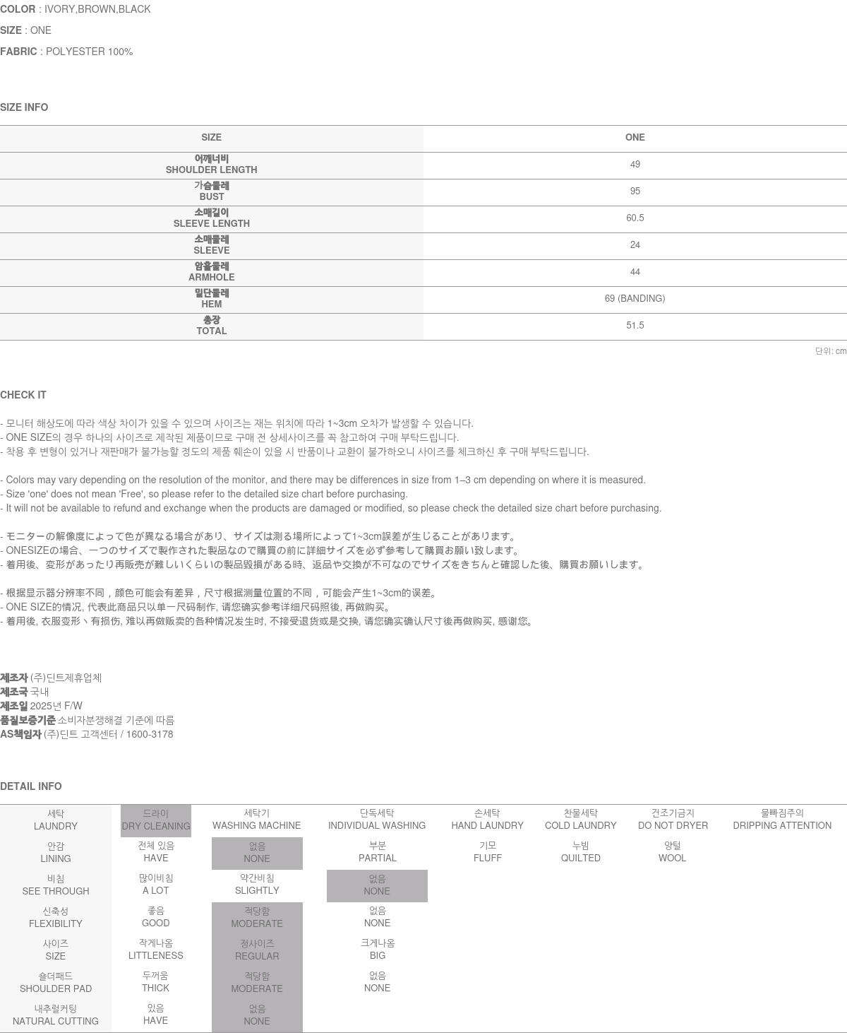 • DINT的所有商品, 使用一般洗滌或是烘乾機, 皆有可能成爲變形或是商品損傷的原因, 建議您使用乾洗.