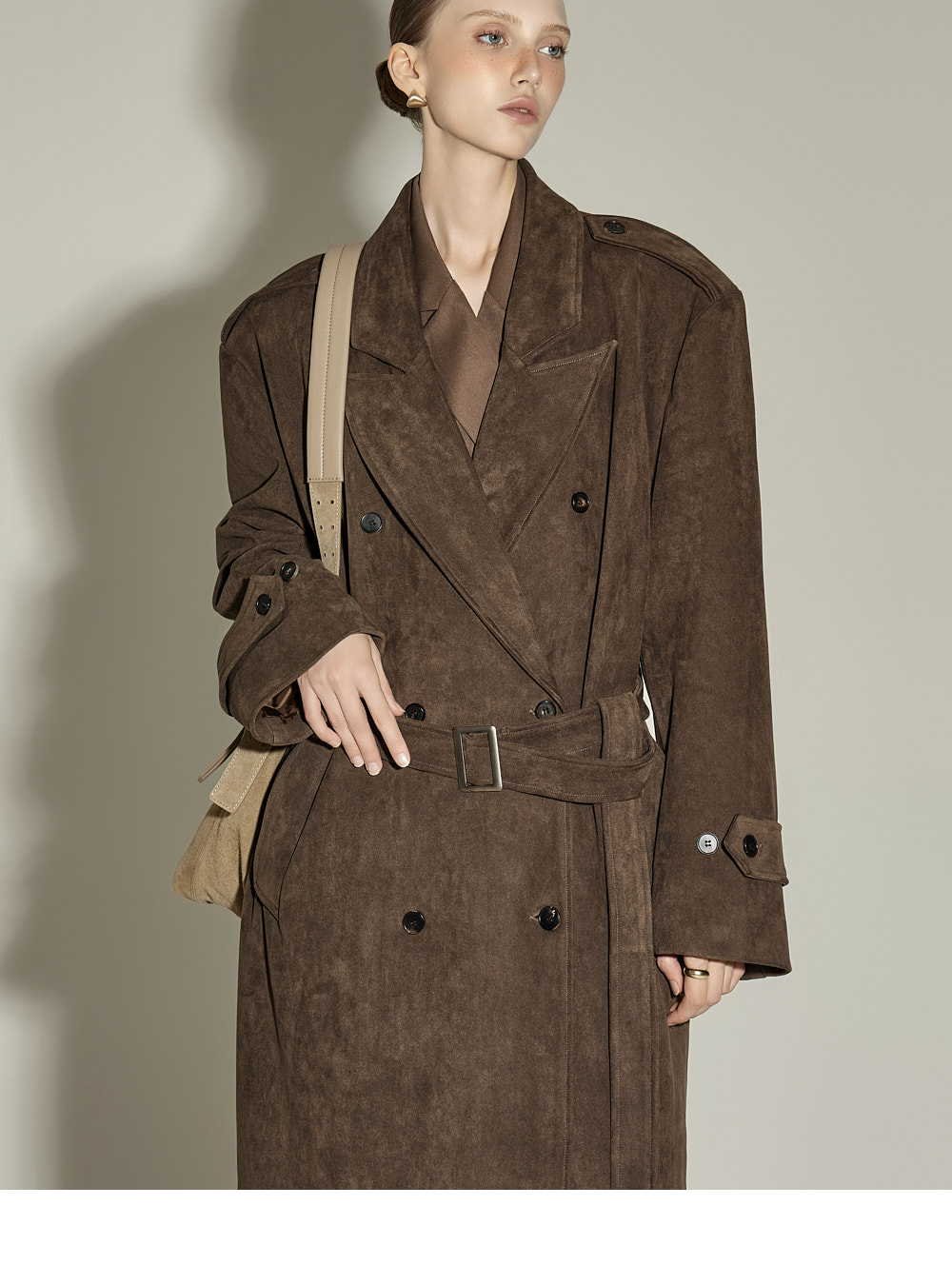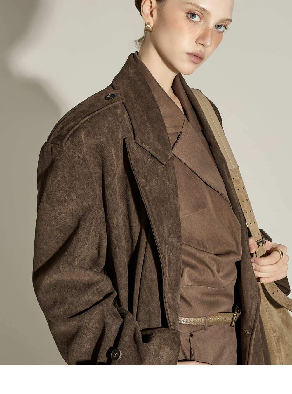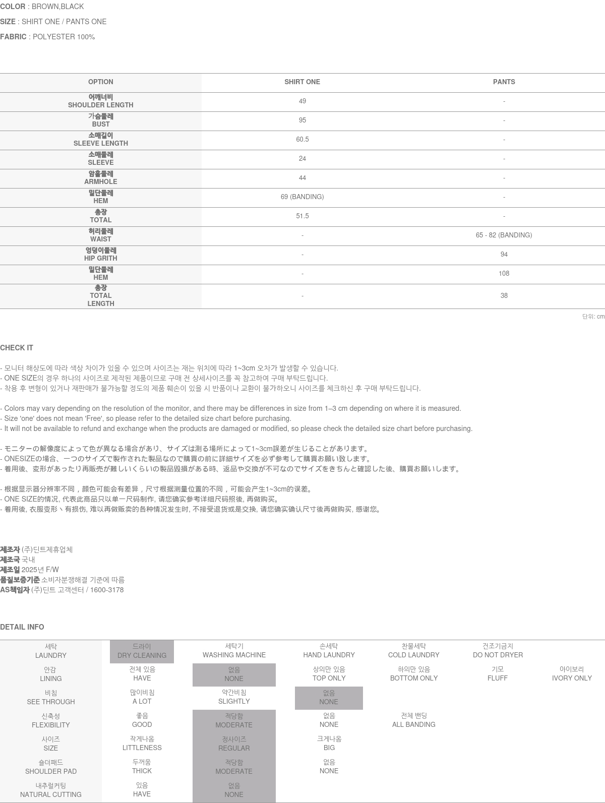 174CM 模特穿着衬衫与短裤均为均码,示范棕色款。