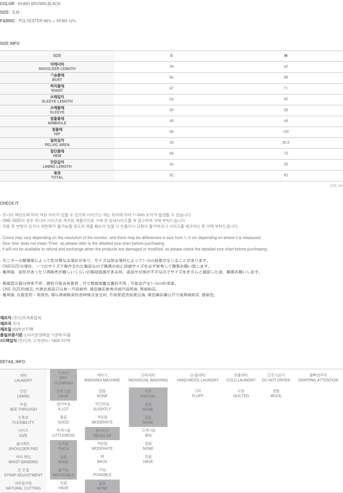 173CM 모델 S 사이즈, KHAKI BROWN 컬러 착용하였습니다.