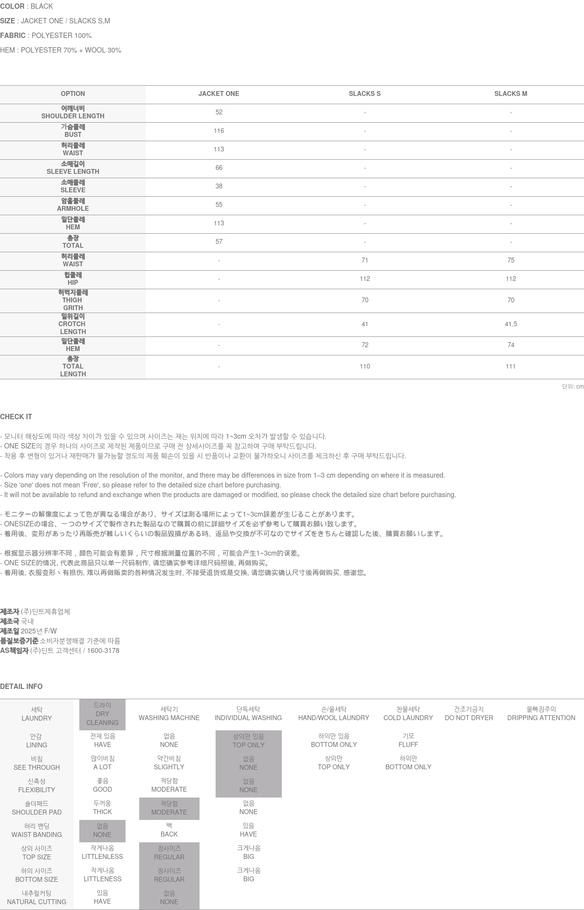 173CM模特身穿外套ONE码、裤子S码,BLACK色。