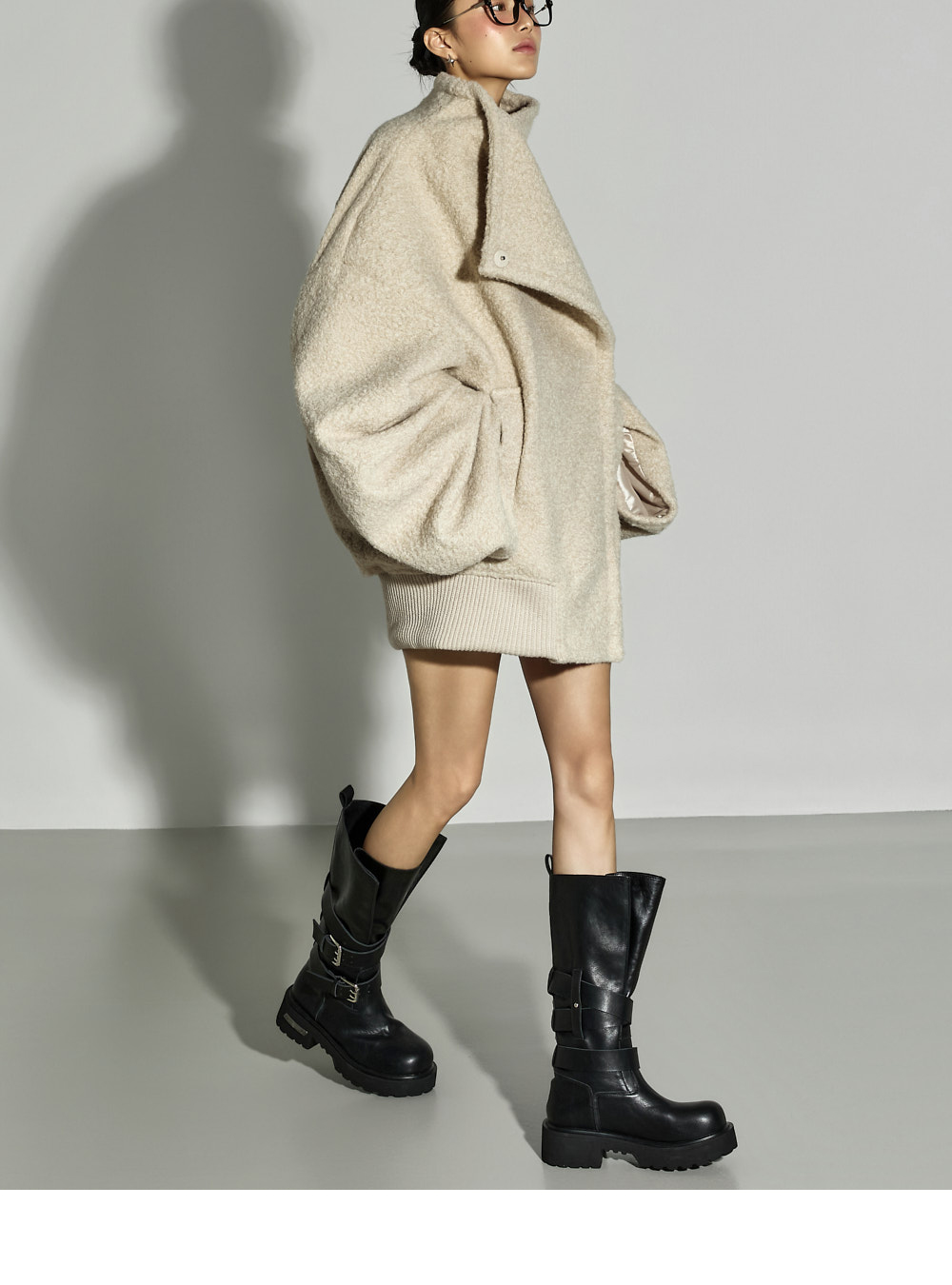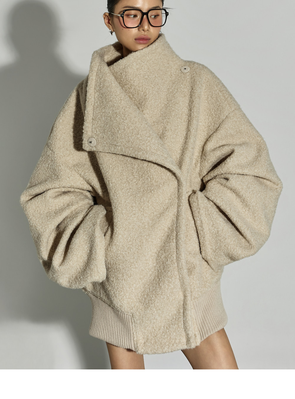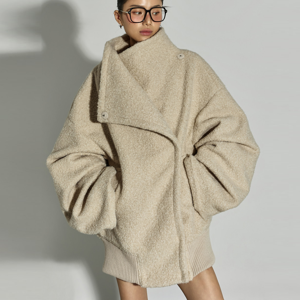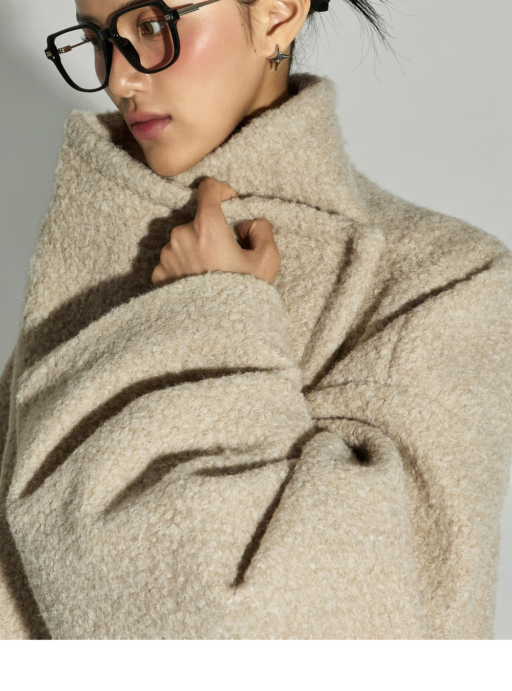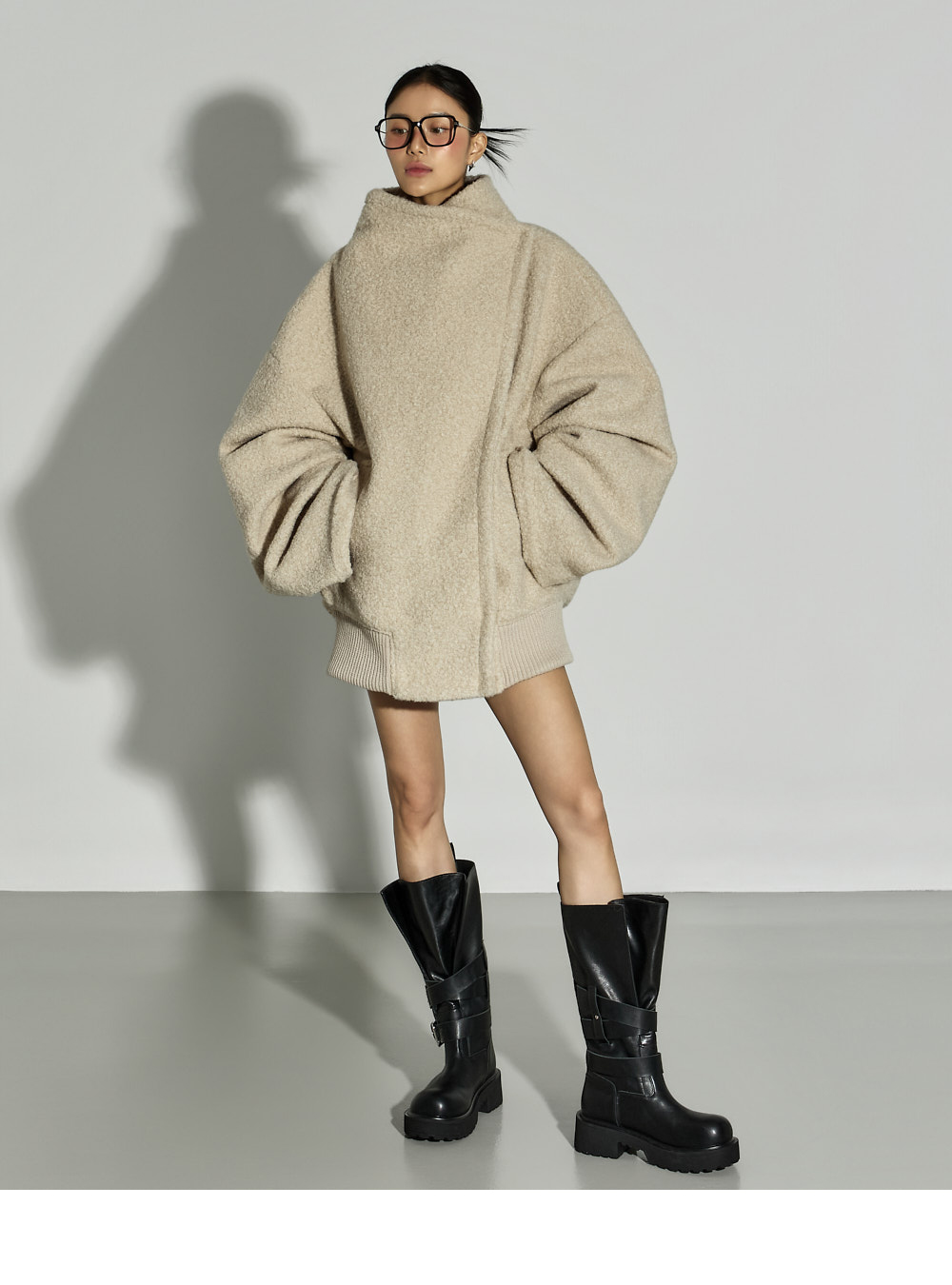 宽松版型搭配袖口褶皱设计,营造出有层次感且时尚的轮廓。