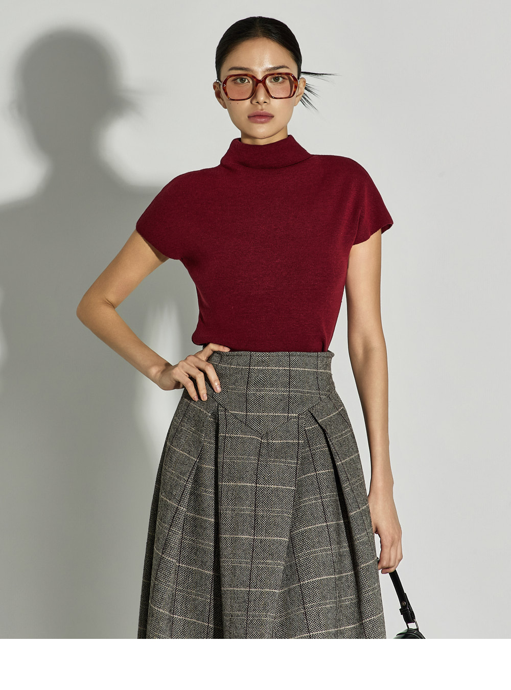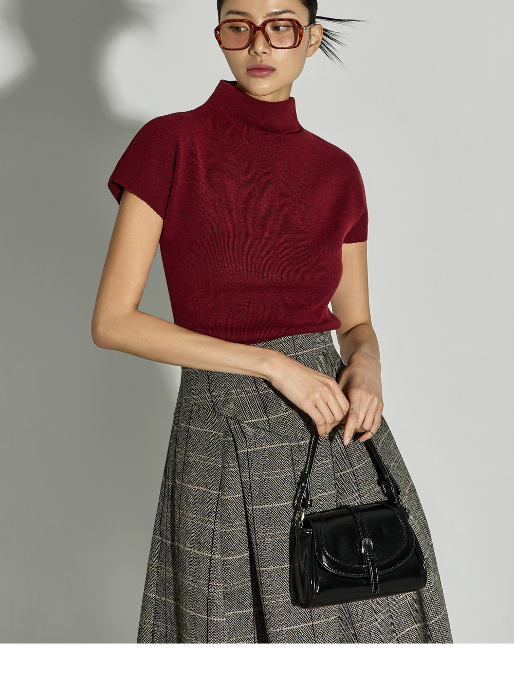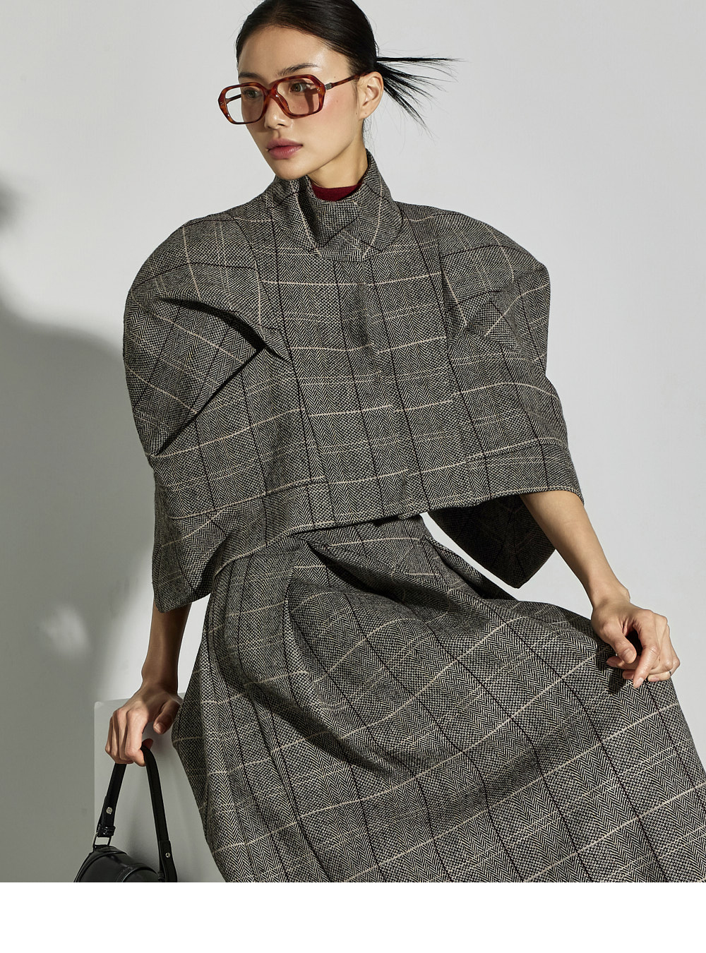 采用羊毛、聚酯纤维和尼龙混纺材质制作,兼具温暖感与挺括质感。