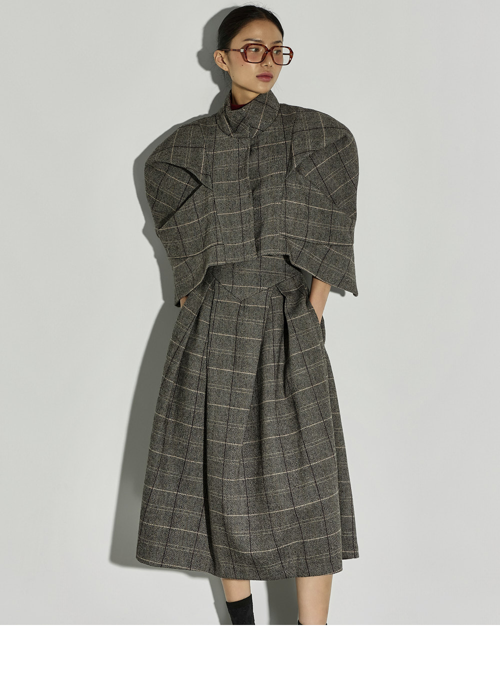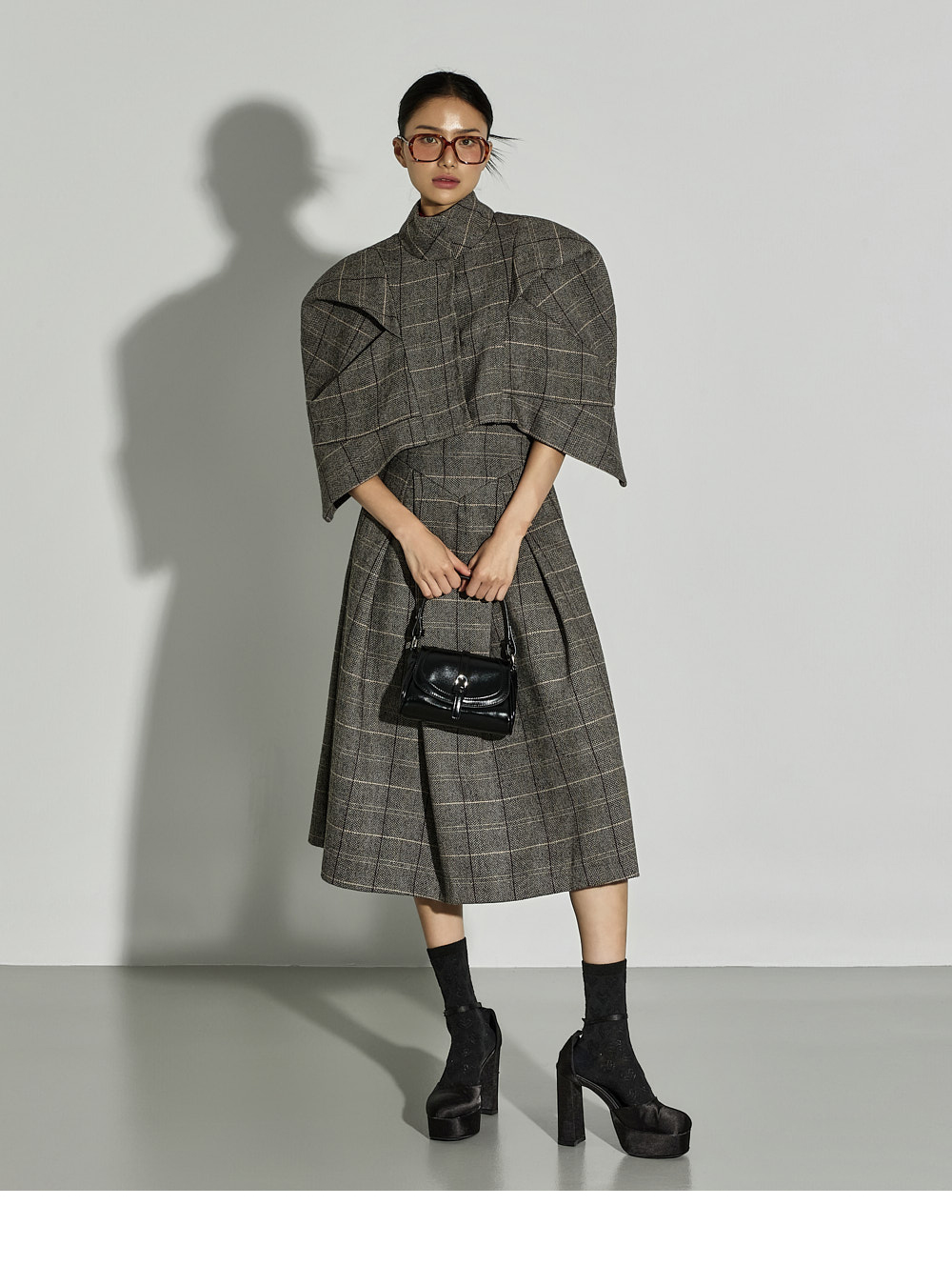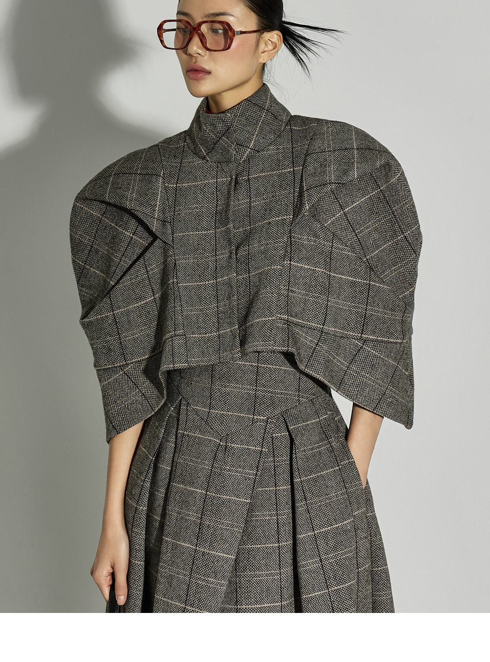 加入褶皱细节,自然打造出蓬松感的泡泡裙型,经典格纹图案成为精致亮点。