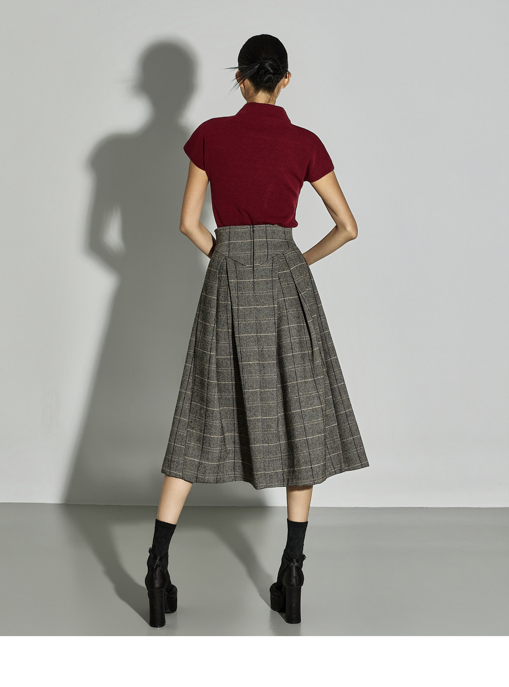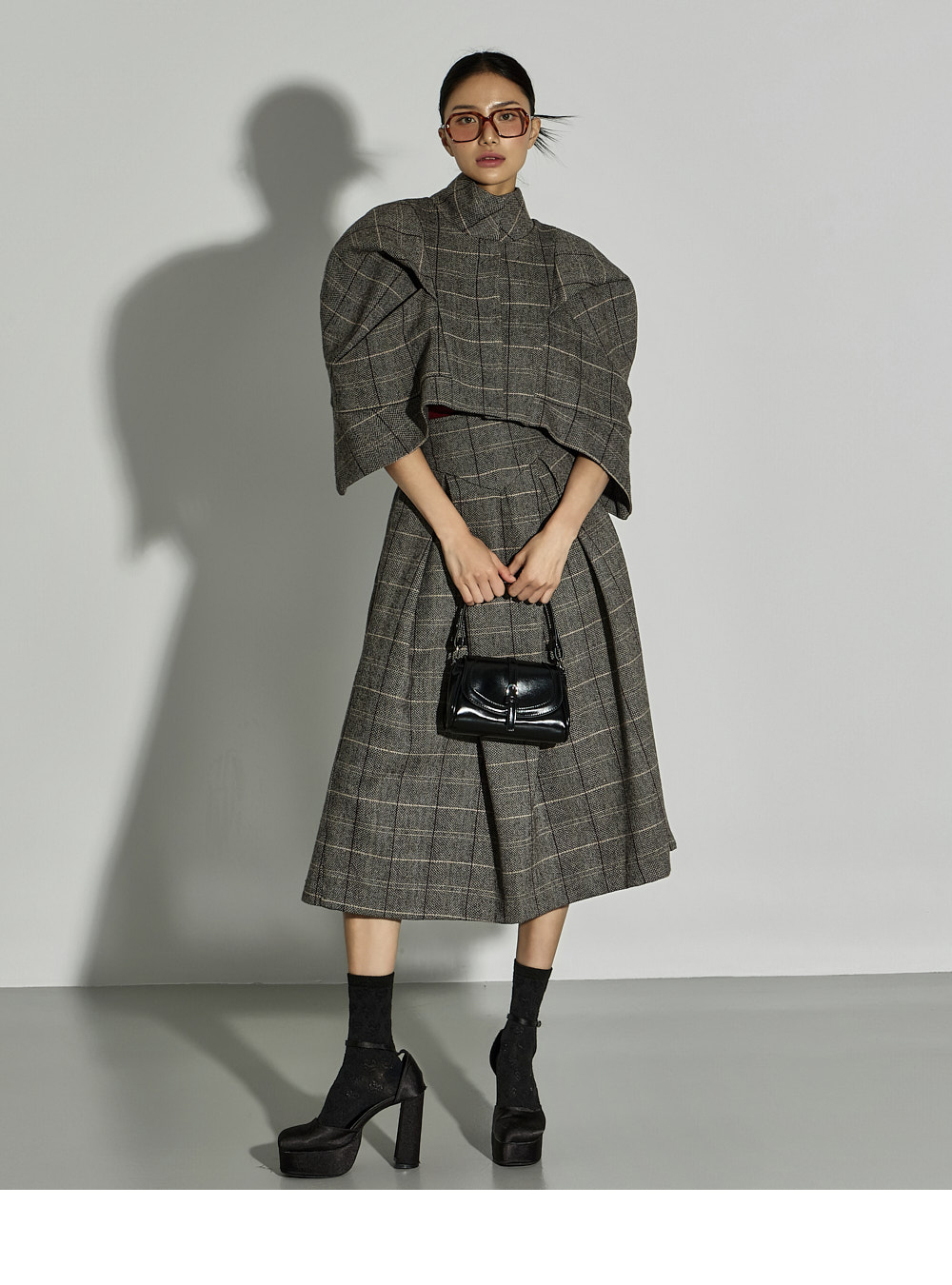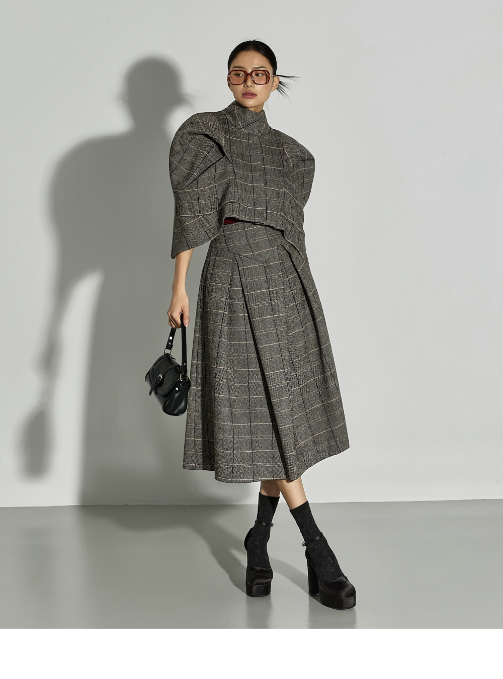 加入褶皱细节,自然打造出蓬松感的泡泡裙型,经典格纹图案成为精致亮点。