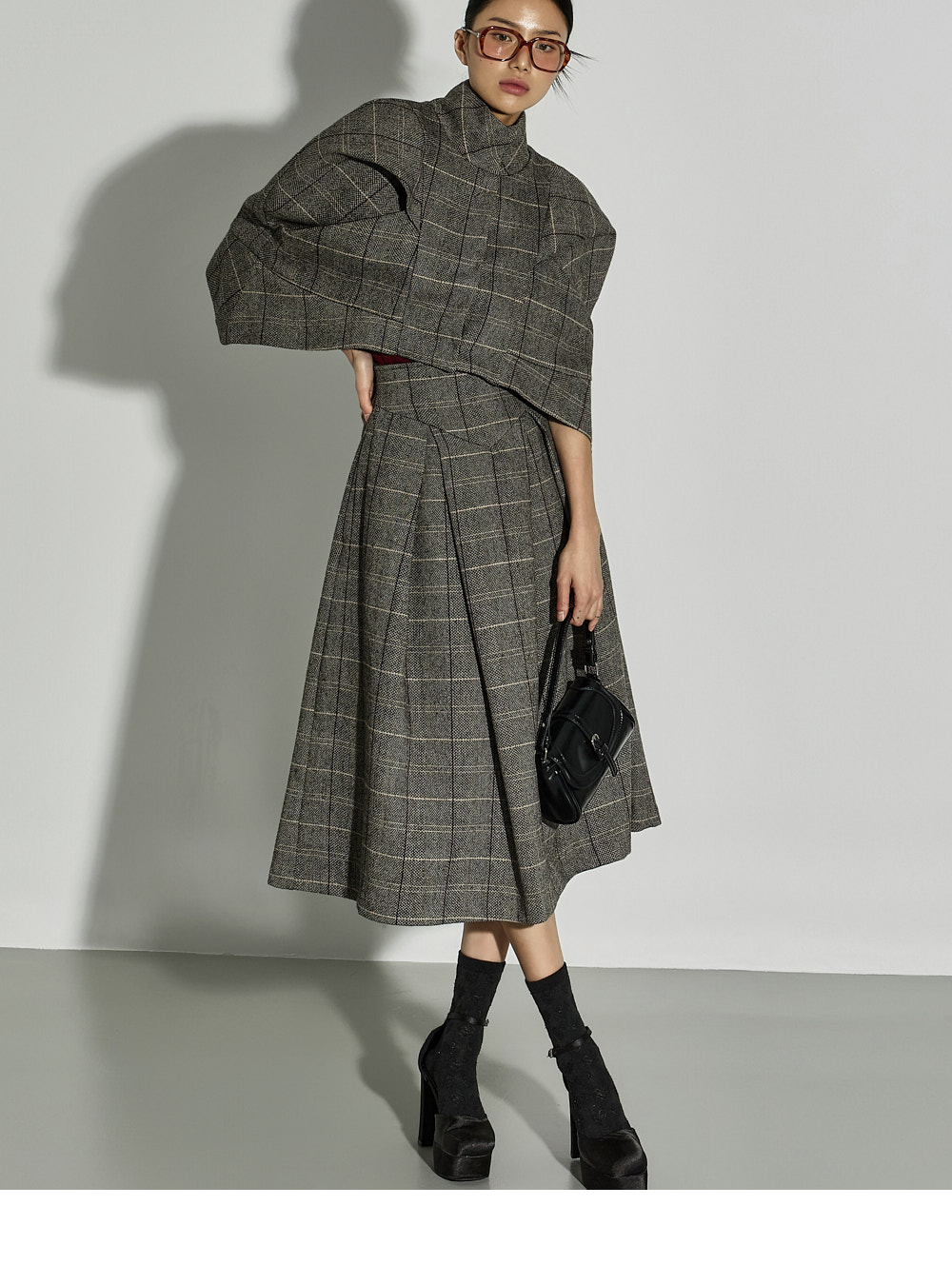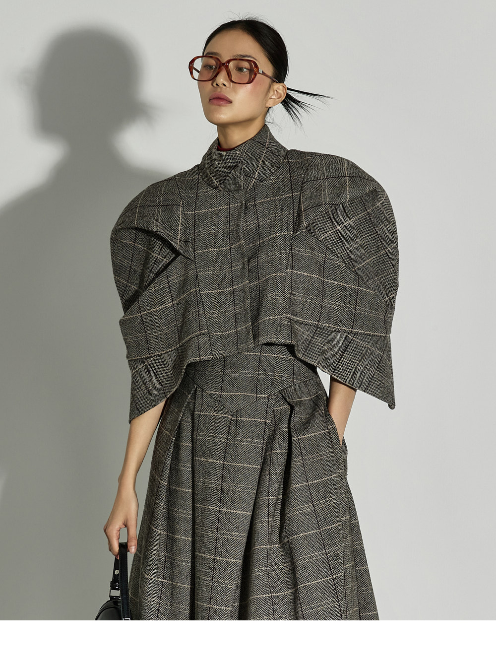 设计兼具精致与独特感,与同款面料的夹克搭配成套穿着,可打造高完成度的造型。