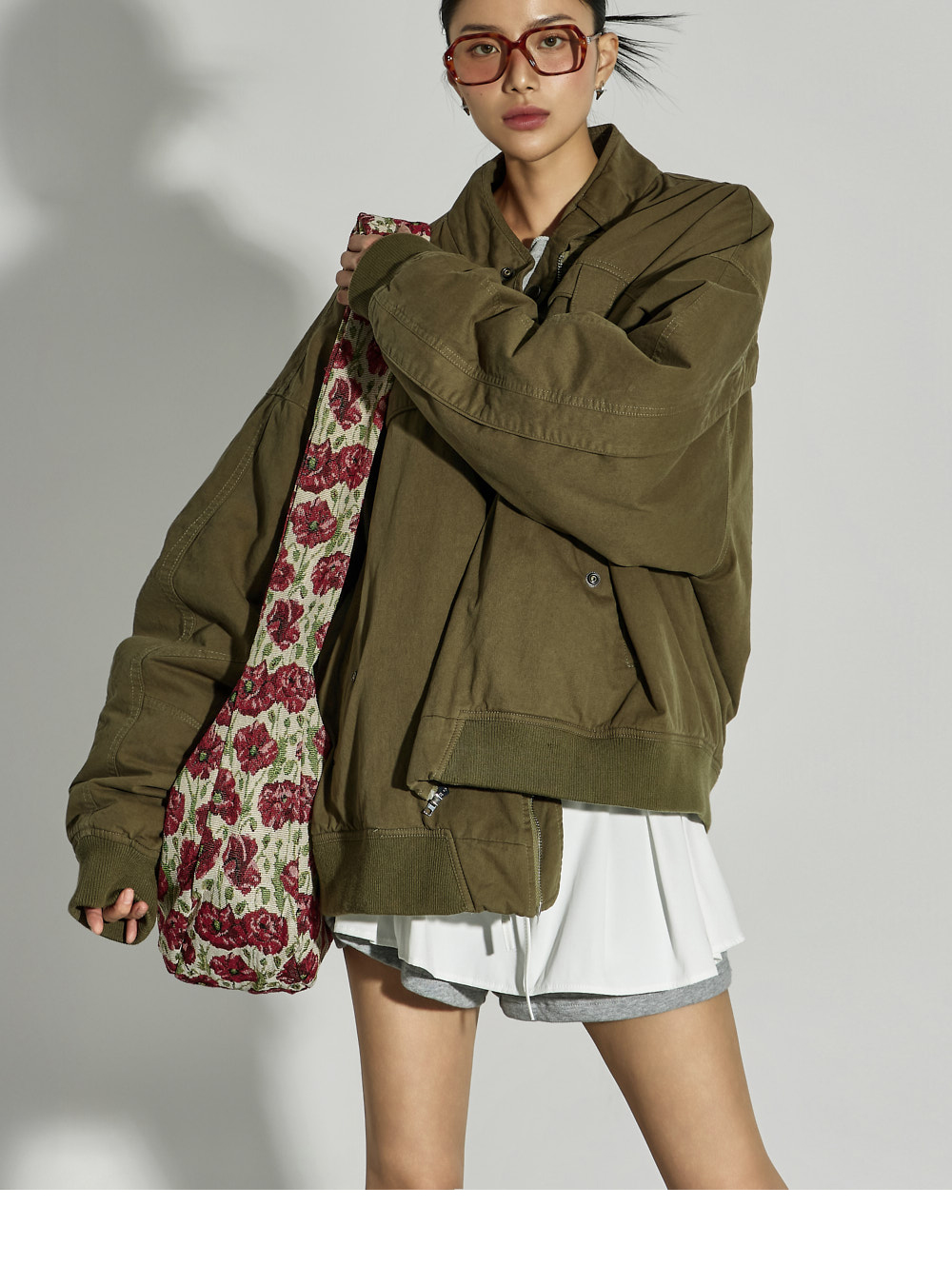 短裤采用腰部松紧设计,穿着方便,叠层设计如同裙装,兼具活动性与造型感。