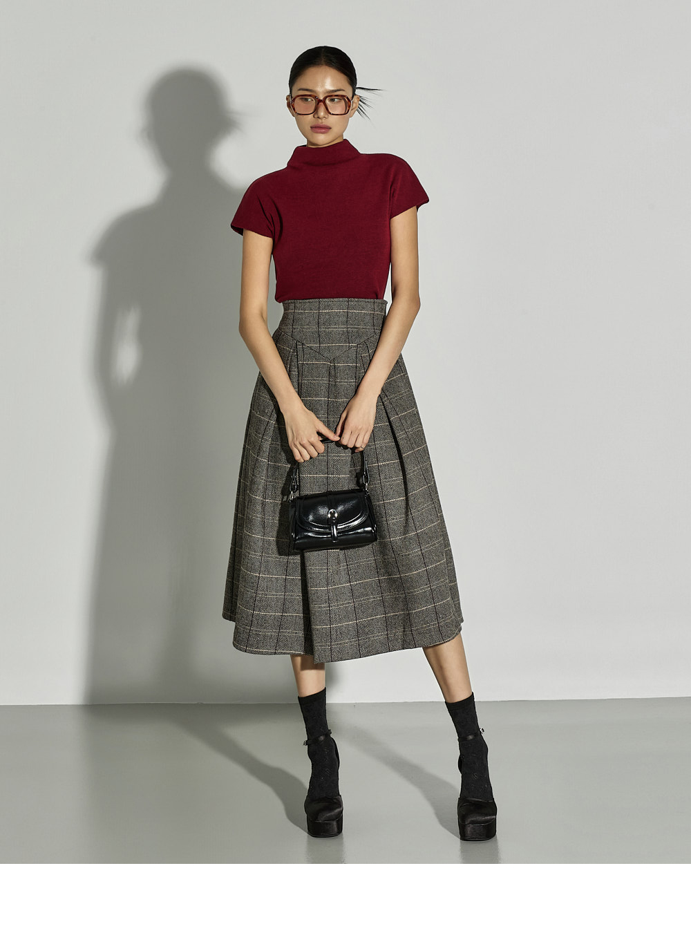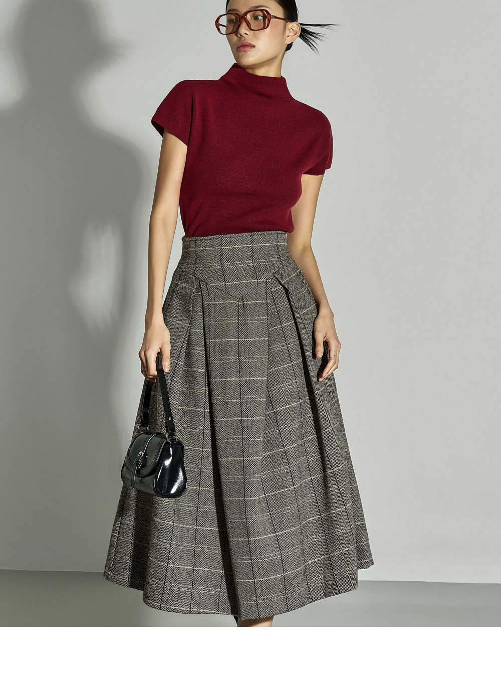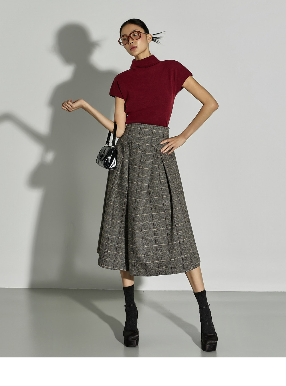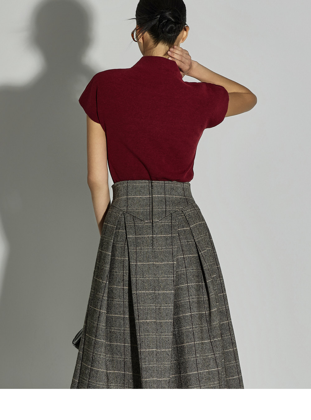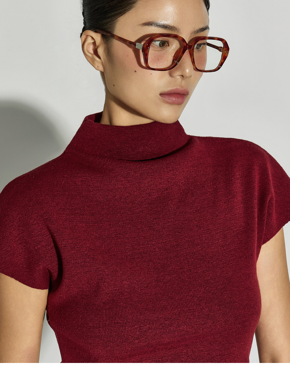 模特身高 174CM,穿 ONE 尺码,酒红色。