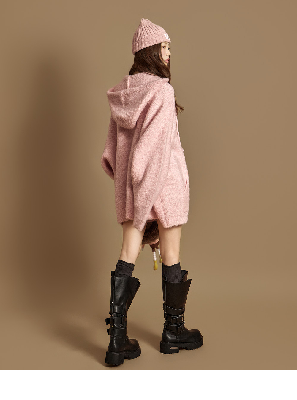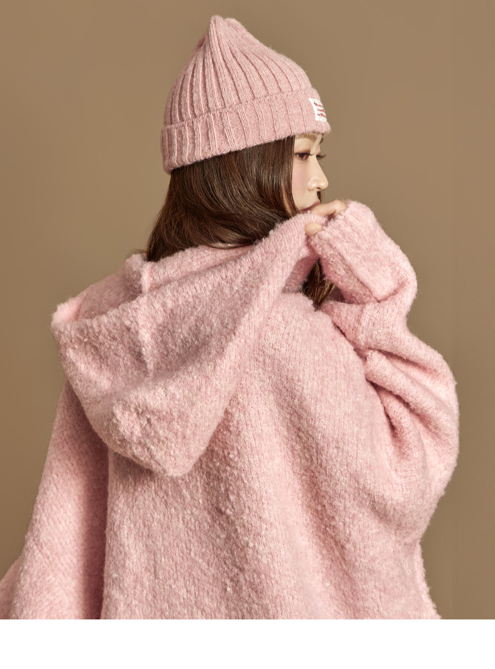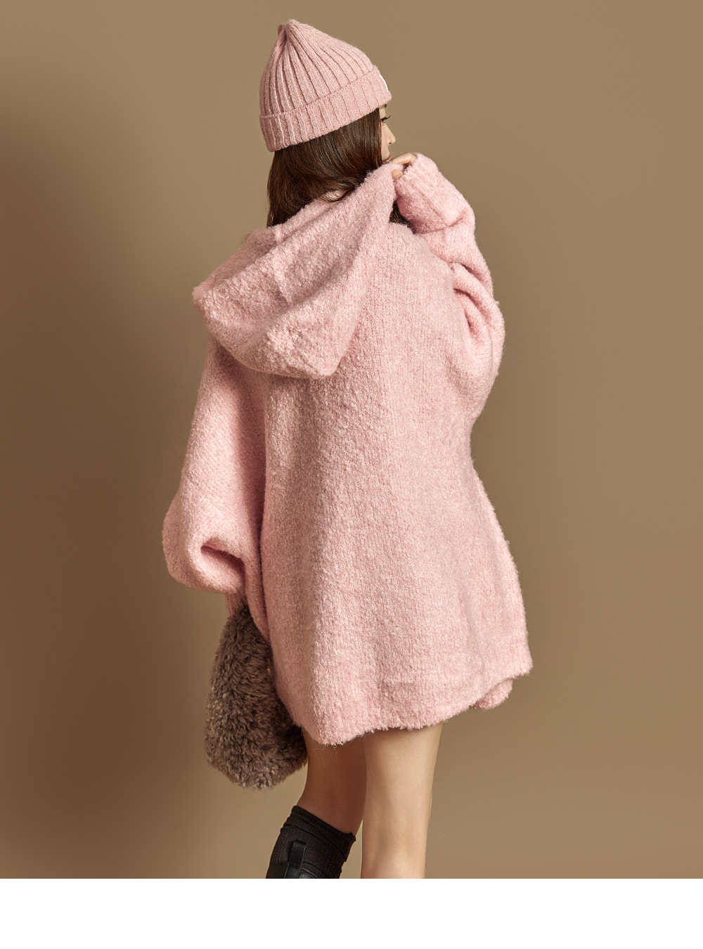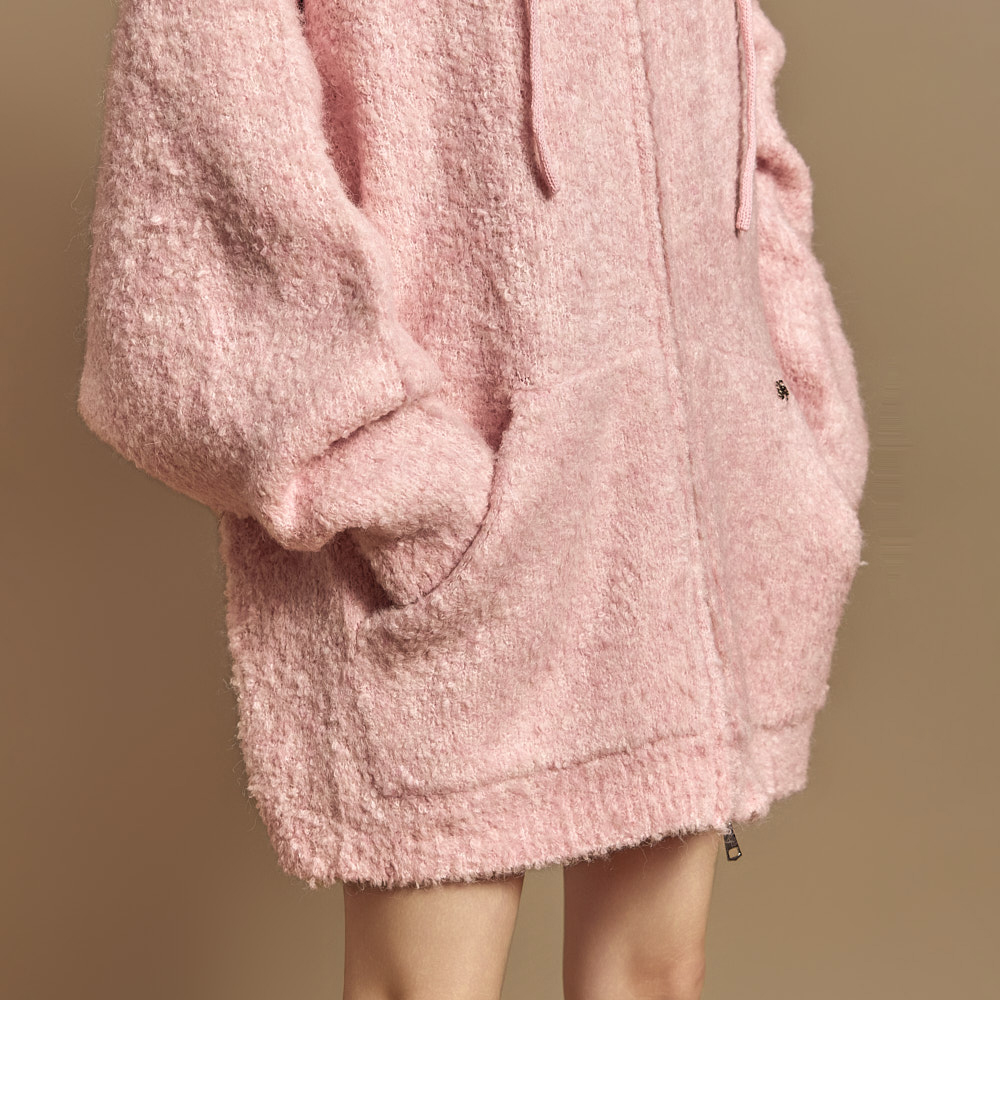这是一款休闲风格的软质粗花呢羊毛连帽拉链外套。 粗花呢特有的柔软触感十分突出,含羊毛成分,穿着舒适温暖。 整体呈宽松oversize版型,不挑身形,任何人都能轻松驾驭,加长衣长设计方便与内搭叠穿。 前襟点缀低调光泽感装饰牌,在简约设计中增添时尚亮点,两侧口袋与顺滑拉链设计兼具实用性。 可搭配牛仔裤、宽腿裤等日常穿着,也可轻松搭在连衣裙外,展现多样造型。 模特身高171CM,穿着ONE尺寸,颜色为PINK。