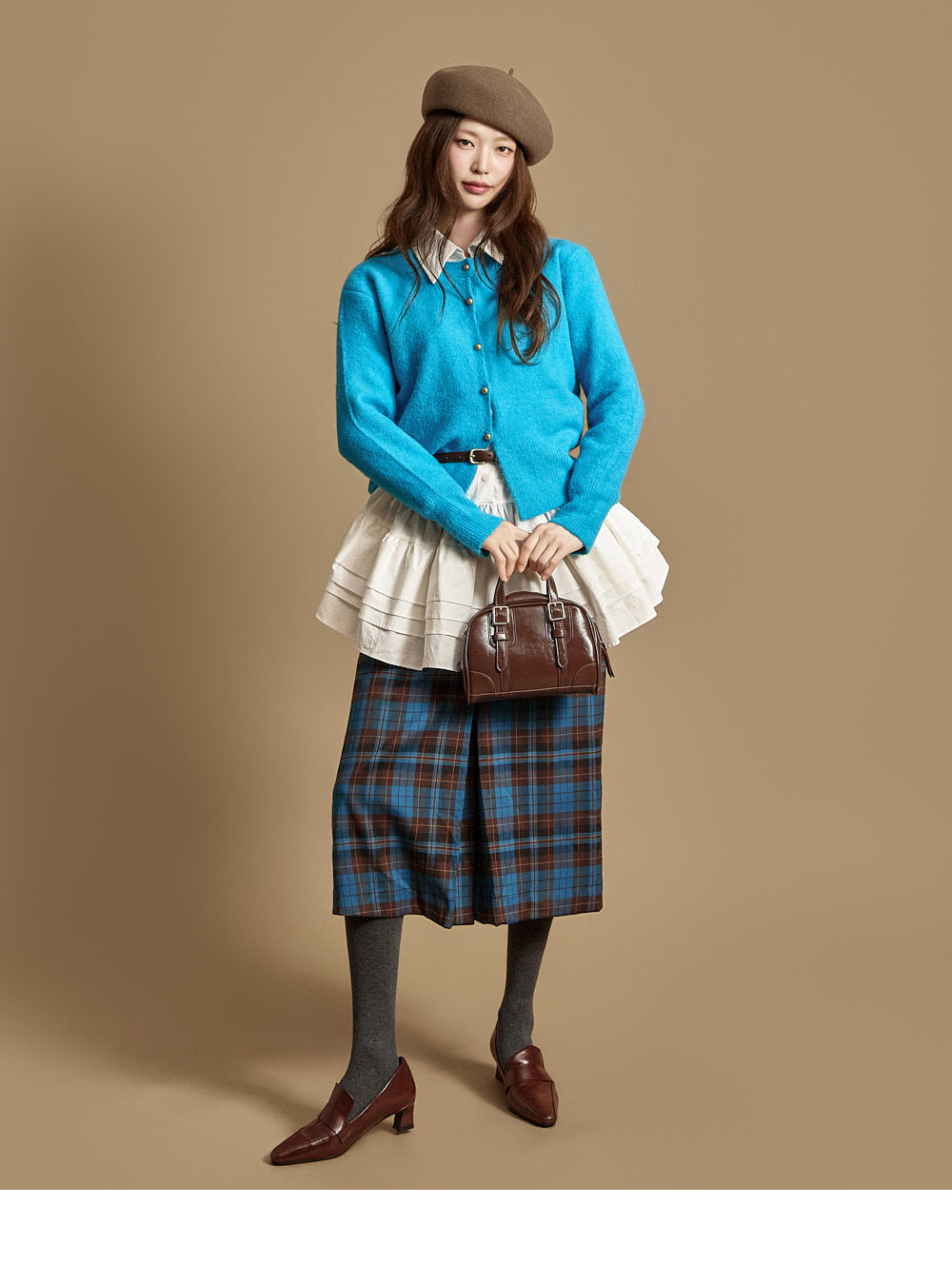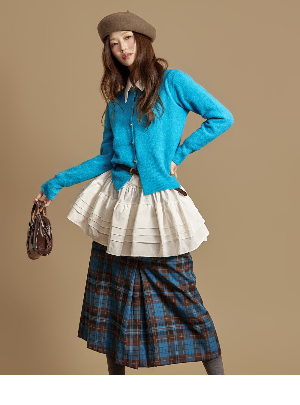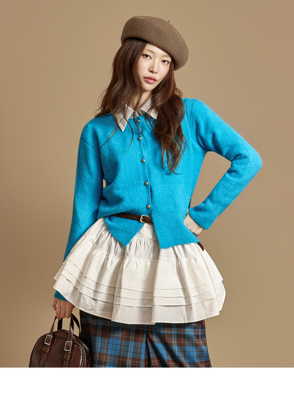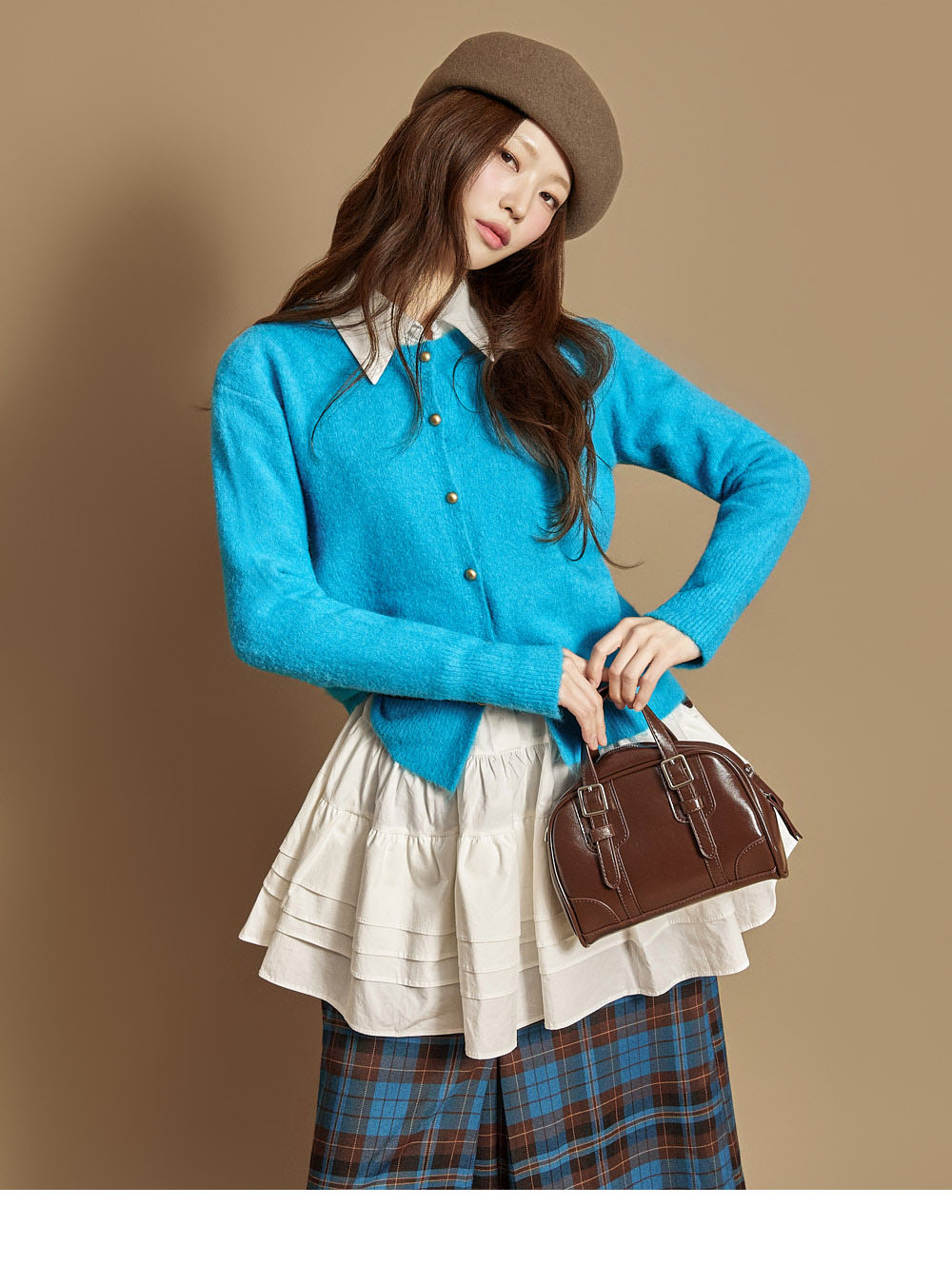 这是一款休闲日常风格的软质纽扣开衫。