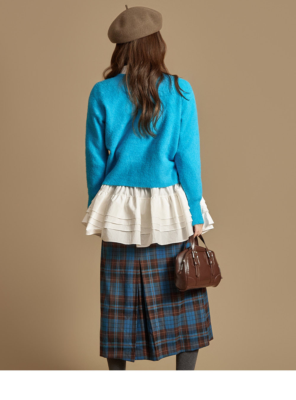 模特身高171CM,穿着ONE尺寸,颜色为AQUA BLUE。