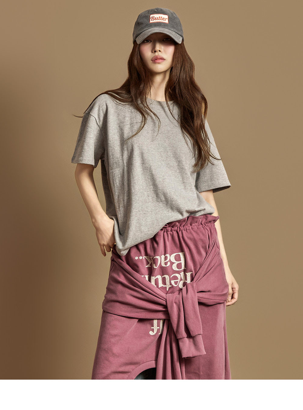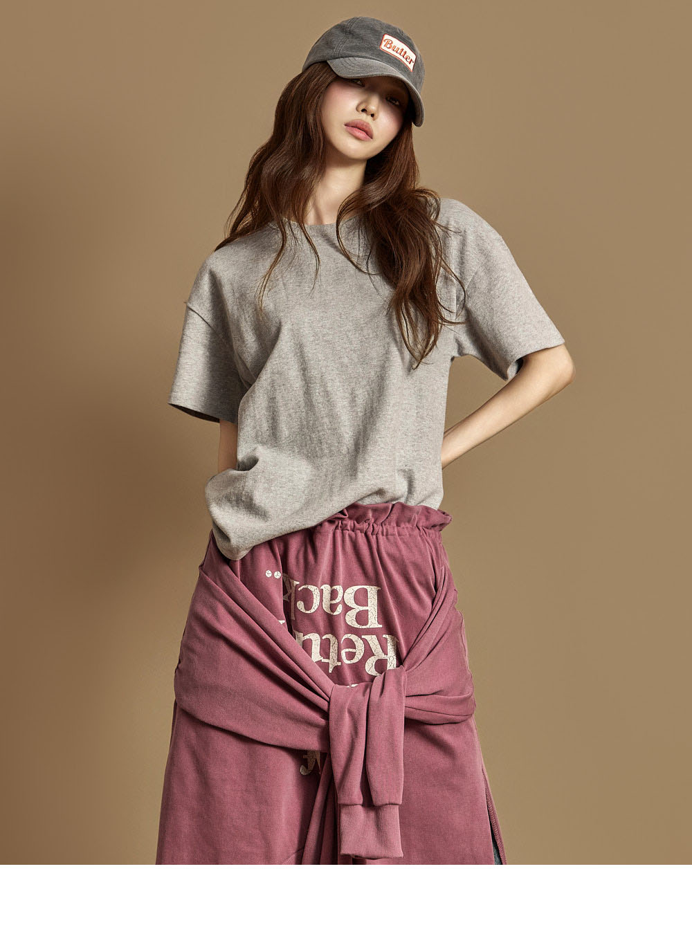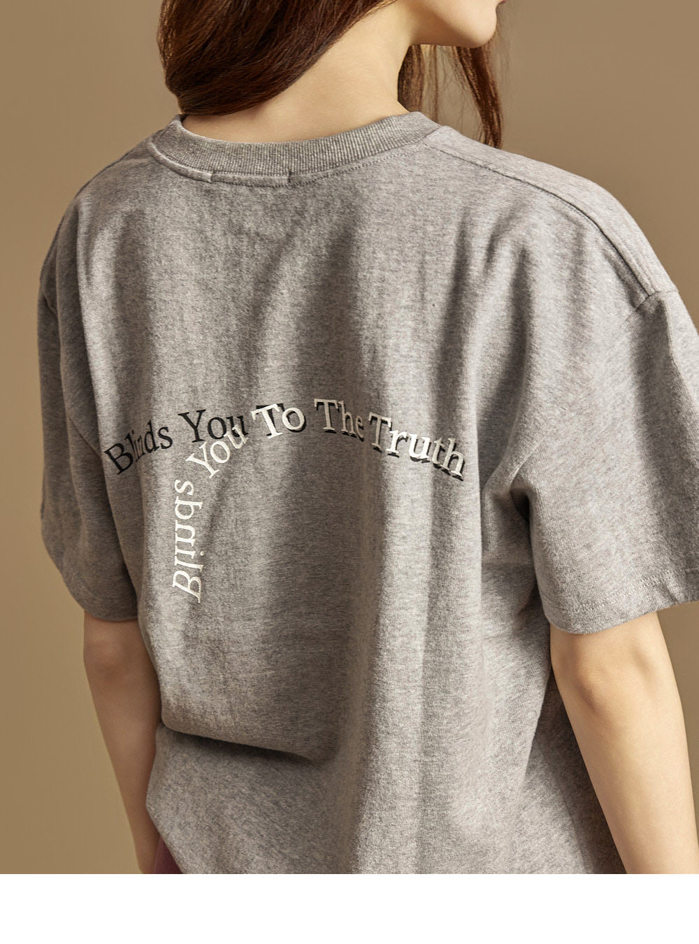 休闲风格的棉质上衣。采用纯棉材质制作,触感柔软,穿着时既挺括又舒适,对肌肤无刺激,可安心穿着。为单一尺码设计,任何体型都能轻松驾驭,呈现自然宽松的轮廓。正面为简约的纯色设计,带来干净利落的印象,背面的字母印花细节为造型增添了时尚感与视觉亮点。基础版型不仅可单独穿着,也能轻松搭配多种外套,实穿性极高。无多余装饰的设计,无论是日常穿搭、校园造型,还是作为内搭单品,都能轻松适配。模特身高171CM,穿着ONE尺码,颜色为灰色。