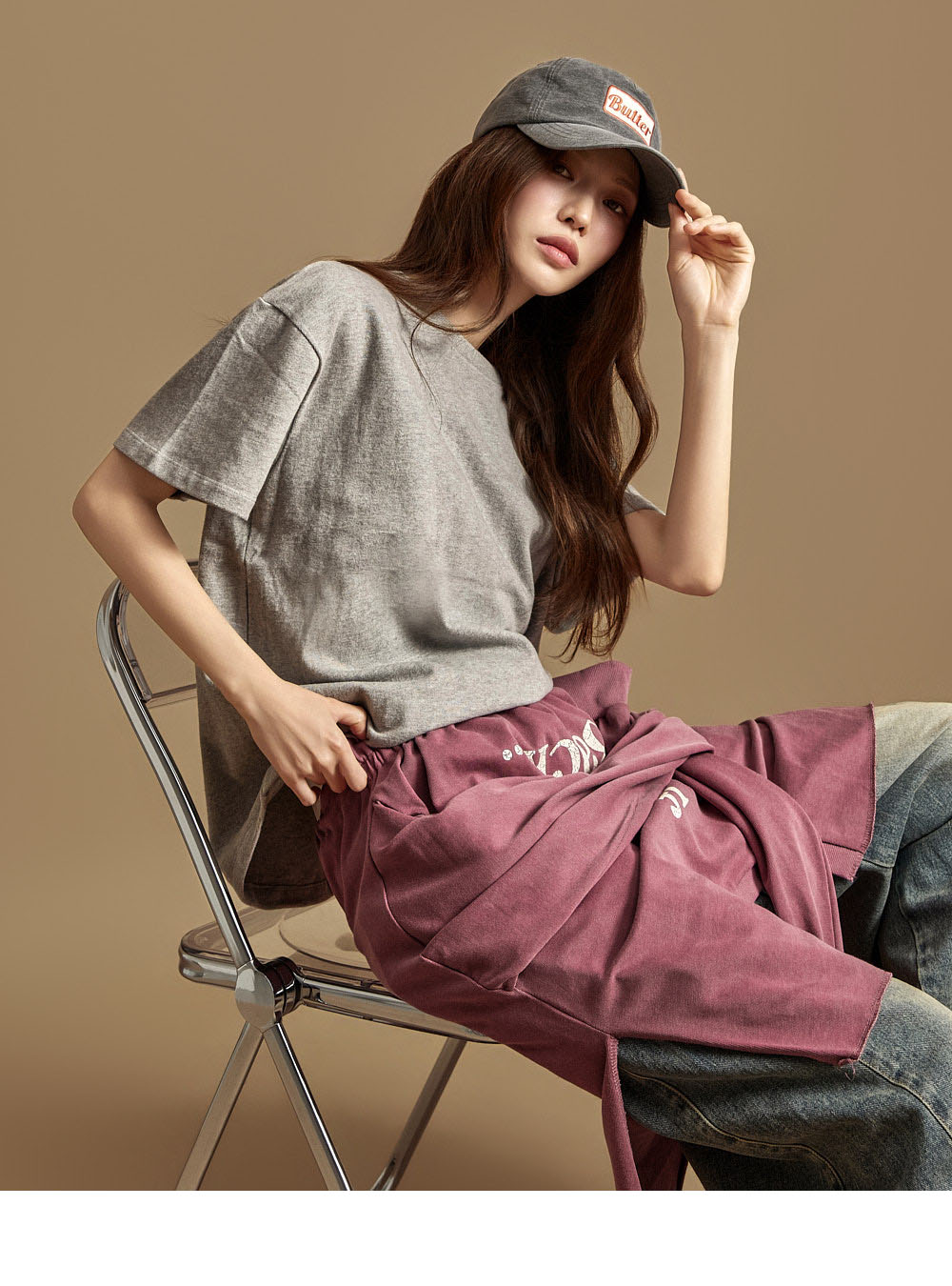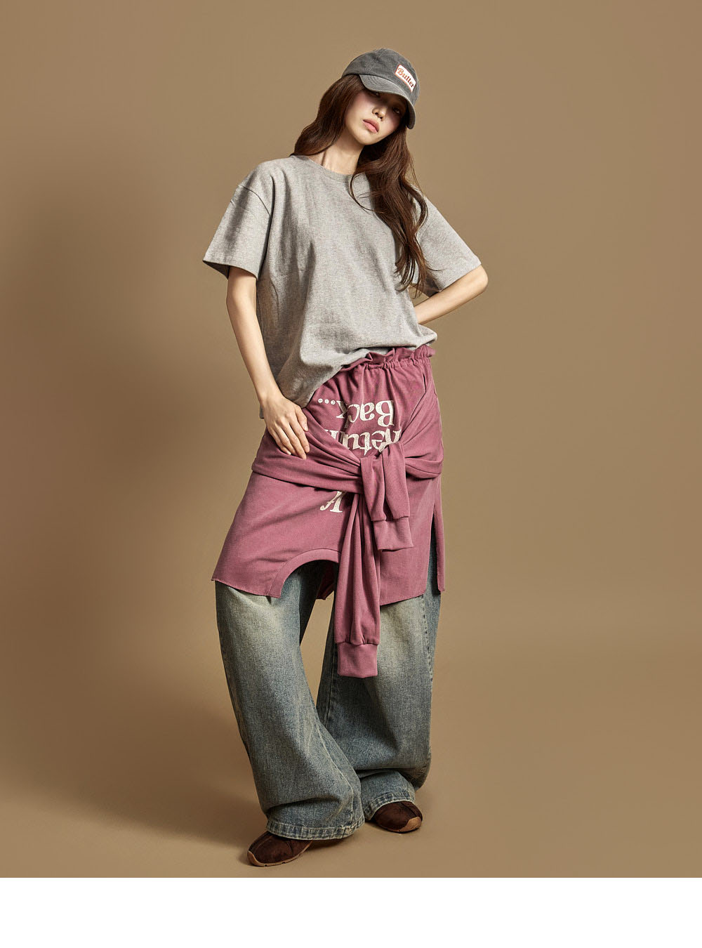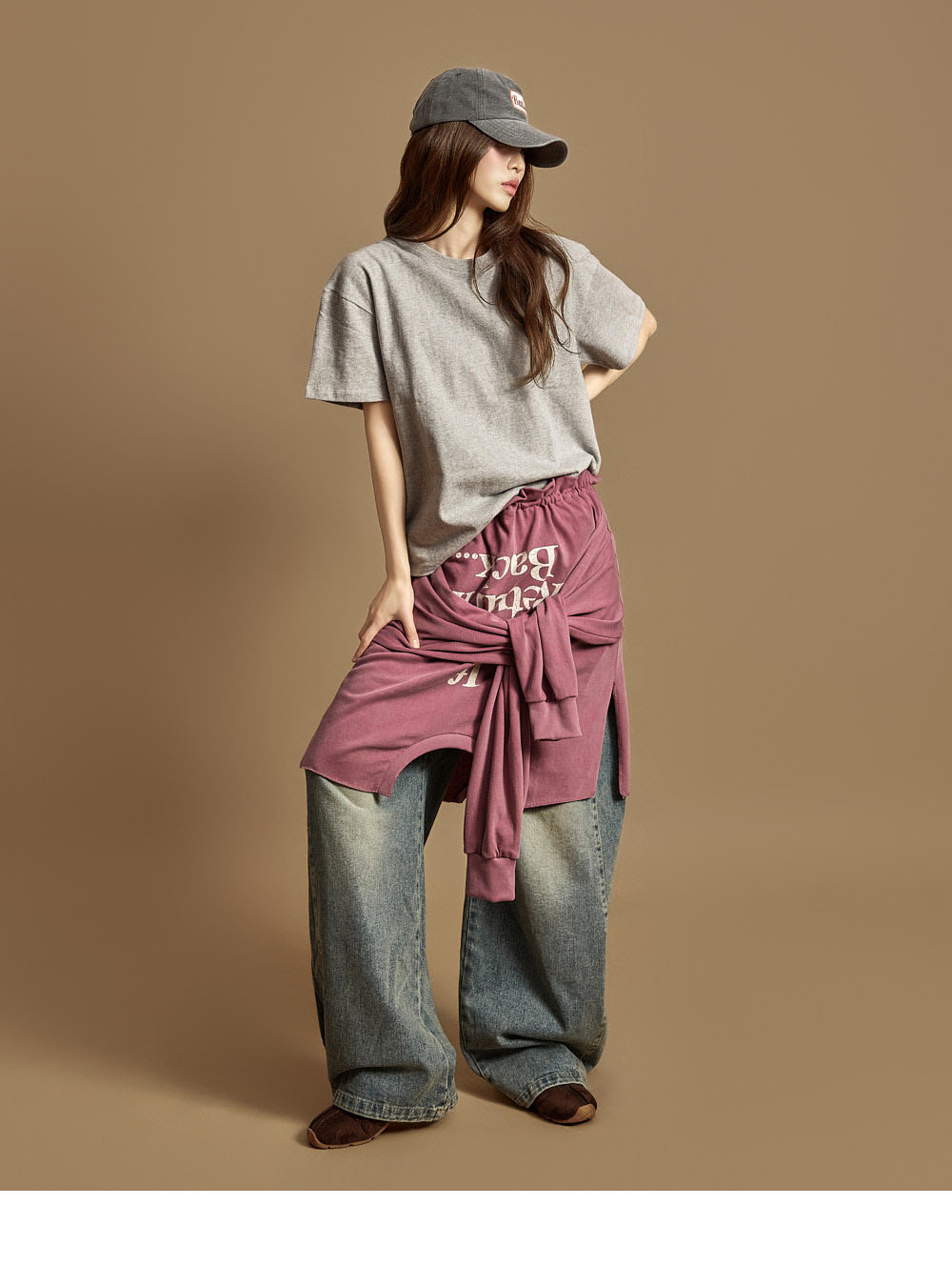 休闲风格的棉质上衣。采用纯棉材质制作,触感柔软,穿着时既挺括又舒适,对肌肤无刺激,可安心穿着。为单一尺码设计,任何体型都能轻松驾驭,呈现自然宽松的轮廓。正面为简约的纯色设计,带来干净利落的印象,背面的字母印花细节为造型增添了时尚感与视觉亮点。基础版型不仅可单独穿着,也能轻松搭配多种外套,实穿性极高。无多余装饰的设计,无论是日常穿搭、校园造型,还是作为内搭单品,都能轻松适配。模特身高171CM,穿着ONE尺码,颜色为灰色。