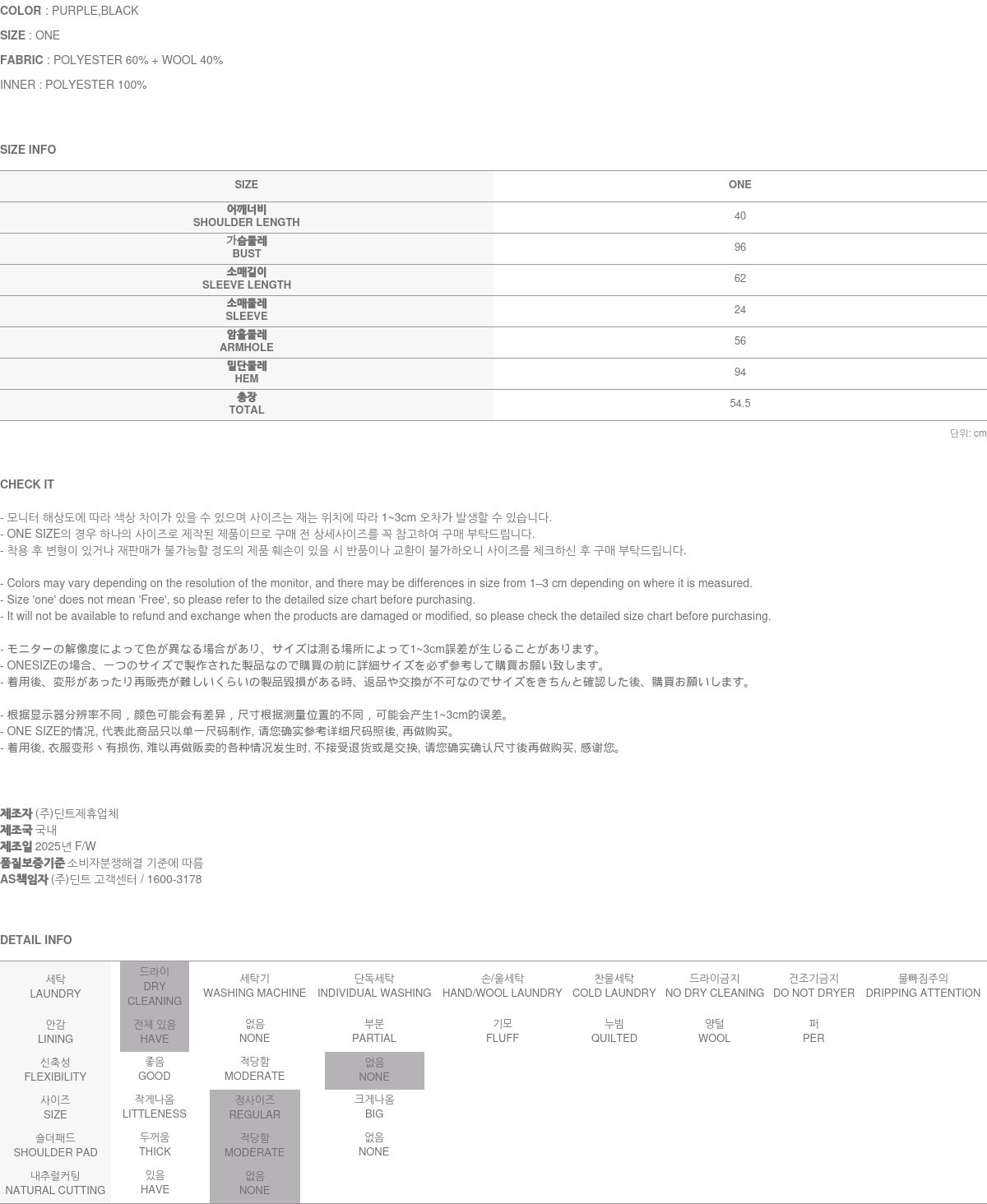 關於售後服務 瑕疵商品, 或是布料瑕疵、不正確標註的尺碼或質料, 引起的問題, 將會爲您進行修復/車縫 → 交換 → 退貨處理 (換貨與退貨的實際舉例, 請參考 ”換貨與退貨“ 與 “無法進行換貨與退貨的情況”之說明.) A/S負責人與連絡電話:DINT.Inc (gbcs_dint@naver.com)