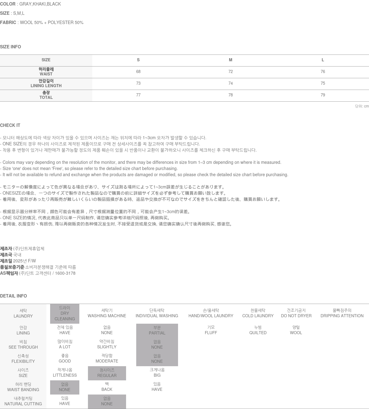 關於售後服務 瑕疵商品, 或是布料瑕疵、不正確標註的尺碼或質料, 引起的問題, 將會爲您進行修復/車縫 → 交換 → 退貨處理 (換貨與退貨的實際舉例, 請參考 ”換貨與退貨“ 與 “無法進行換貨與退貨的情況”之說明.) A/S負責人與連絡電話:DINT.Inc (gbcs_dint@naver.com)