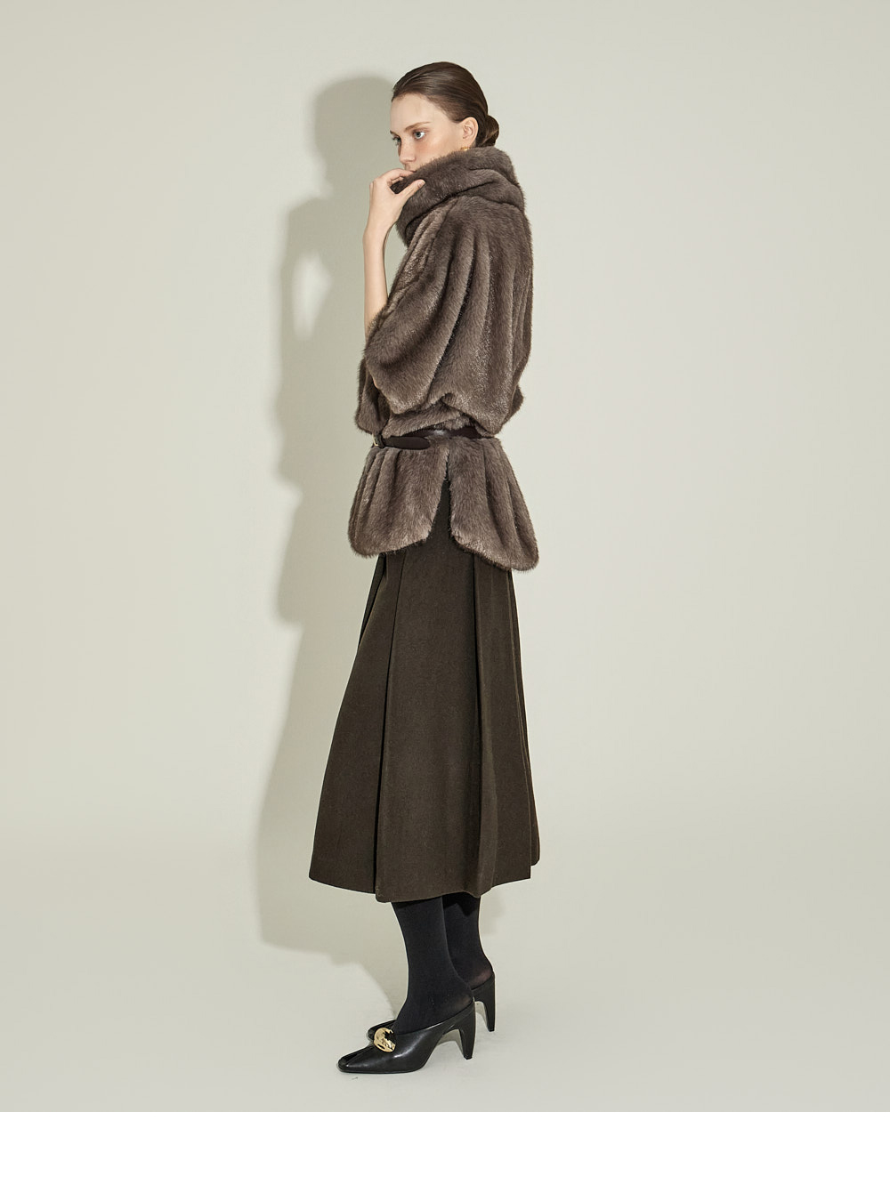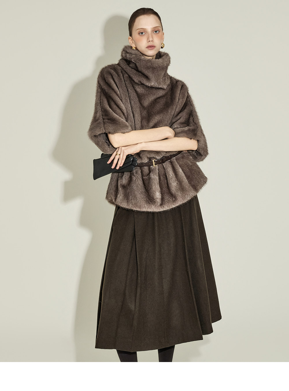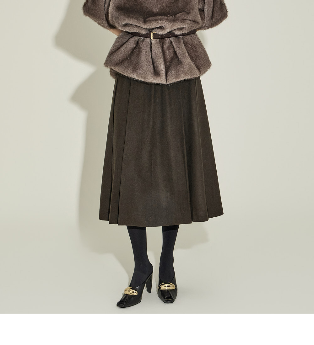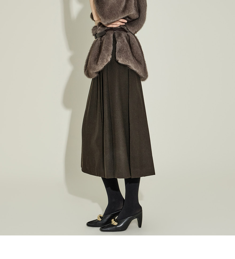 这是一款现代感十足的中长款百褶裙。 采用羊毛50%、聚酯50%混纺材质制成,既温暖又坚挺。 冬季也能舒适穿着,适中的厚度营造稳定的轮廓。 自然散开的百褶细节增添经典气息,及膝的中长款长度呈现干练又精致的轮廓。 收腰设计简洁利落,便于搭配各类上衣,搭配针织衫、衬衫或外套等,可呈现从正式到日常的多种风格。 174CM 模特穿着 S 尺码,颜色为 KHAKI。